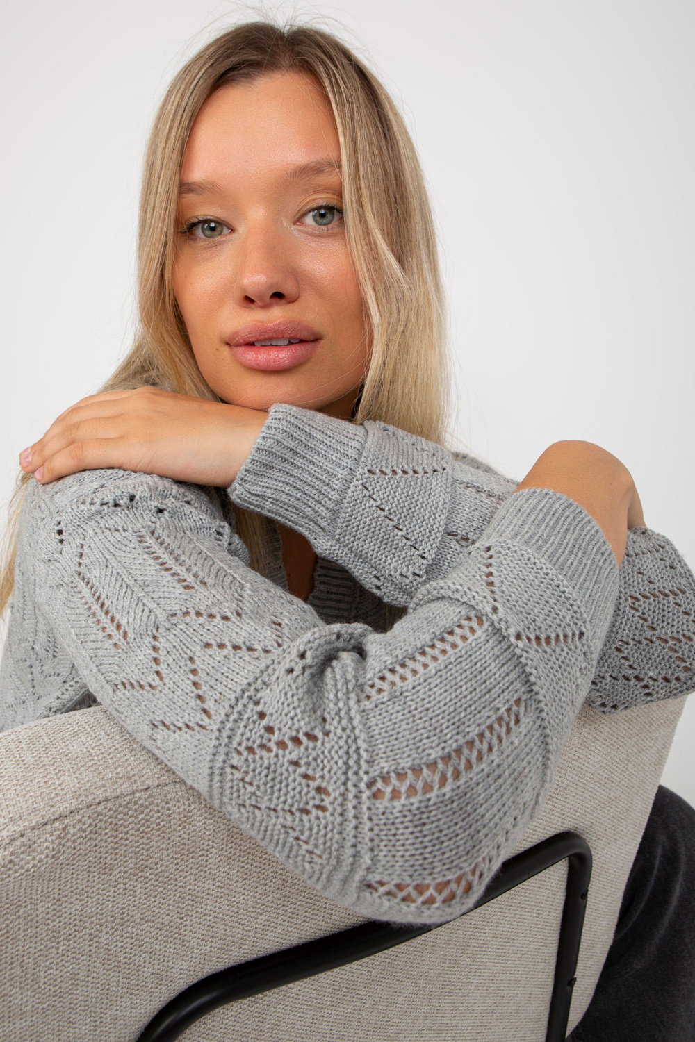 Pilkos spalvos vasarinis megztinis su dekoratyvinėmis sagomis RUE PARIS .