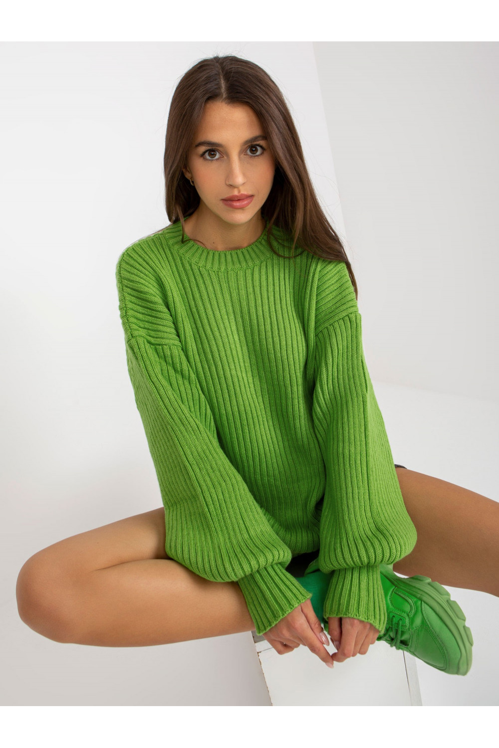 Šviesiai žalios spalvos megztas oversize megztinis RUE PARIS .