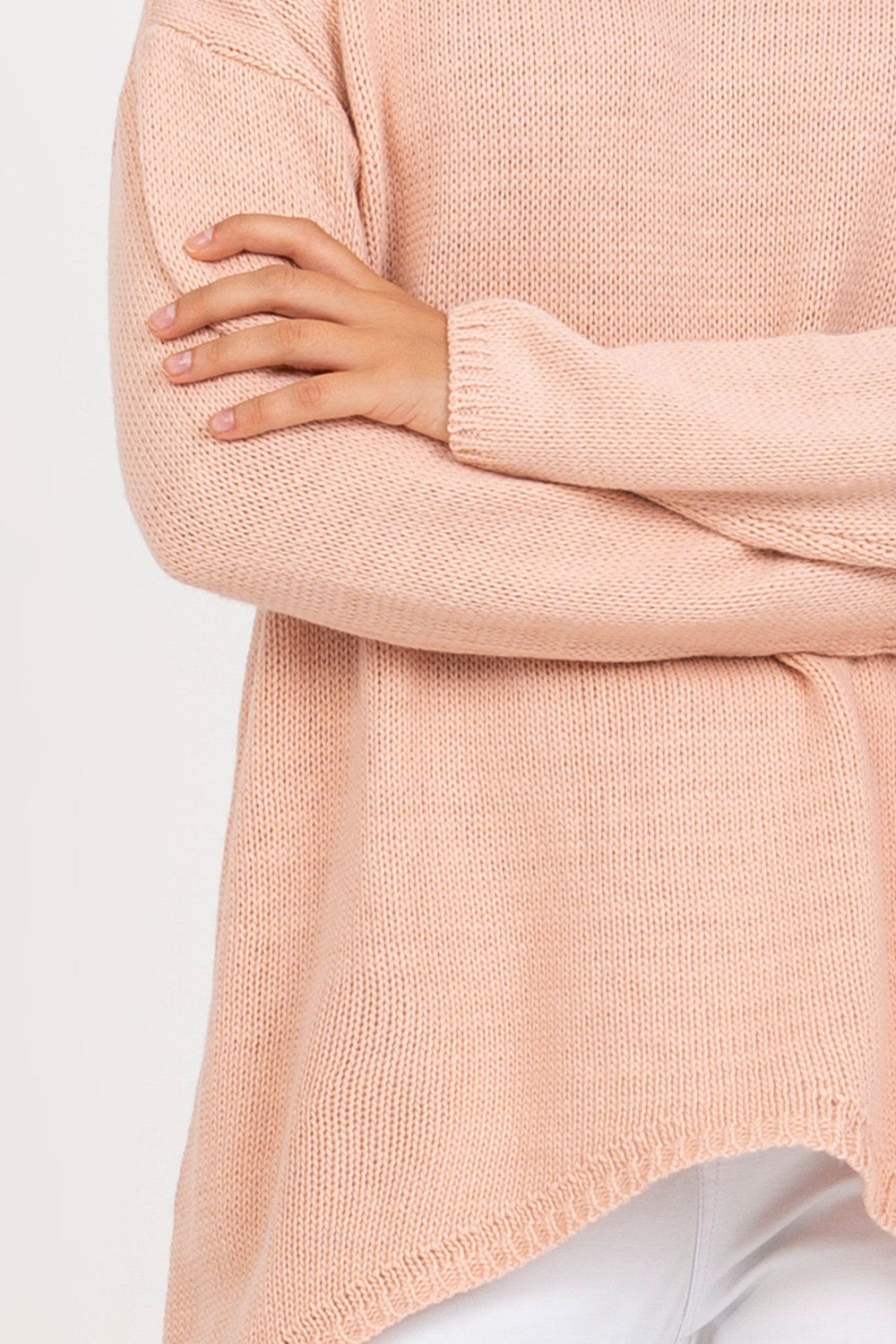 Purvinas rožinis oversize megztinis su asimetrišku kirpimu OCH BELLA .