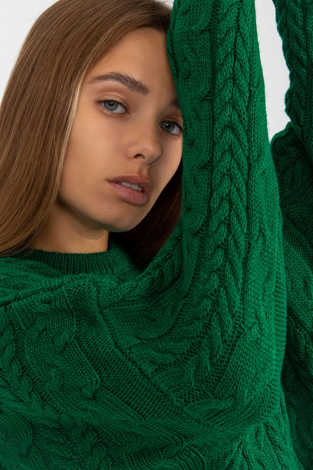 Žalias ilgas megztinis su pynėmis ir apvalia iškirpte RUE PARIS
