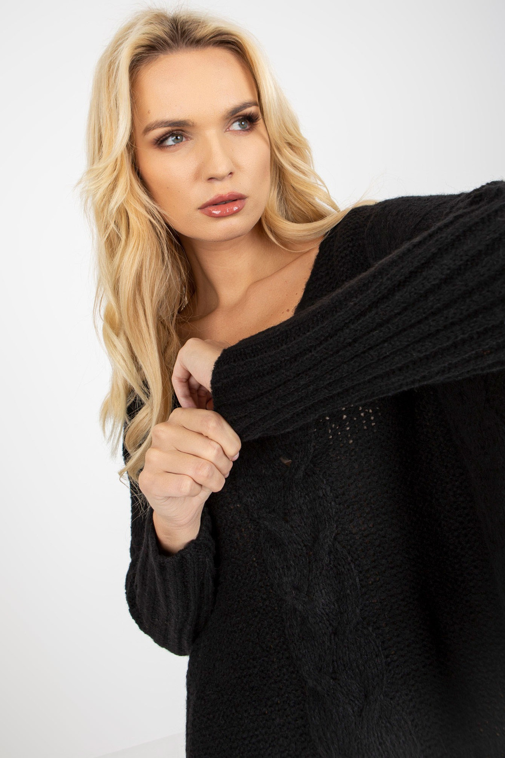 Schwarzer megztinis su übergroßen Zöpfen OCH BELLA.