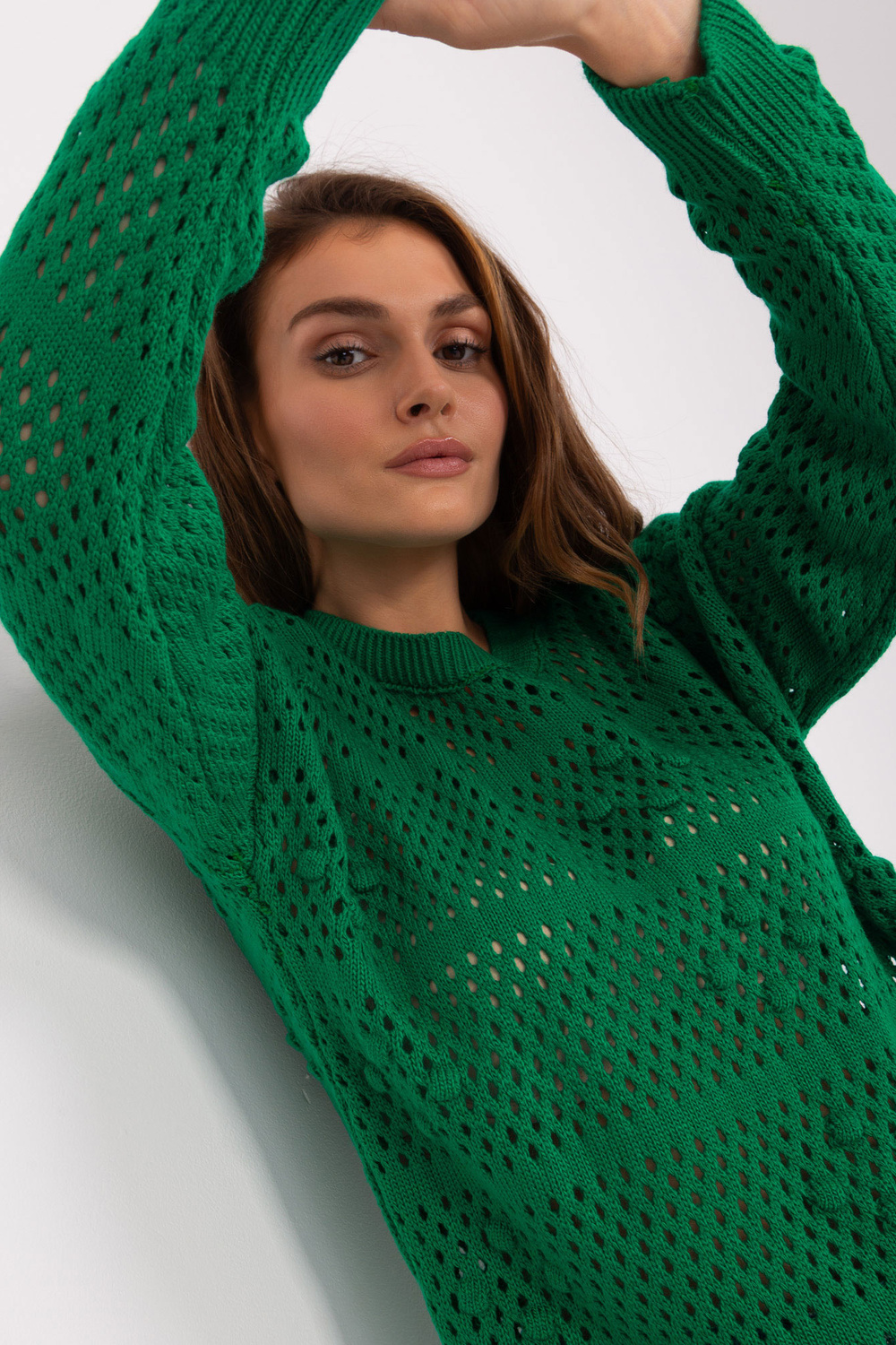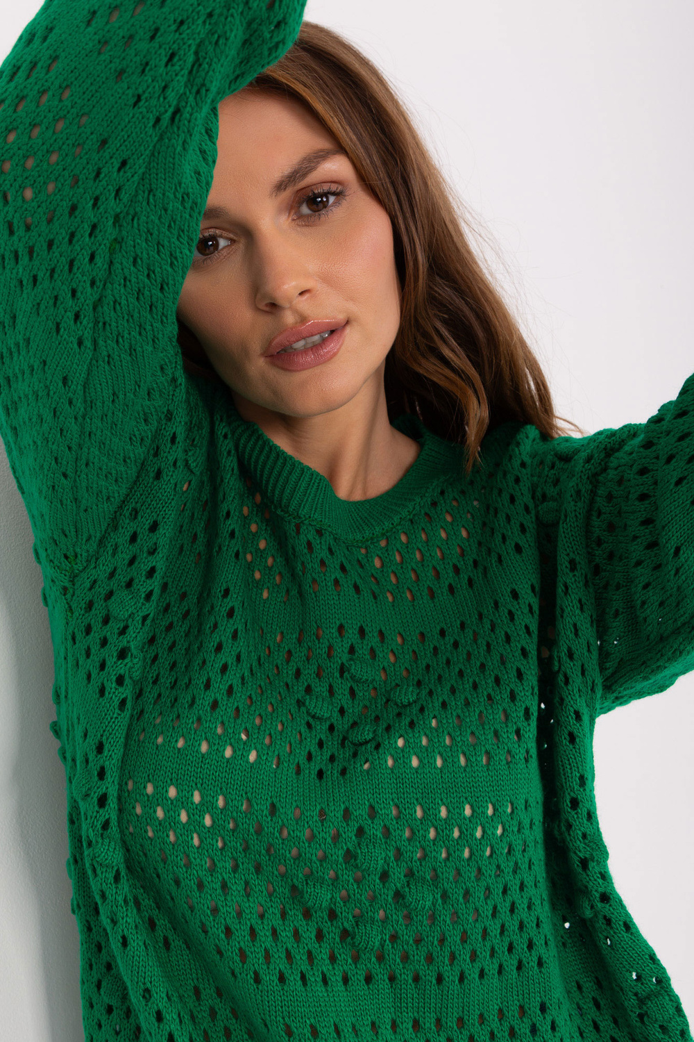 Modelis dėvi vieno dydžio dydį. Modelio išmatavimai: ūgis 170 cm, krūtinė 93 cm, juosmuo 66 cm, klubai 93 cm.