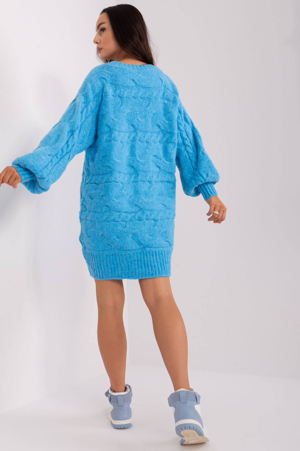 Suknelės matmenys vieno dydžio, matuojamas plokščias: plotis po pažastimis - 65 cm, rankovių ilgis - 68 cm, bendras ilgis - 94 cm.