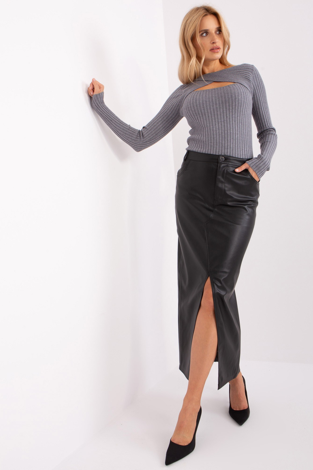 Modelis dėvi S/M dydį. Modelio išmatavimai: ūgis 175 cm, krūtinė 90 cm, juosmuo 66 cm, klubai 94 cm.