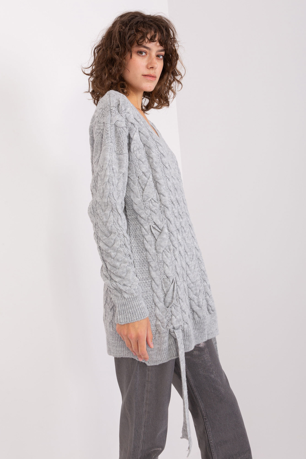 Modelis dėvi vieno dydžio dydį. Modelio išmatavimai: ūgis 177 cm, krūtinė 84 cm, juosmuo 62 cm, klubai 89 cm.