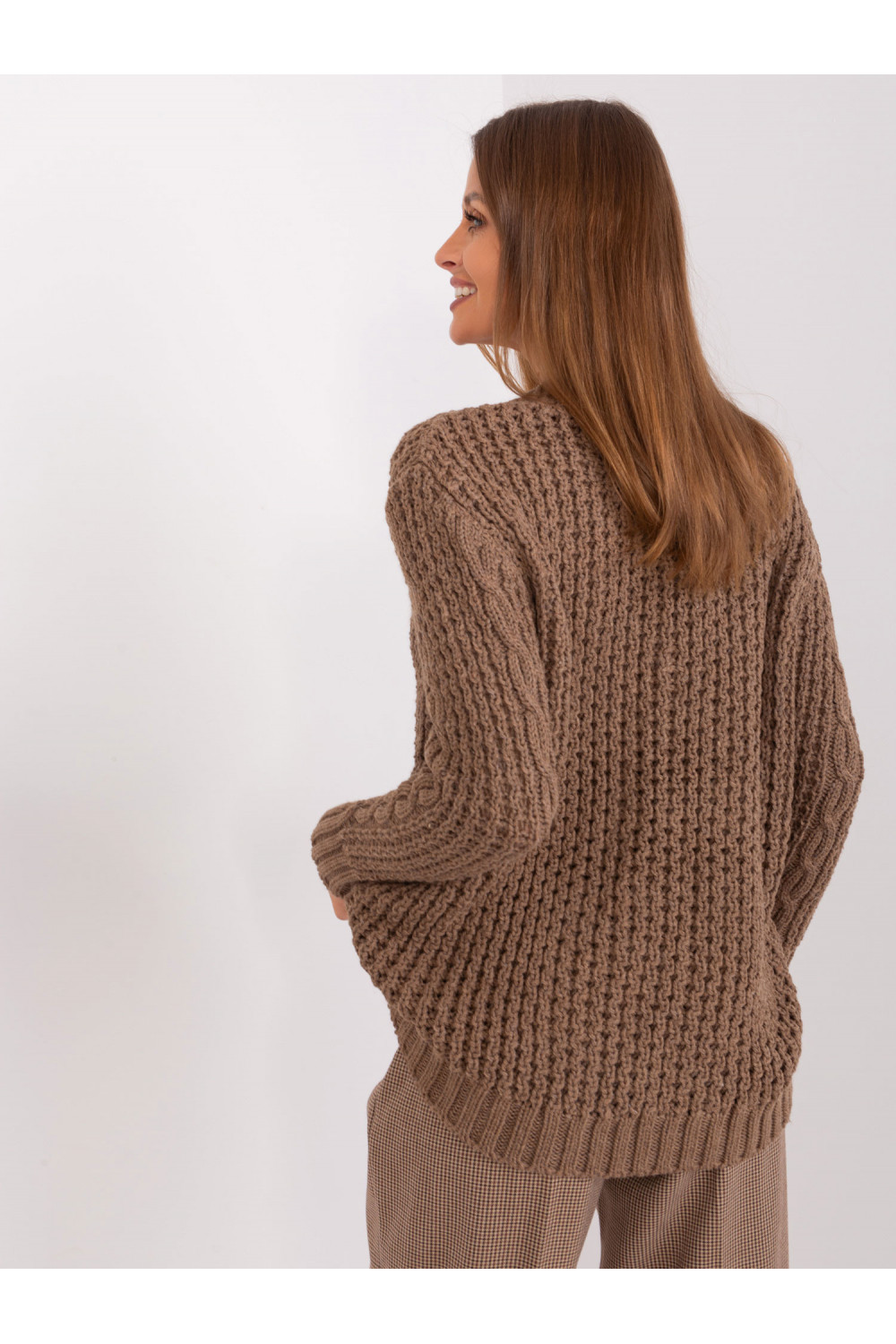 Modelis dėvi vieno dydžio dydį. Modelio išmatavimai: ūgis 176 cm, krūtinė 85 cm, juosmuo 64 cm, klubai 92 cm.