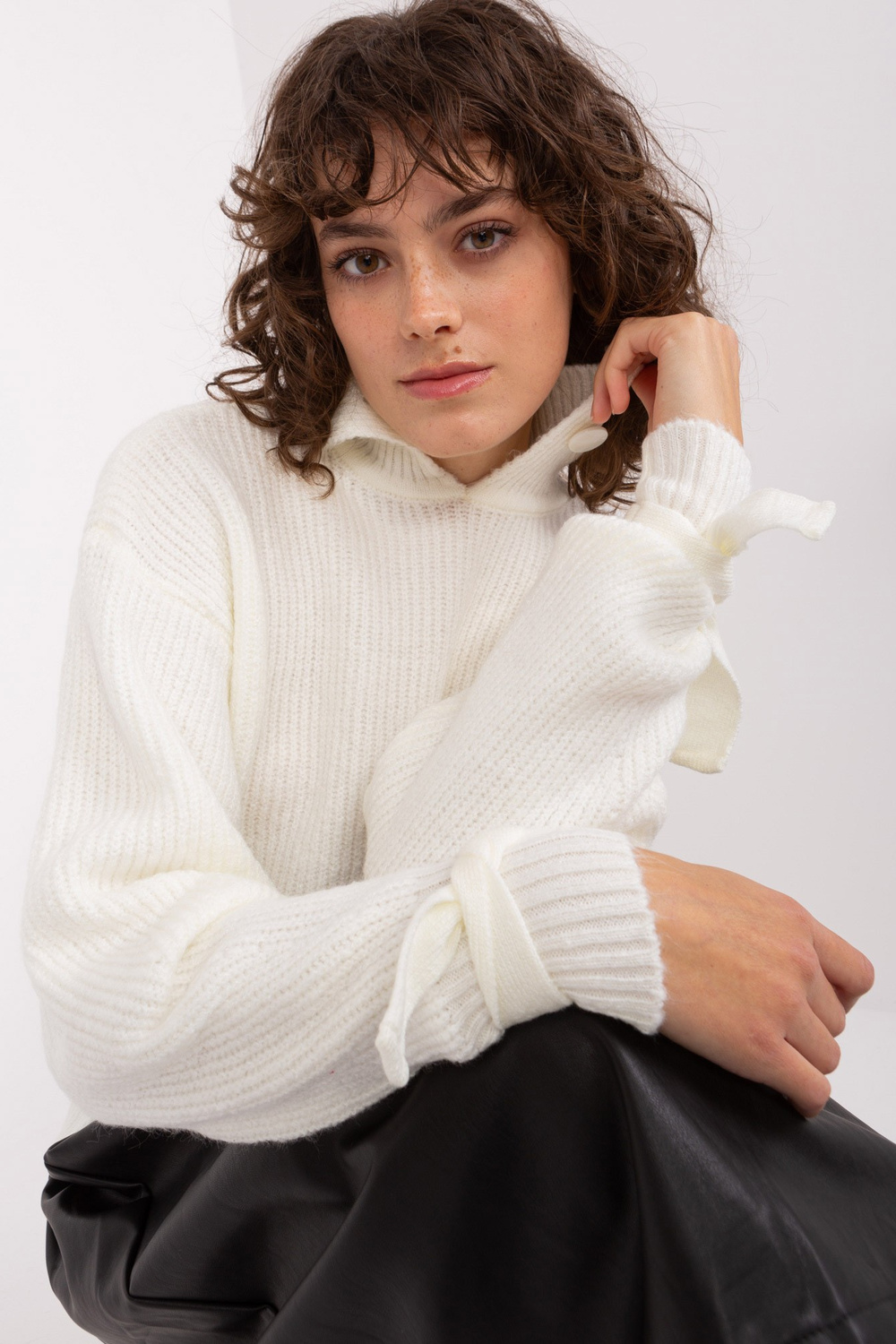 Moteriškas megztas „Ecru“ megztinis apykakle .