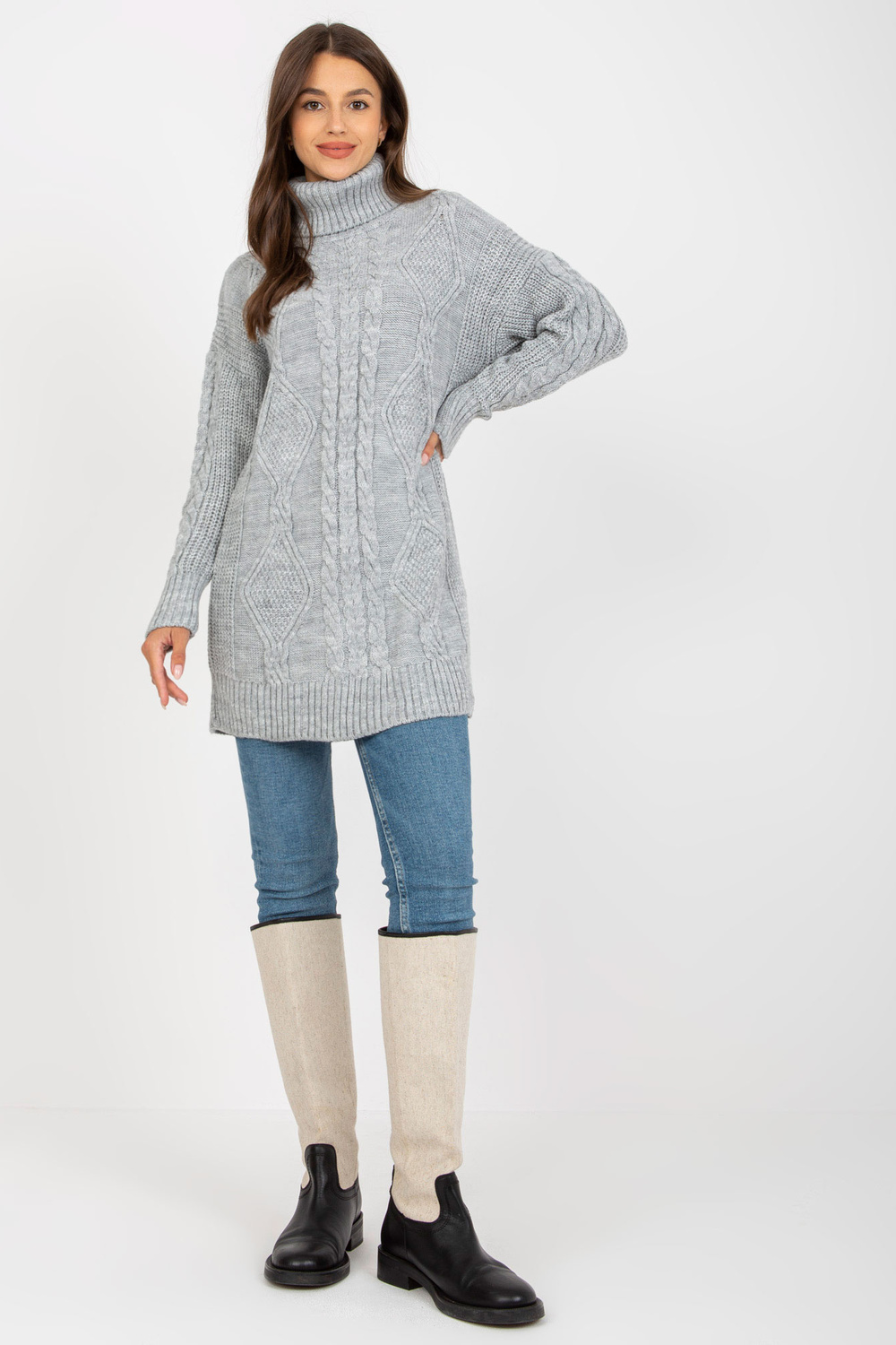 Graymini suknelė, megzta pynėmis RUE PARIS . Produkto kodas: LC-SW-8015.25P Dominuojantis raštas: lygus Stilius: laisvalaikis: laisvalaikis, į miestą, pasivaikščioti, į darbą Modelis dėvi vieno dydžio dydį. Modelio matmenys: aukštis 172 cm, krūtinė 88 cm, wai