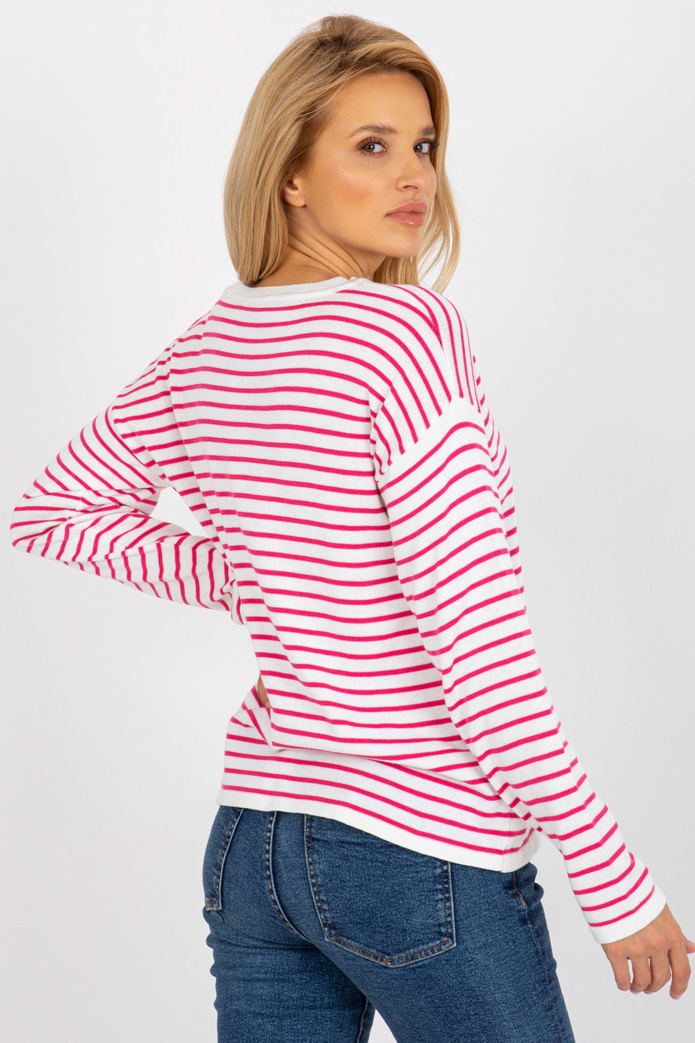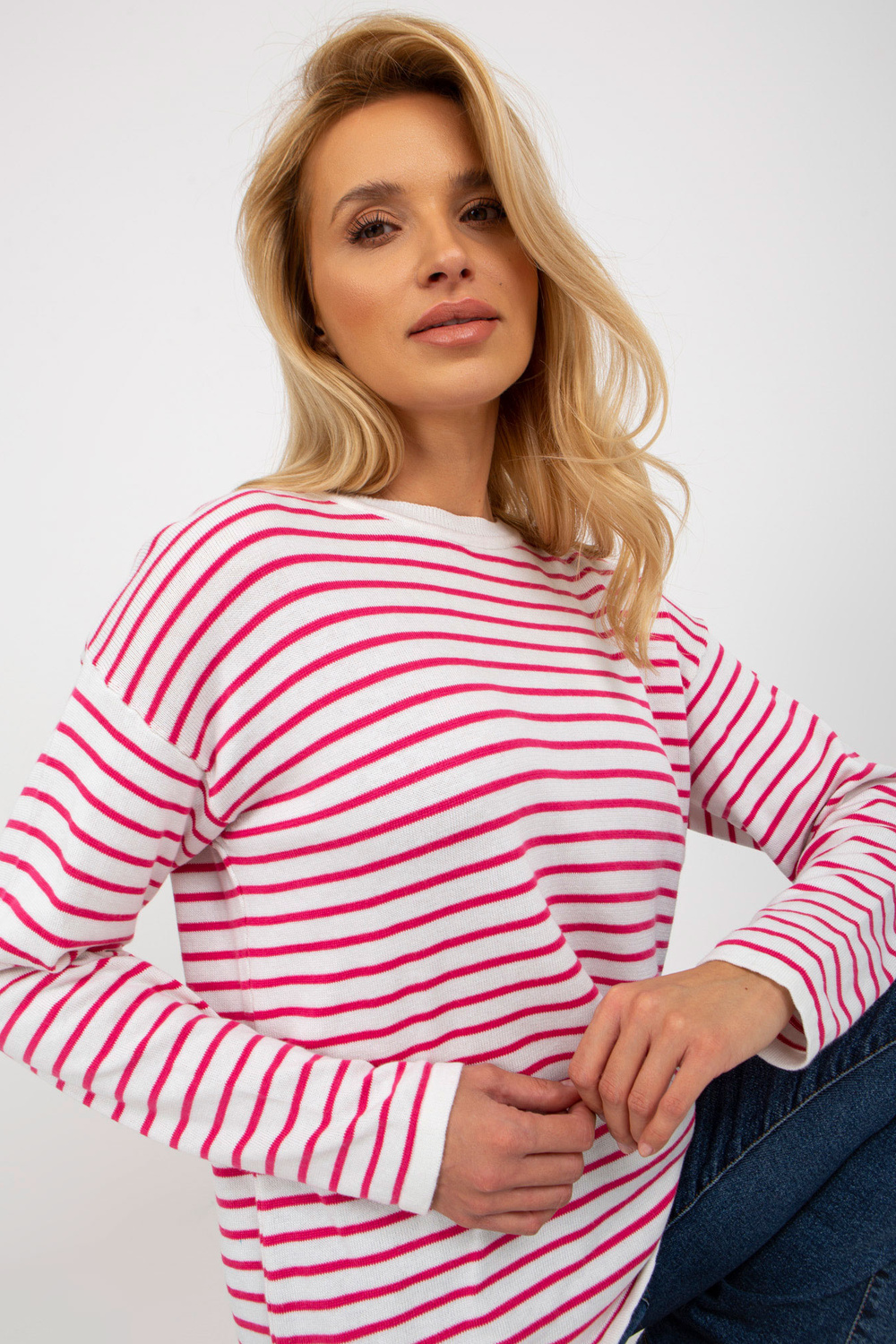 Baltas ir rožinis moteriškas klasikinis dryžuotas megztinis RUE PARIS.