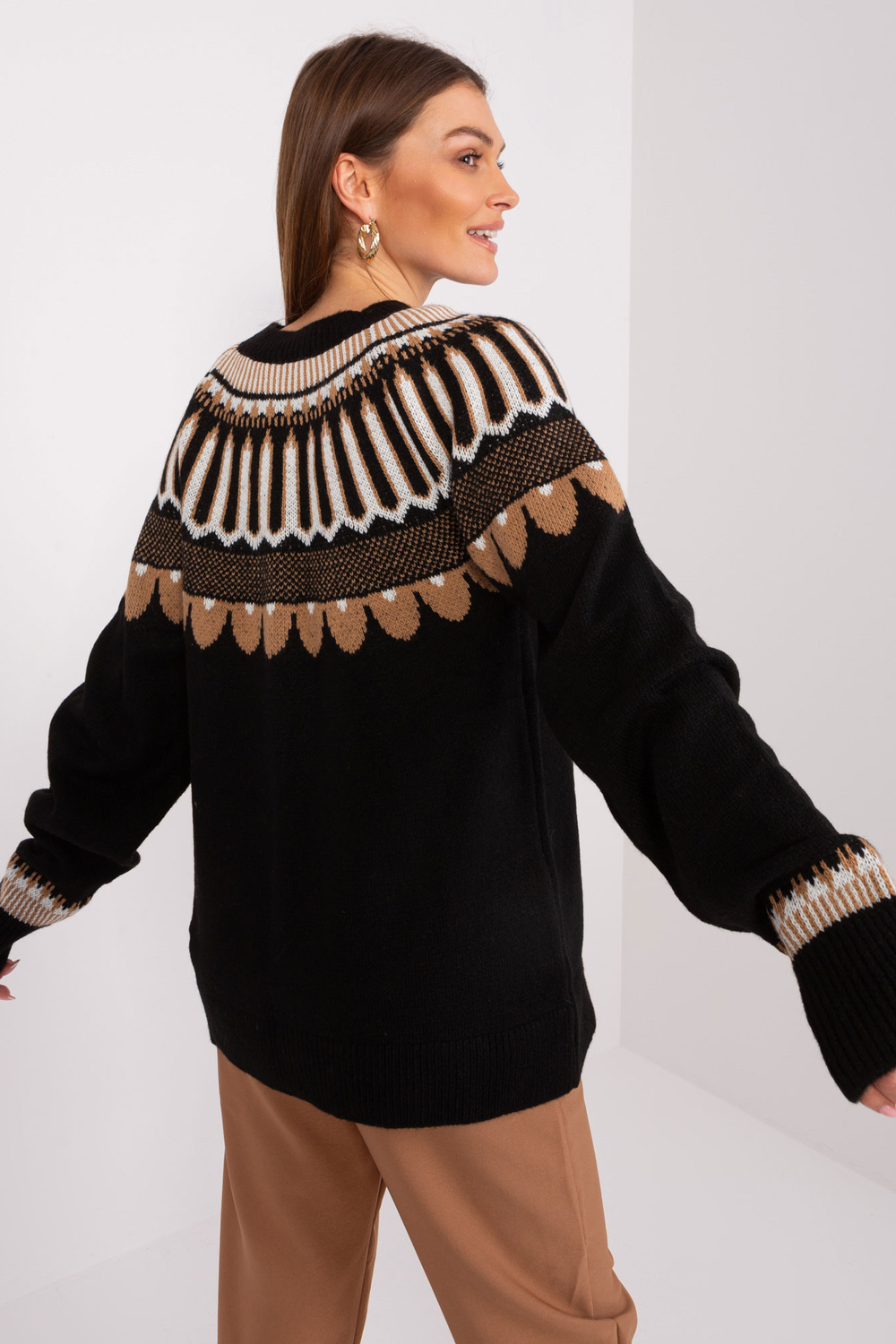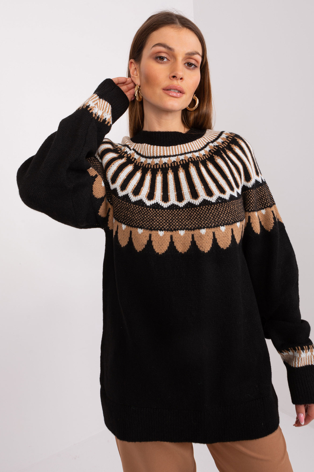 Vieno dydžio megztinio matmenys matuojami plokščiai: pažasties plotis - 49 cm, rankovių ilgis - 64 cm, bendras ilgis - 67 cm.