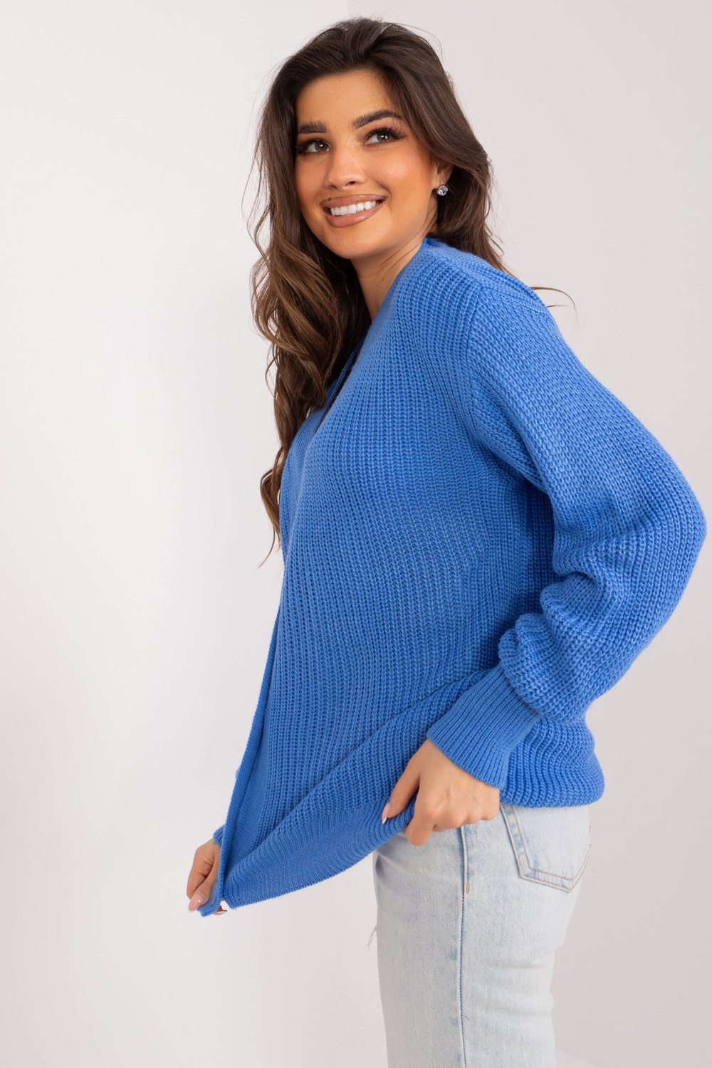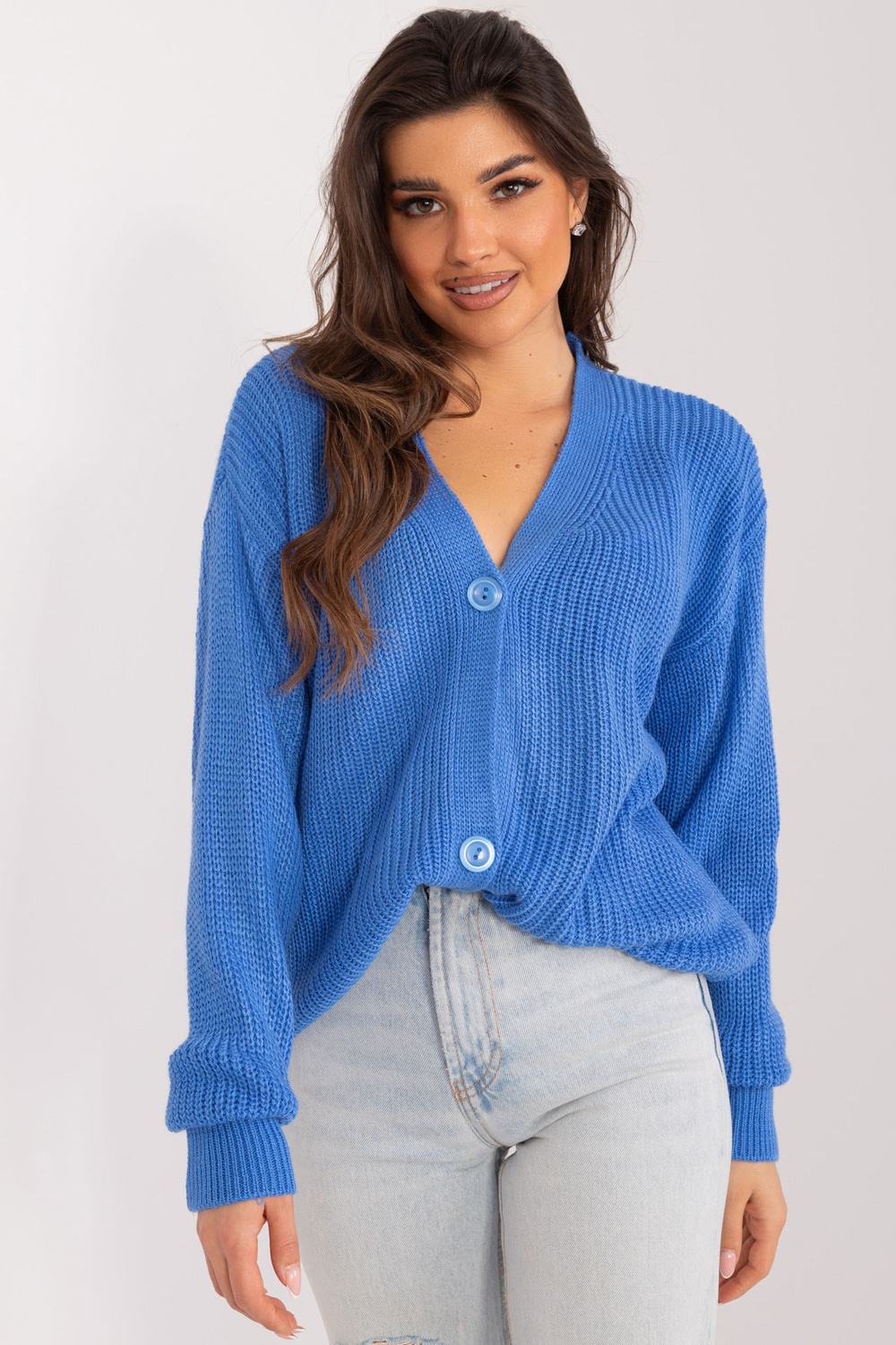 Vieno dydžio megztinio matmenys matuojami plokščiai: pažasties plotis - 64 cm, bendras ilgis - 74 cm, rankovių ilgis - 64 cm.