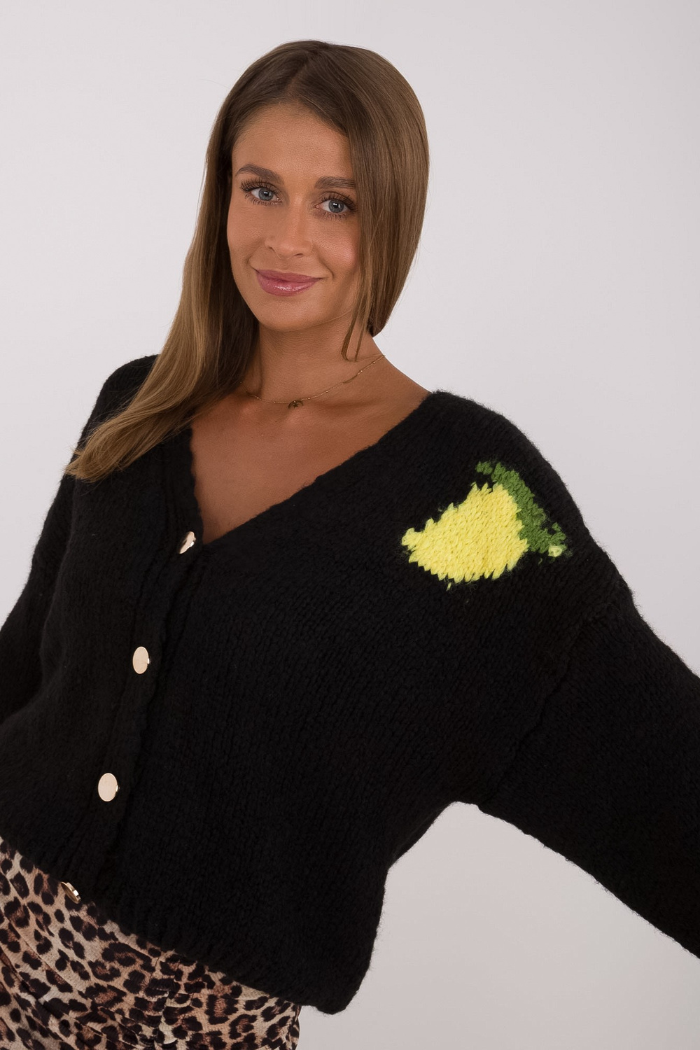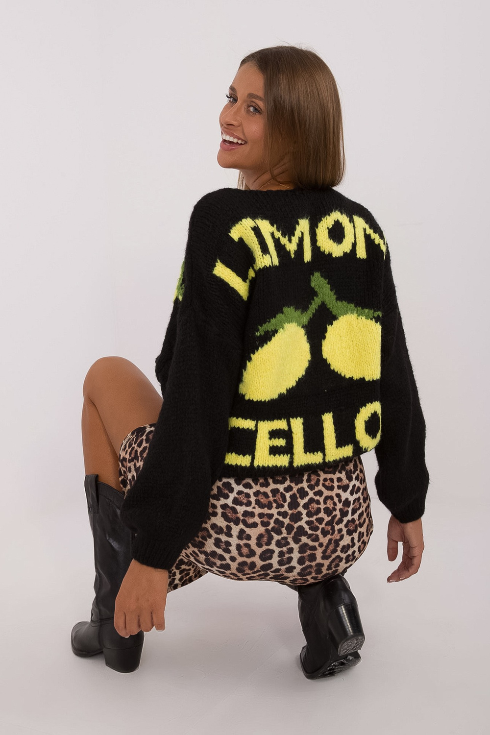 Vieno dydžio megztinio matmenys matuojami plokščiai: pažasties plotis - 62 cm, rankovių ilgis - 56 cm, bendras ilgis - 57 cm.