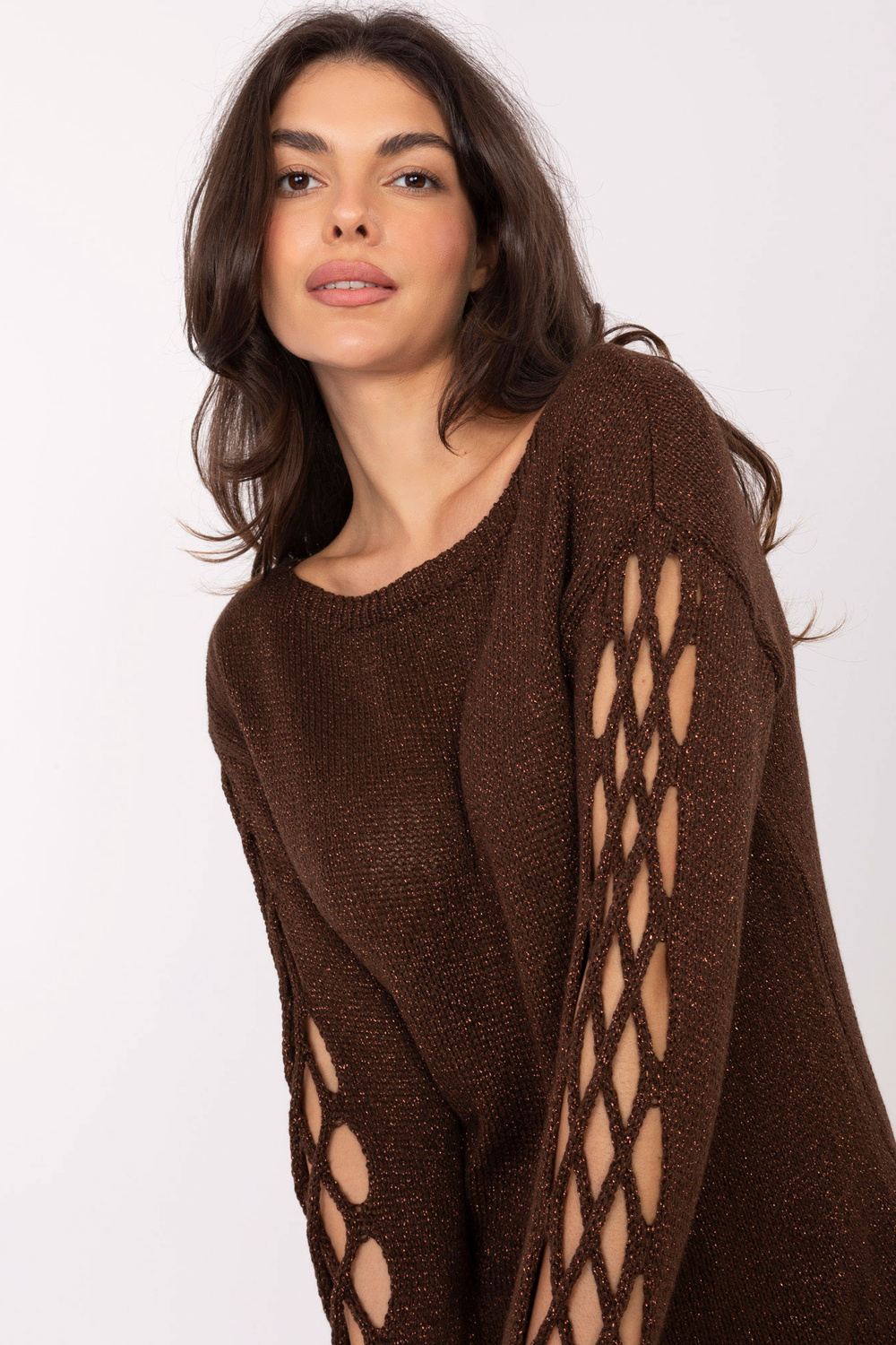Megztinio matmenys vieno dydžio rūbe, matuojant paklotą: plotis po pažastimis - 57 cm, rankovės ilgis - 48 cm (nuo siūlės), plotis klubų srityje - 43 cm, bendras ilgis - 64 cm.