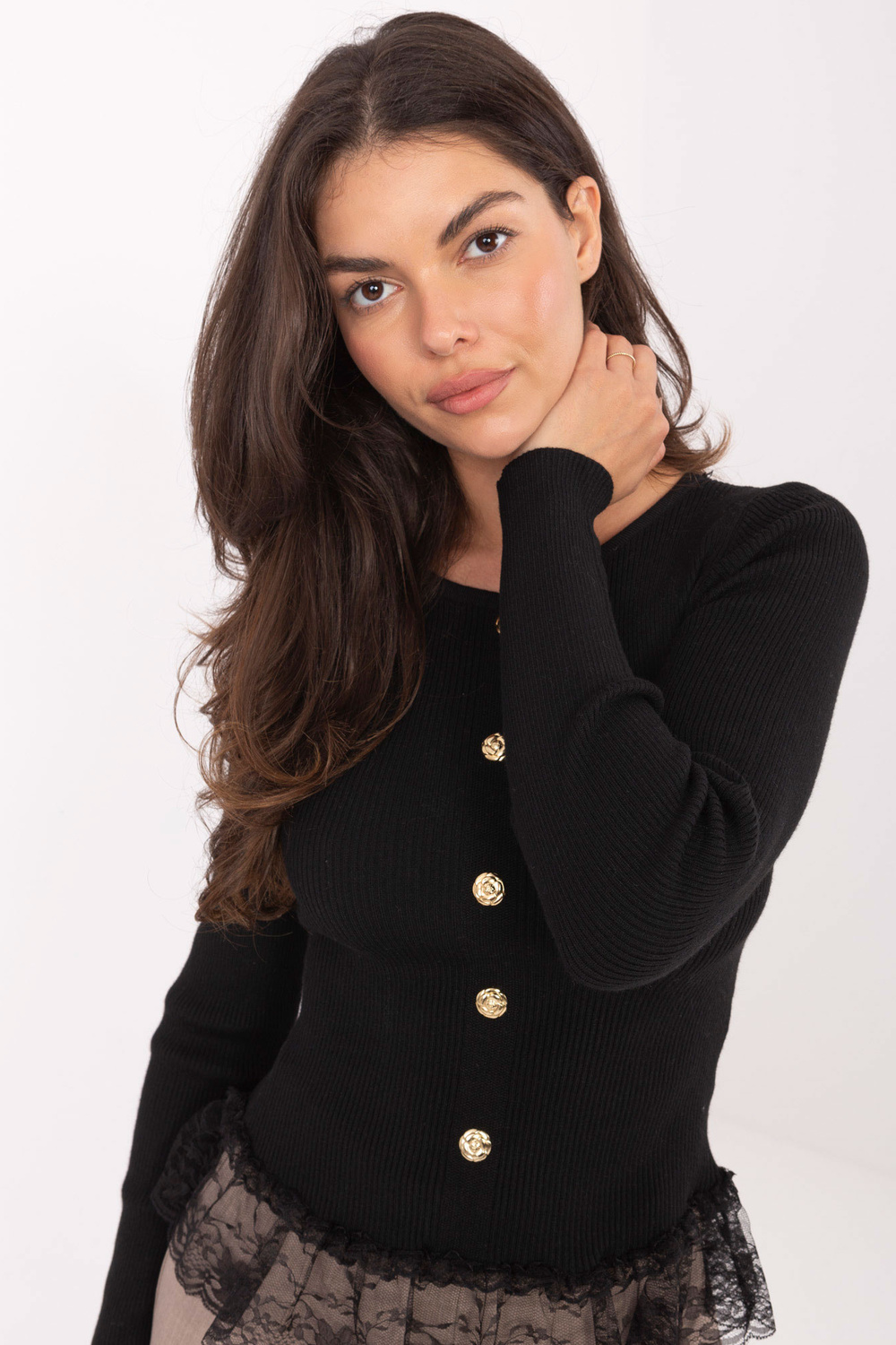 Modelis dėvi vieno dydžio drabužį. Modelio matmenys: ūgis 173 cm, krūtinė 85 cm, liemuo 62 cm, klubai 95 cm.