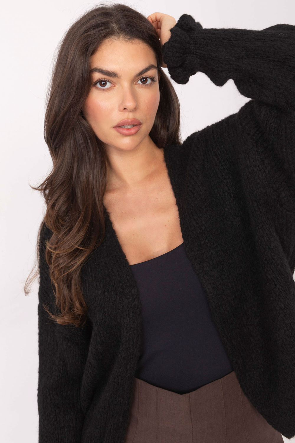 Megztinio matmenys vieno dydžio rūbe, matuojant plokščiai: plotis po pažastimis - 81 cm, rankovės ilgis - 50 cm (nuo siūlės), plotis klubų srityje - 67 cm, bendras ilgis - 60 cm.