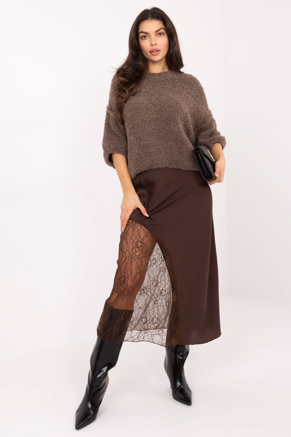 Modelis dėvi vieno dydžio drabužį. Modelio matmenys: ūgis 176 cm, krūtinė 90 cm, liemuo 62 cm, klubai 94 cm.