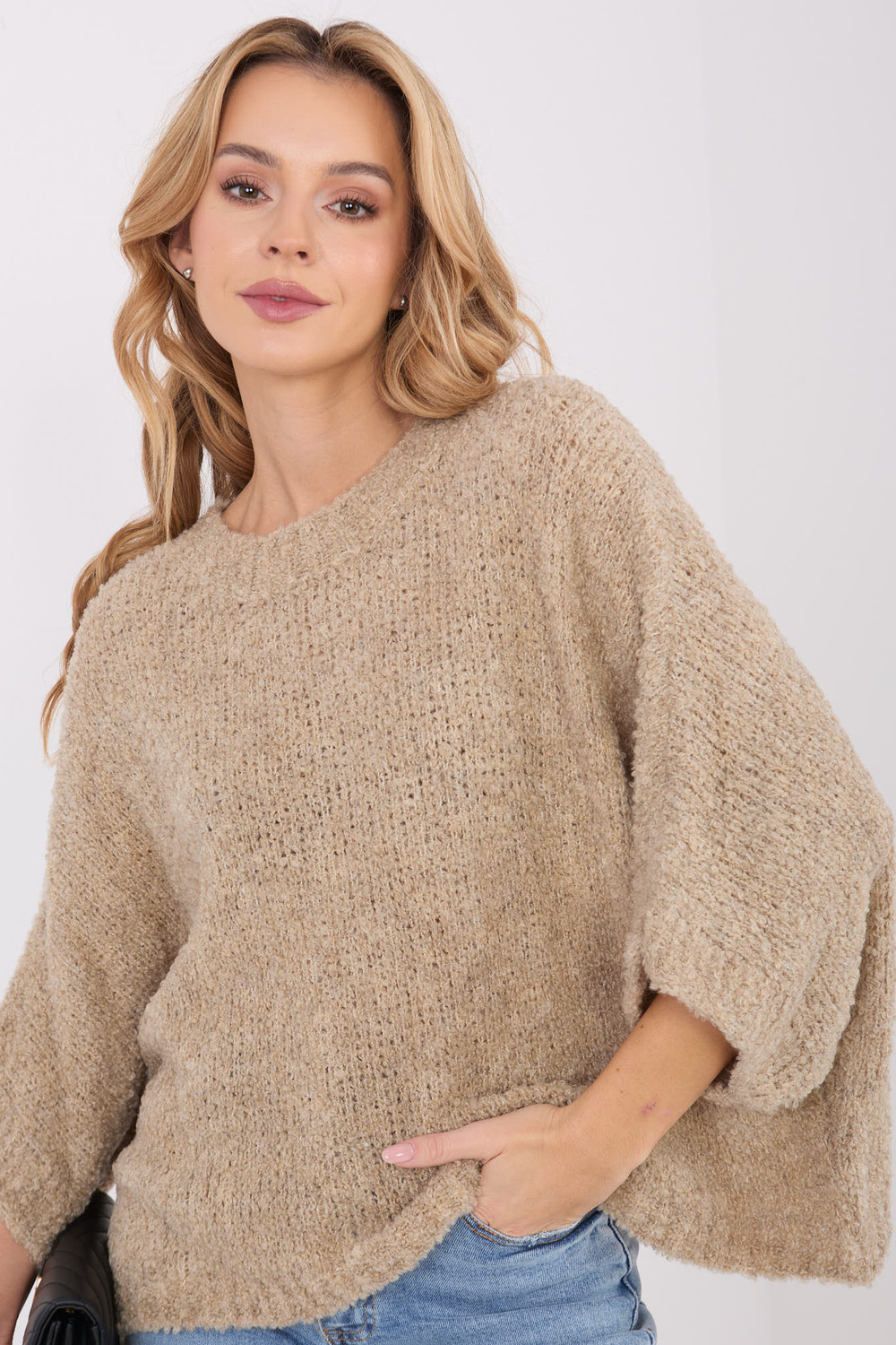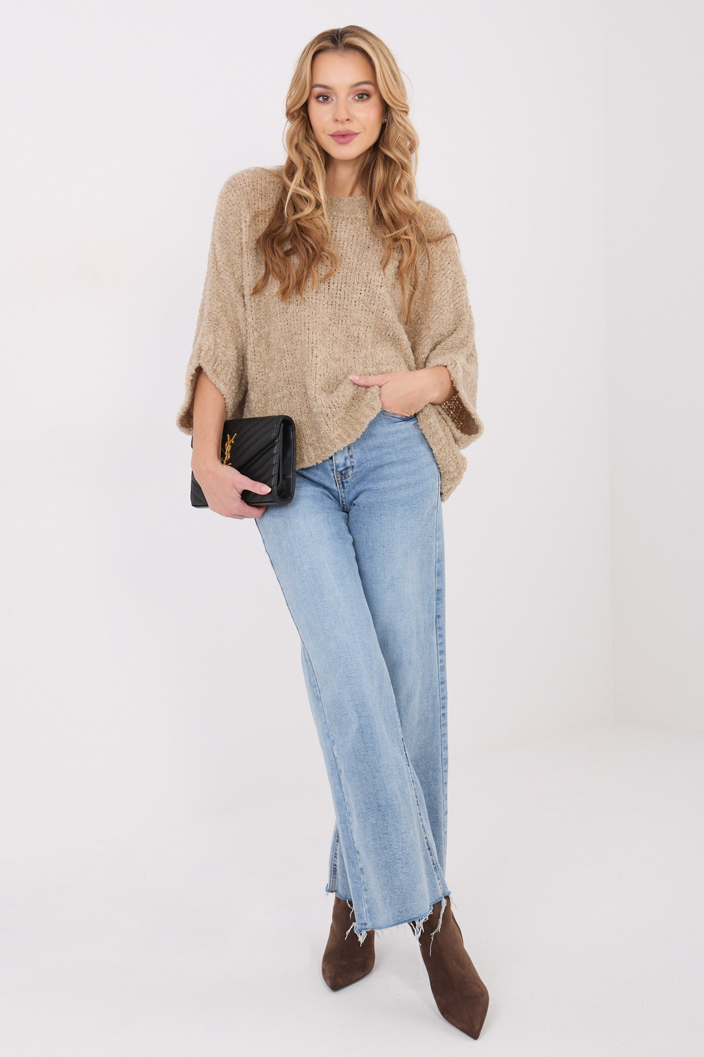 Megztinio išmatavimai vieno dydžio, matuoti išskėstą: plotis po pažastimis – 72 cm, bendras ilgis – 57 cm, rankovės ilgis – 50 cm (nuo siūlės), plotis klubuose – 65 cm.