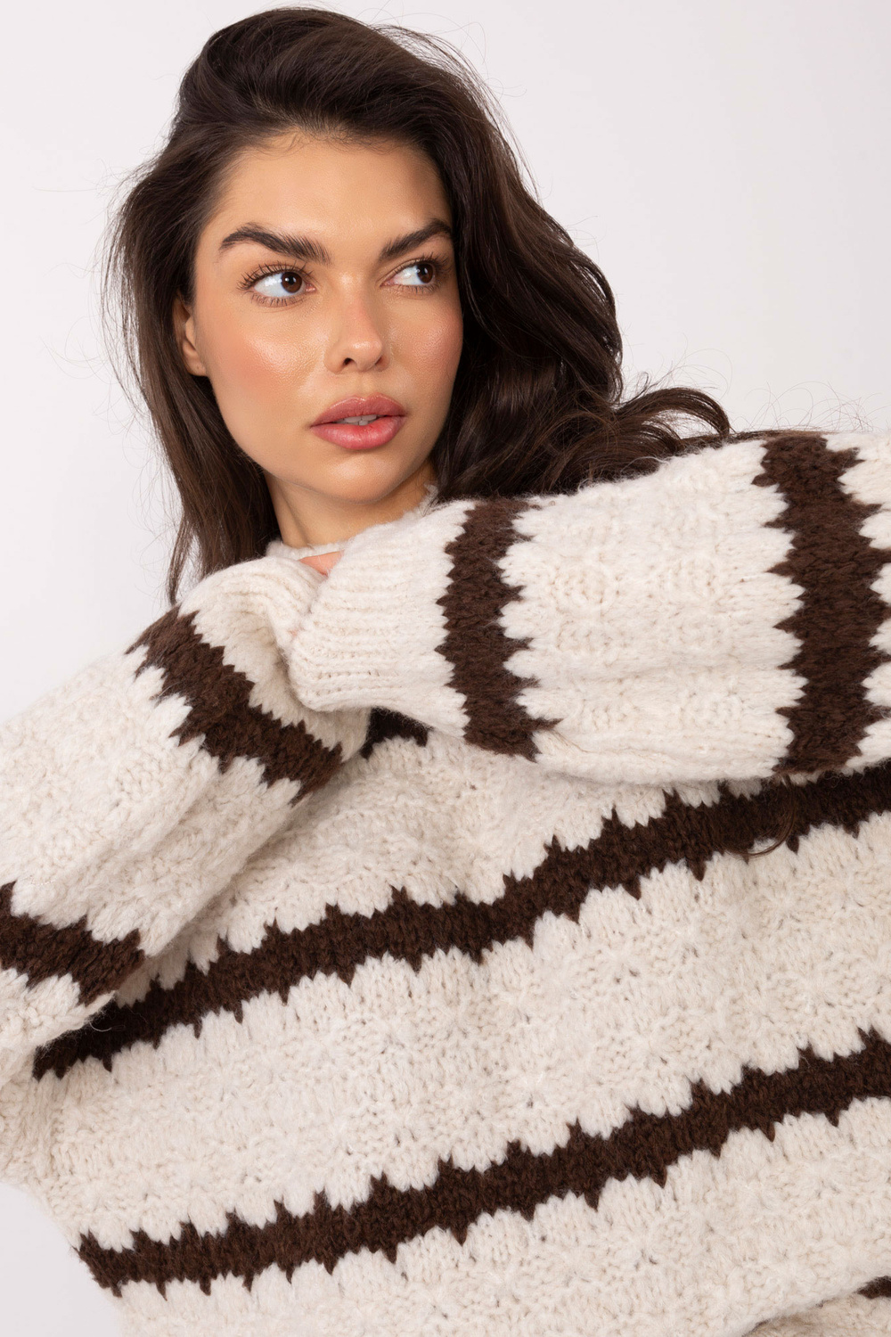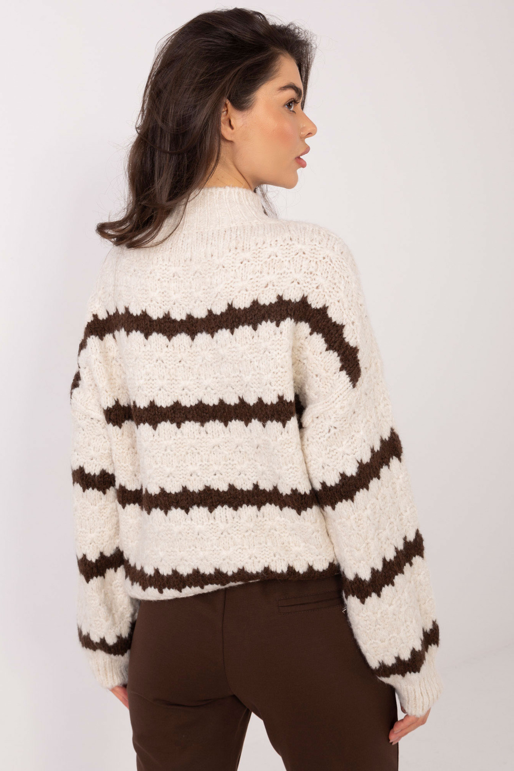 Megztinio matmenys vieno dydžio, matuojant plokščiai: plotis po pažastimis - 65 cm, klubų plotis - 52 cm, rankovės ilgis - 48 cm (nuo siūlės), bendras ilgis - 60 cm.