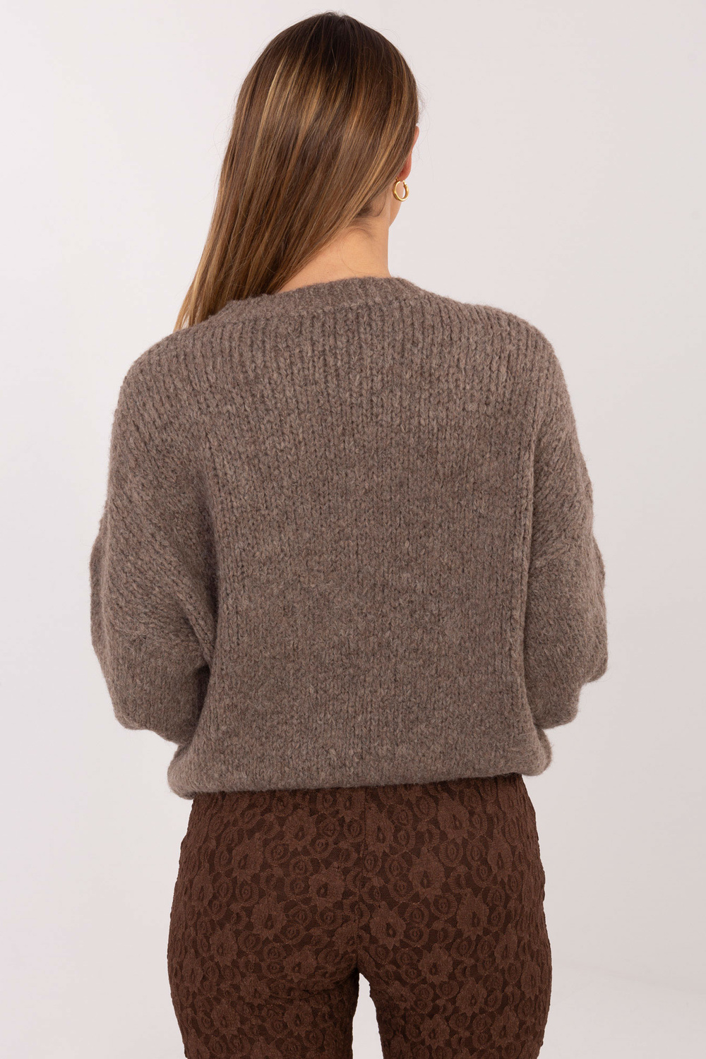Megztinio išmatavimai vieno dydžio: plotis pažastyse – 64 cm, plotis klubuose – 52 cm, rankovės ilgis – 48 cm (nuo siūlės), bendras ilgis – 59 cm.