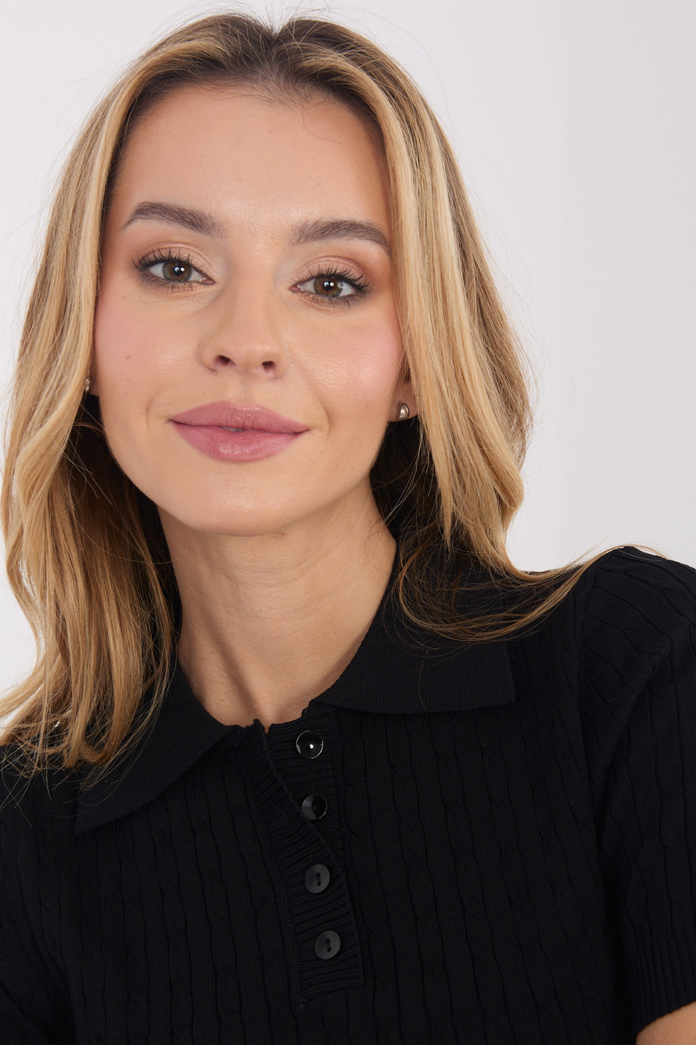 Modelis dėvi vieno dydžio drabužį. Modelio matmenys: ūgis 169 cm, krūtinė 88 cm, liemuo 68 cm, klubai 89 cm.
