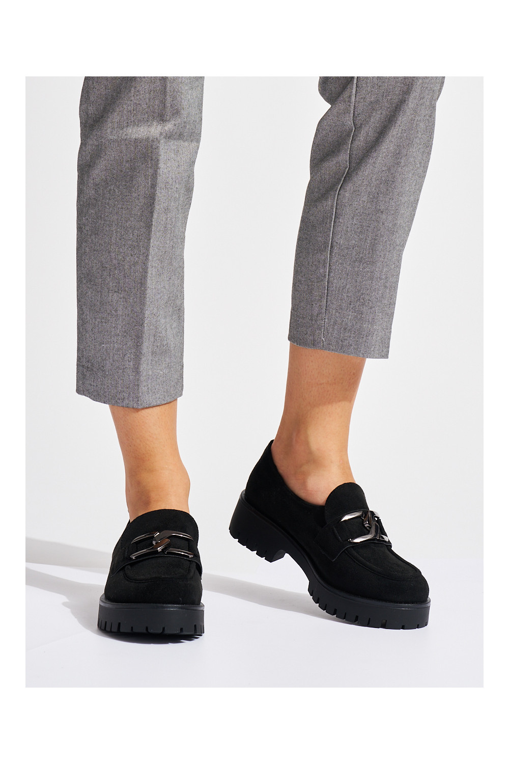 iš zomšos juodos spalvos moteriški mokasinai