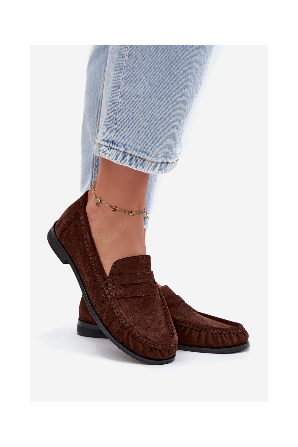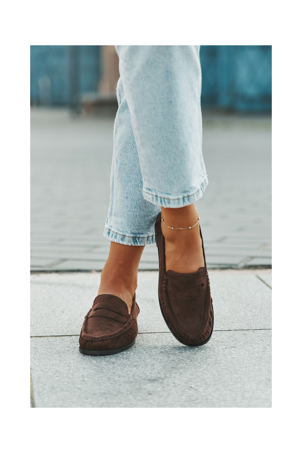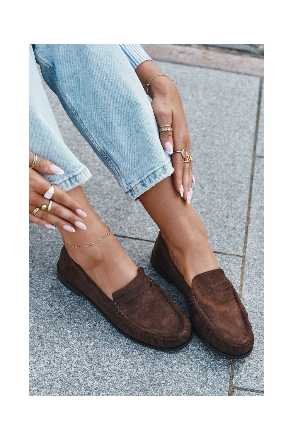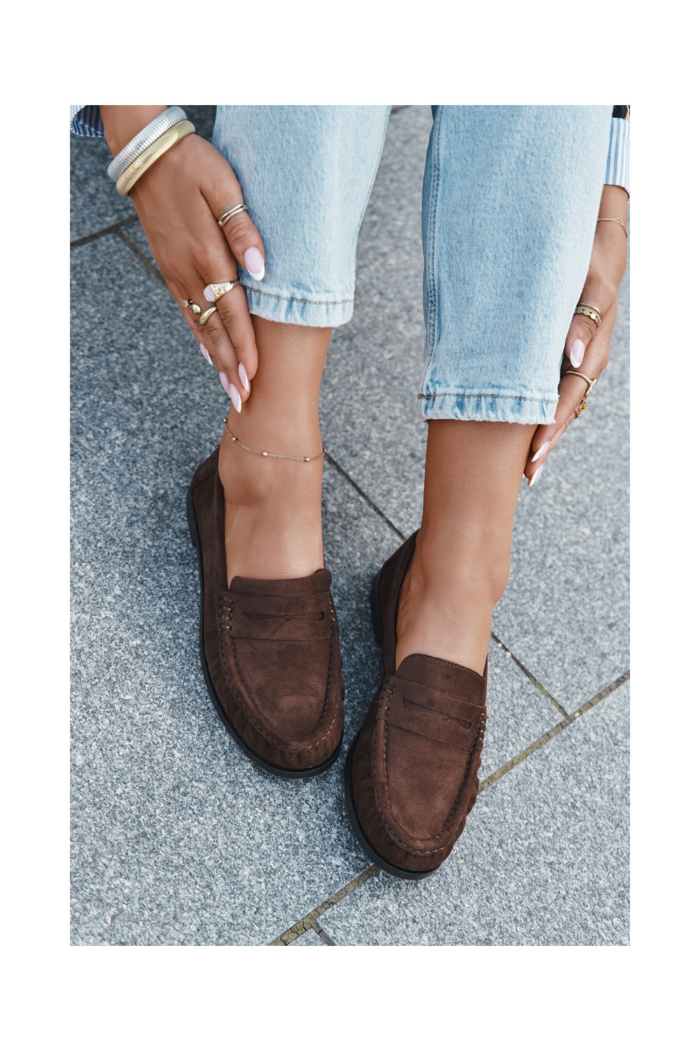 Moteriški mokasinai su plačiais kulniukais iš eko zomšos rudos spalvos "Rivianne"