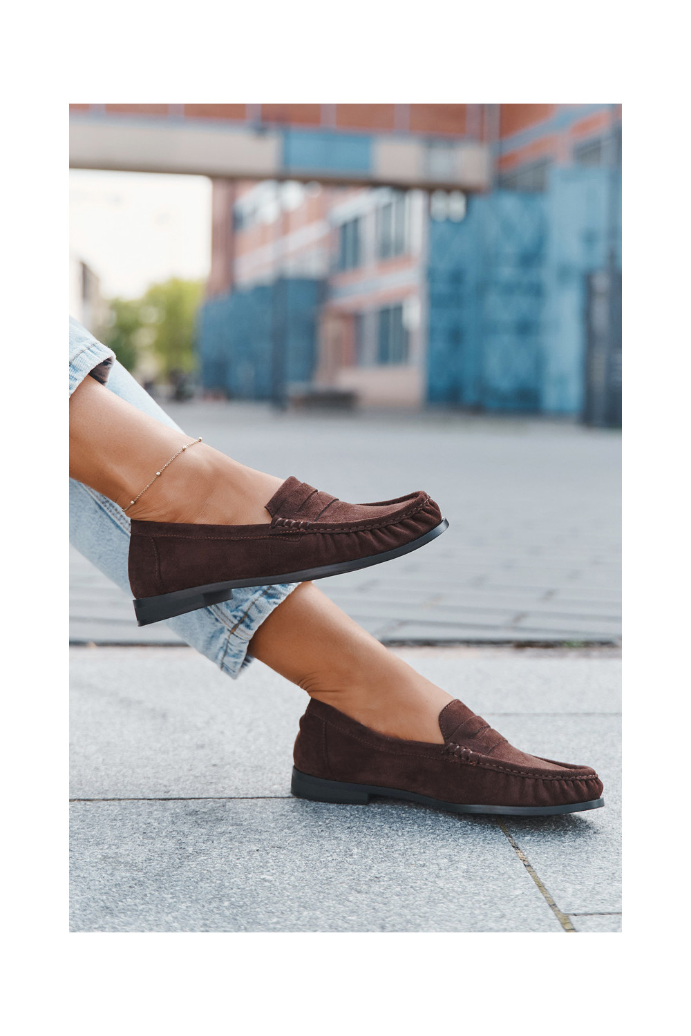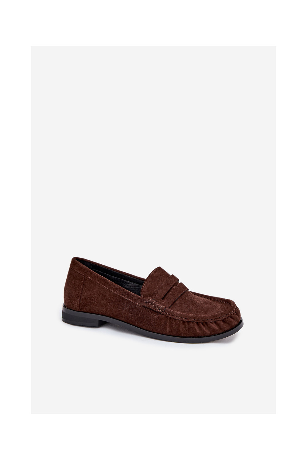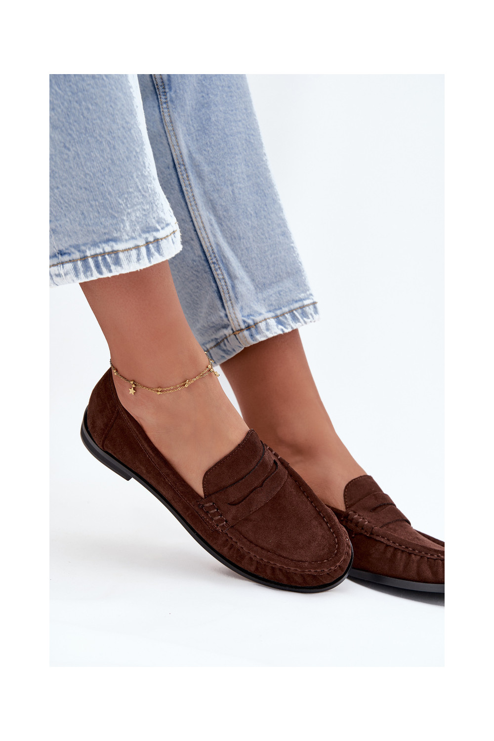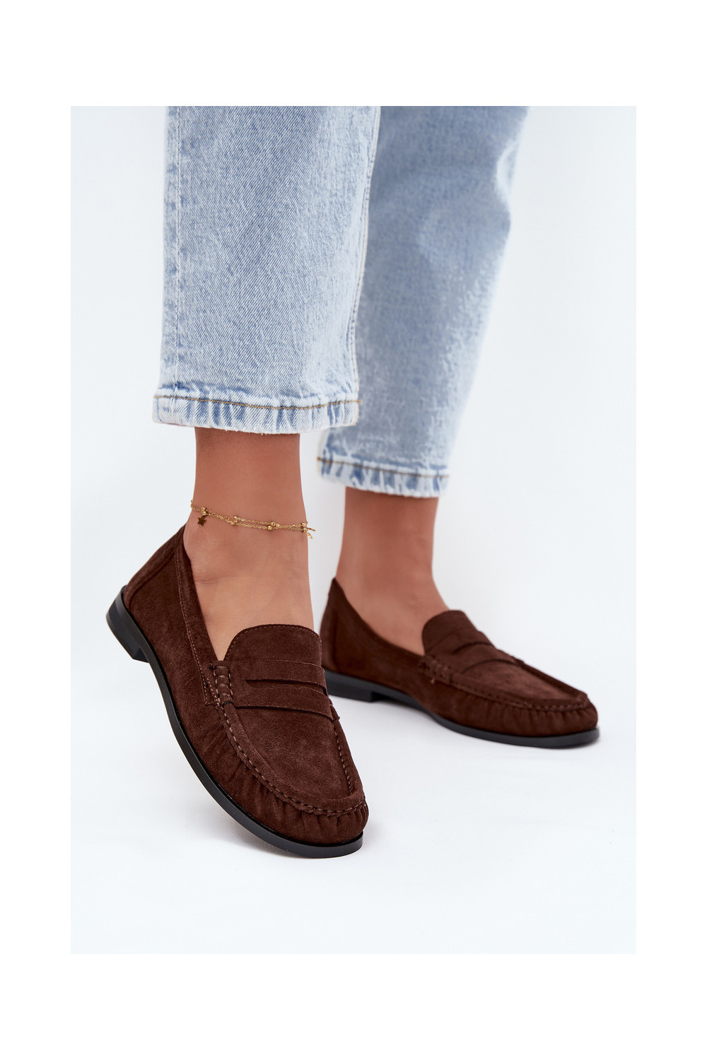 Moteriški mokasinai su plačiais kulniukais iš eko zomšos rudos spalvos "Rivianne"