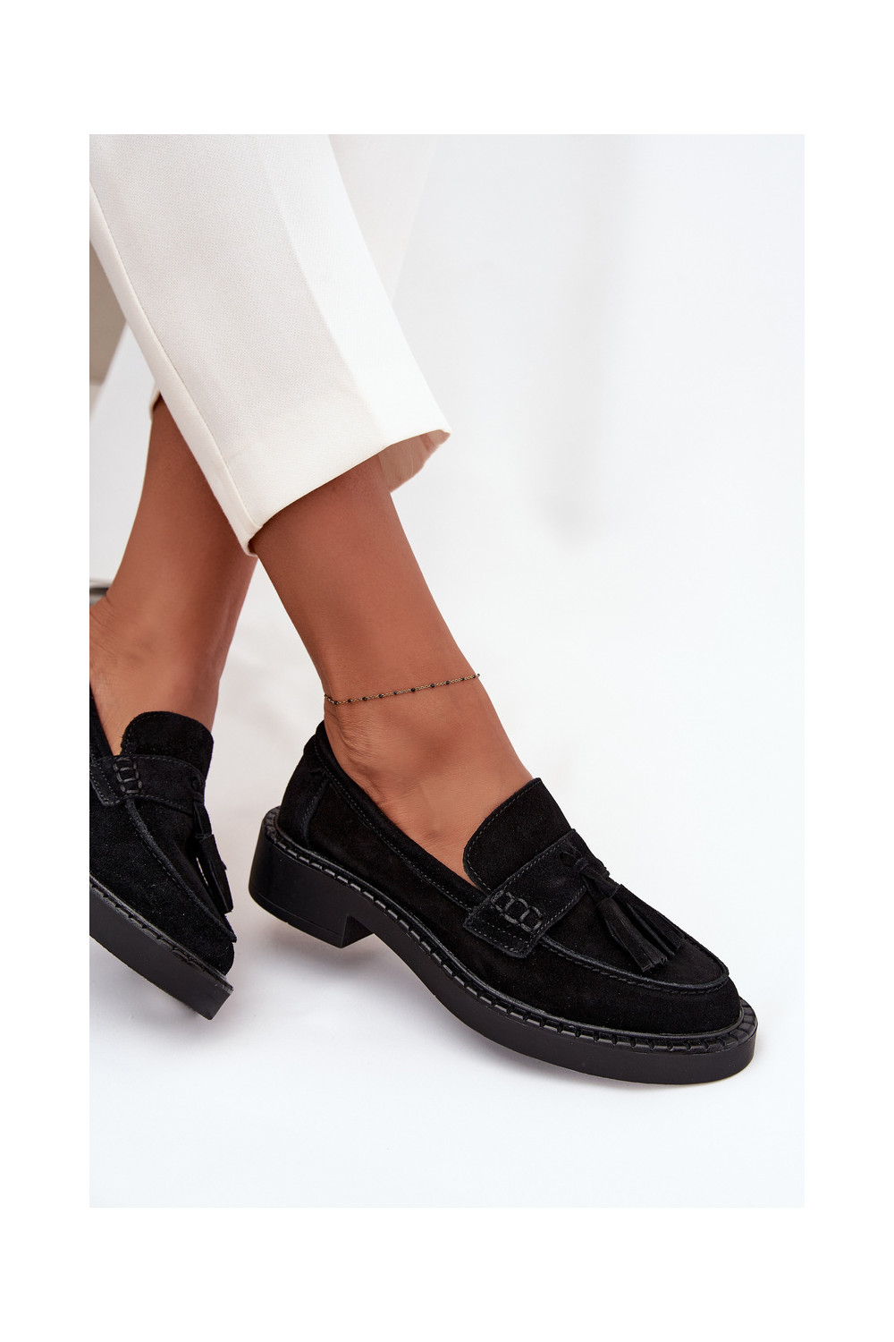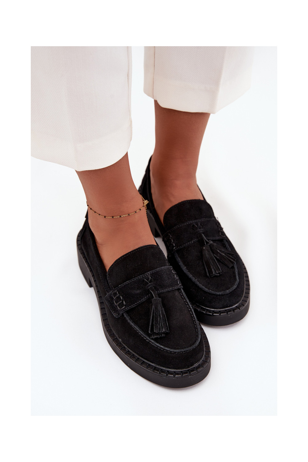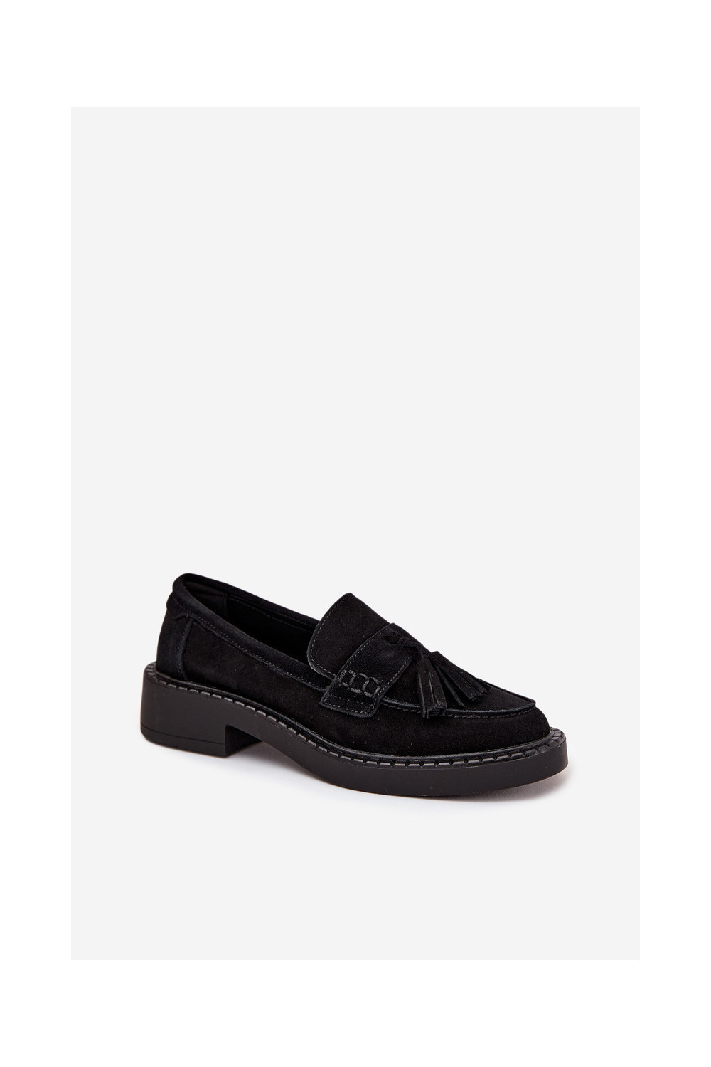 Juodos spalvos moteriški zomšiniai mokasinai su kutais D&A TIN107