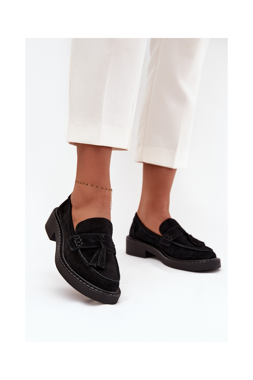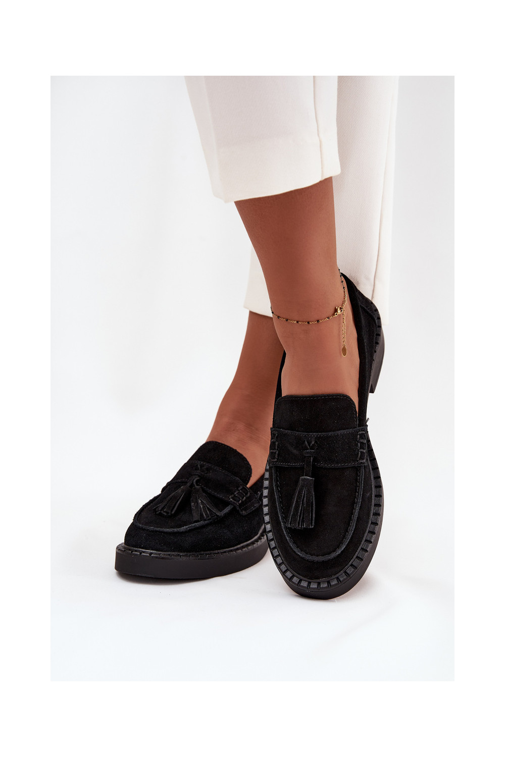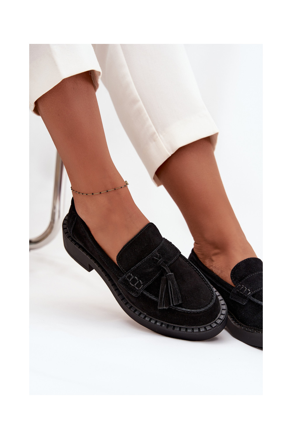 Juodos spalvos moteriški zomšiniai mokasinai su kutais D&A TIN107