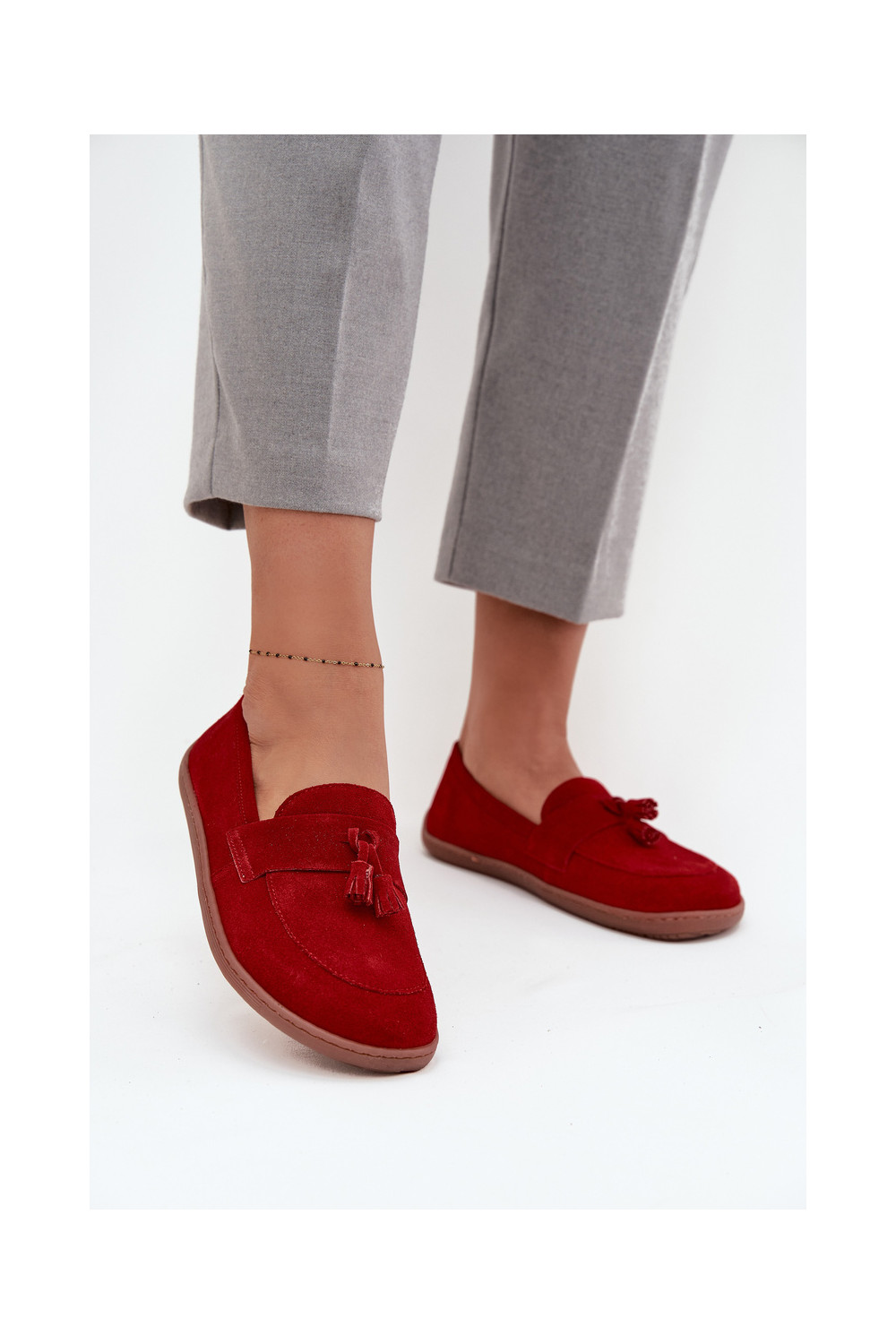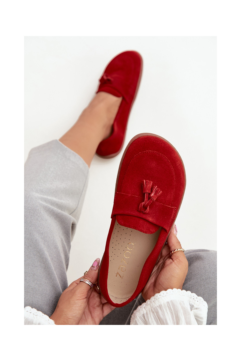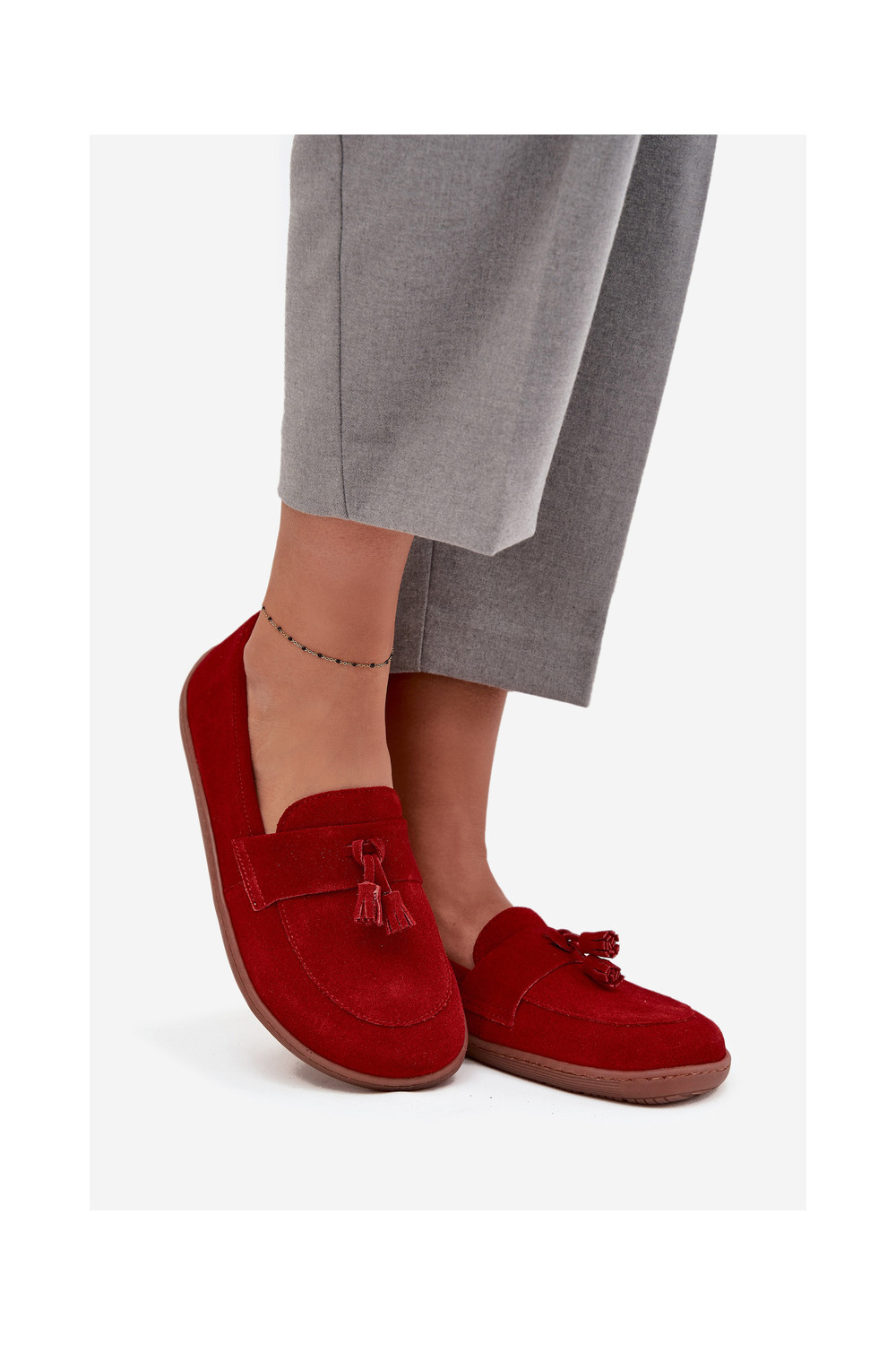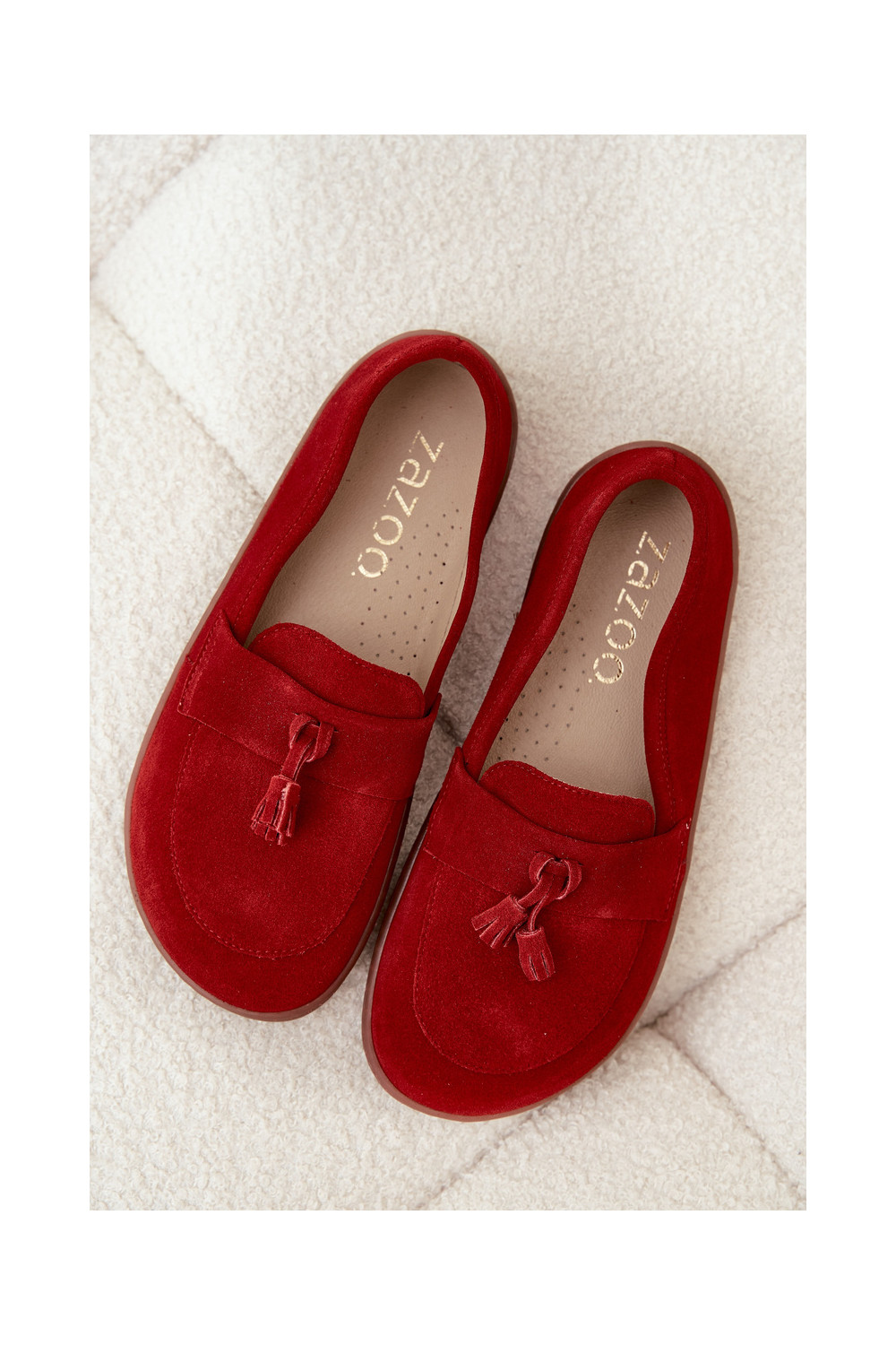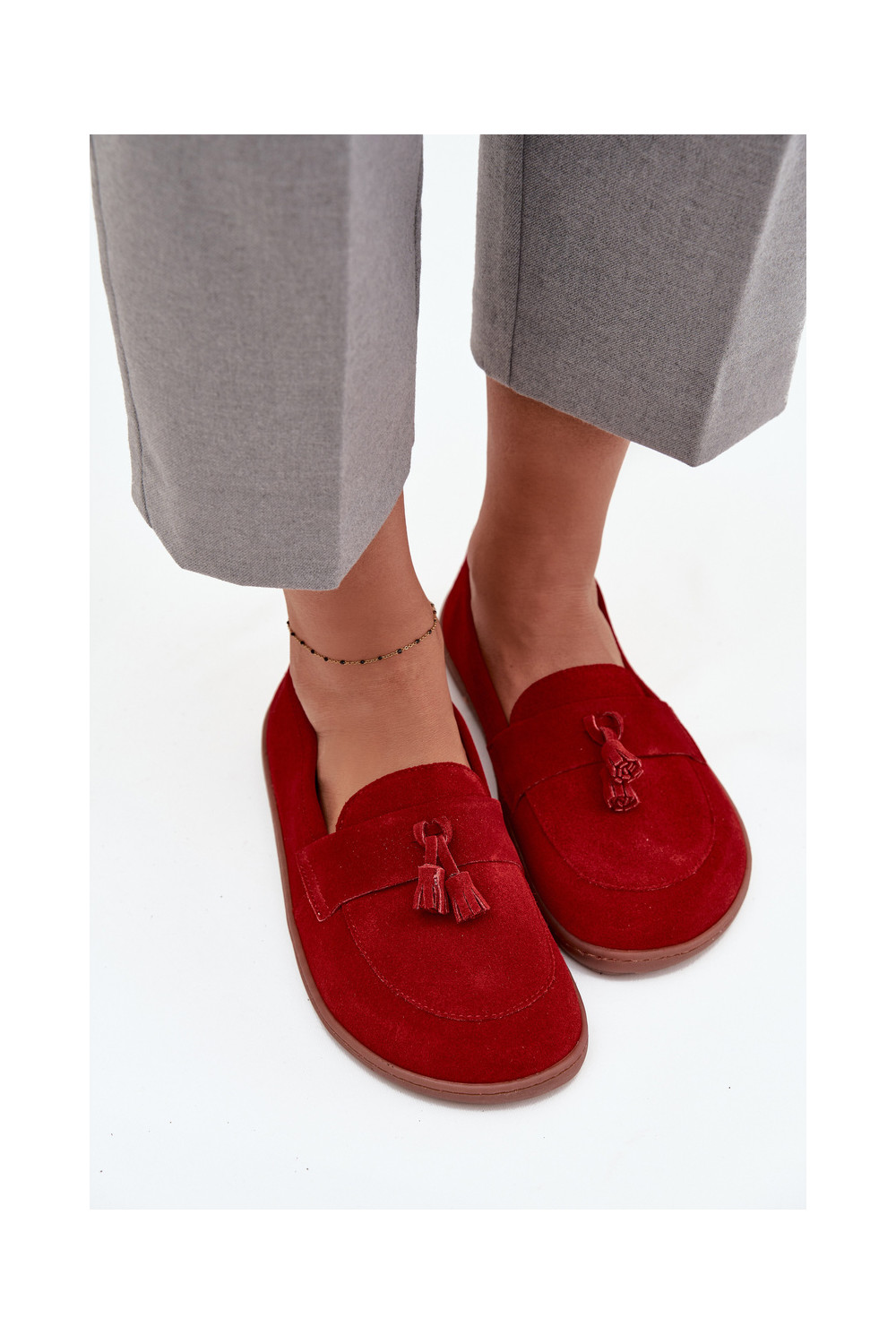 Odiniai zomšiniai mokasinai "Barefoot" tipo Zazoo 322 raudonos spalvos