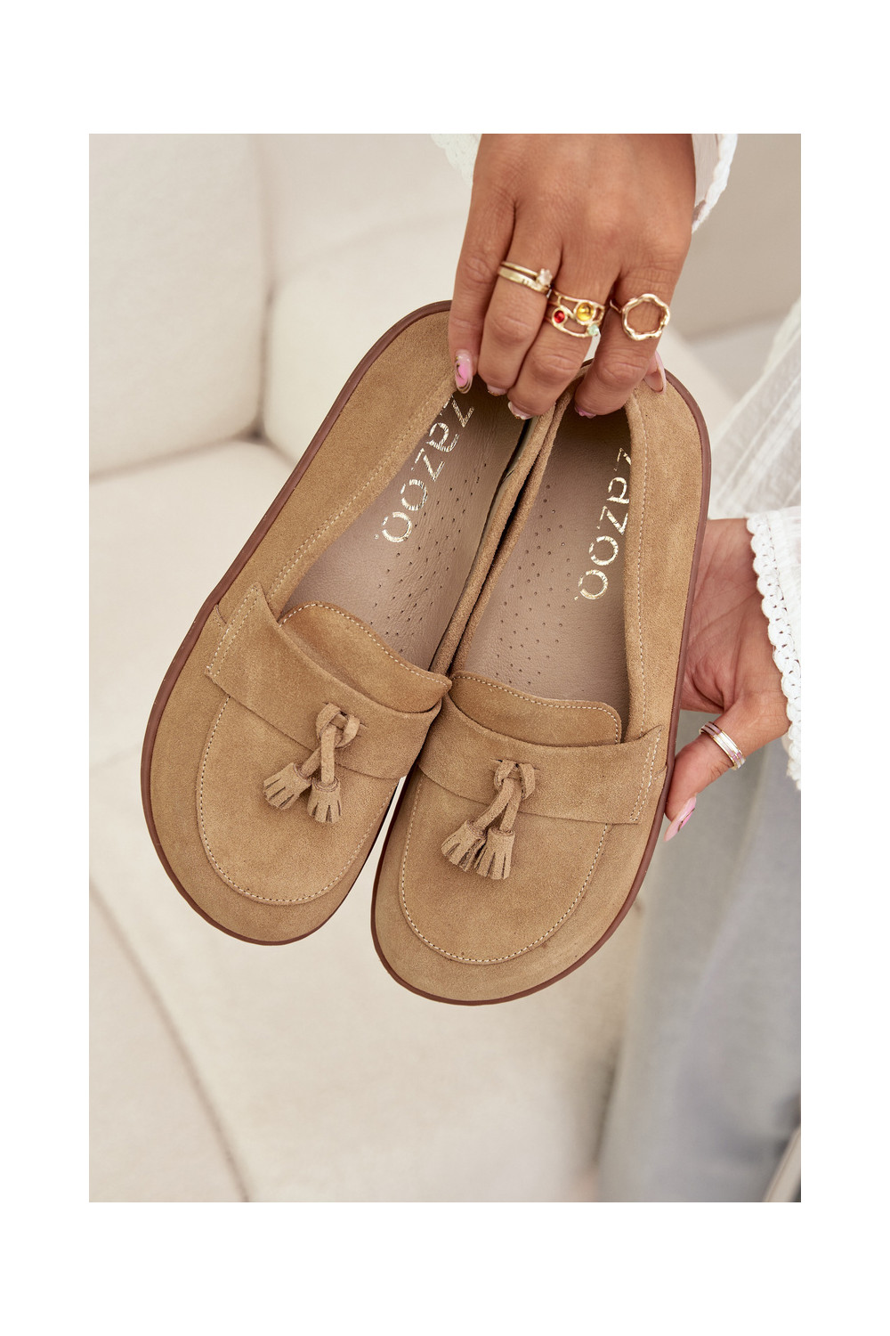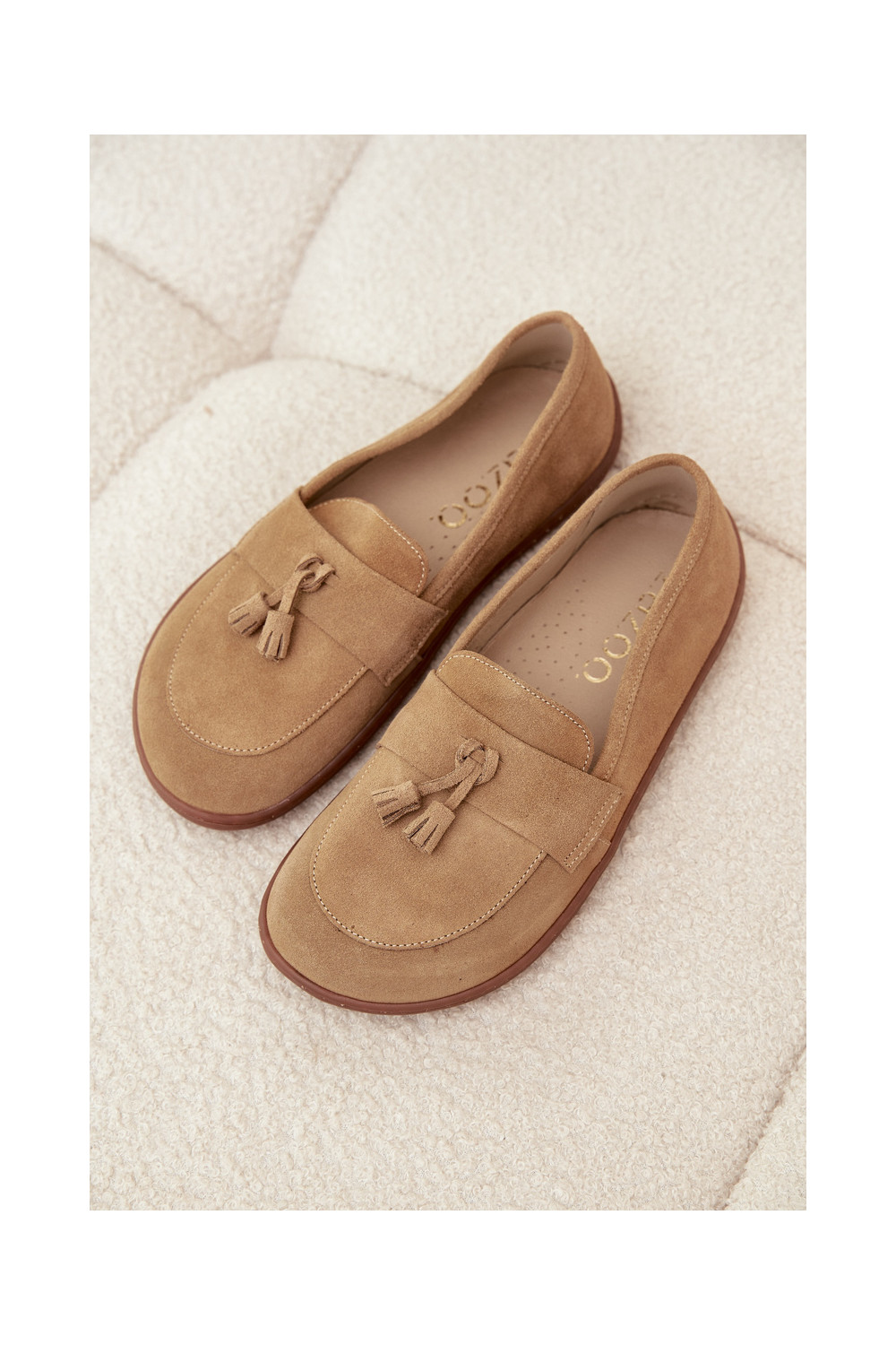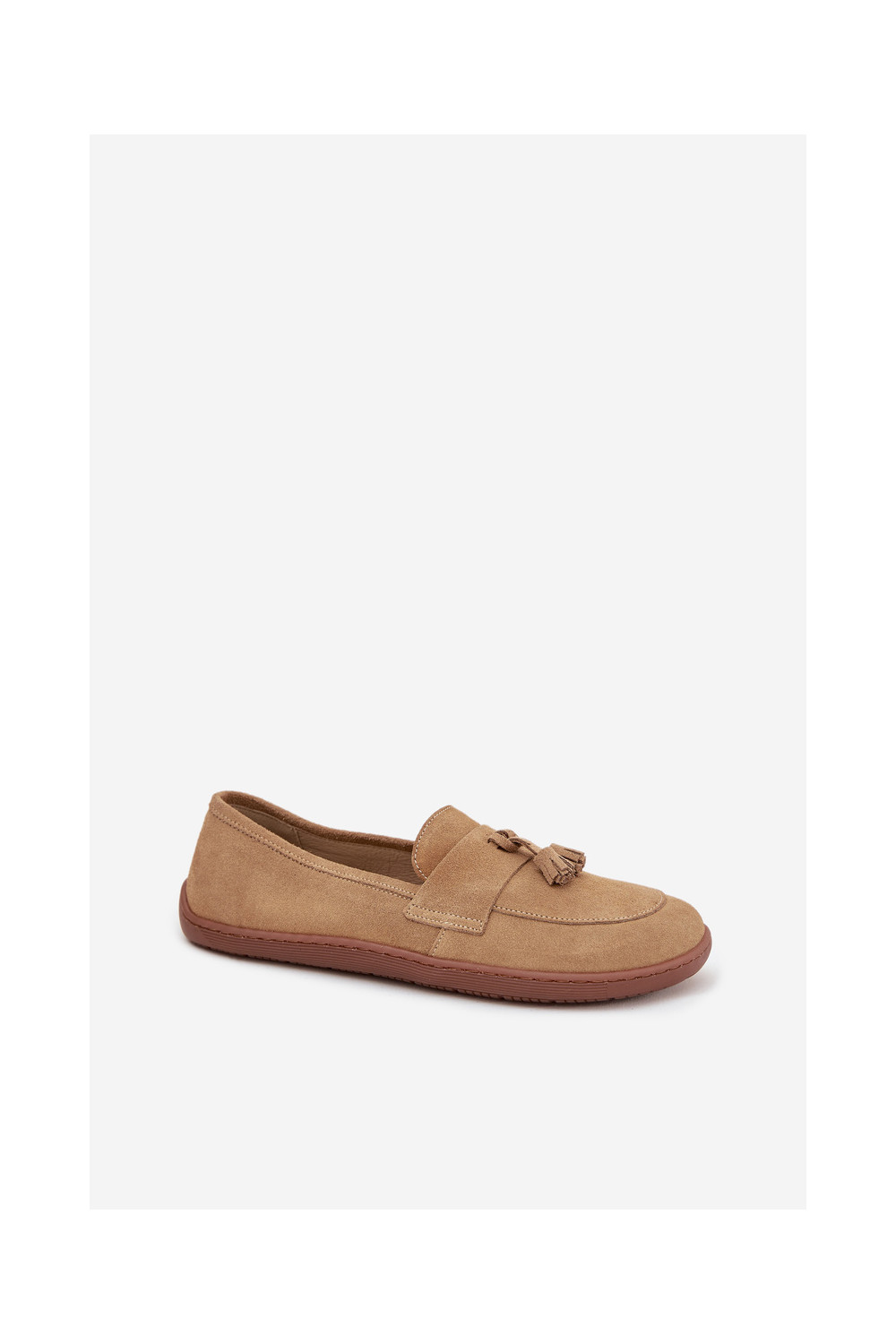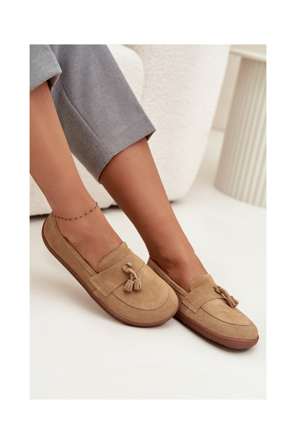 Odiniai zomšiniai mokasinai "Barefoot" tipo Zazoo 322 smėlio spalvos
