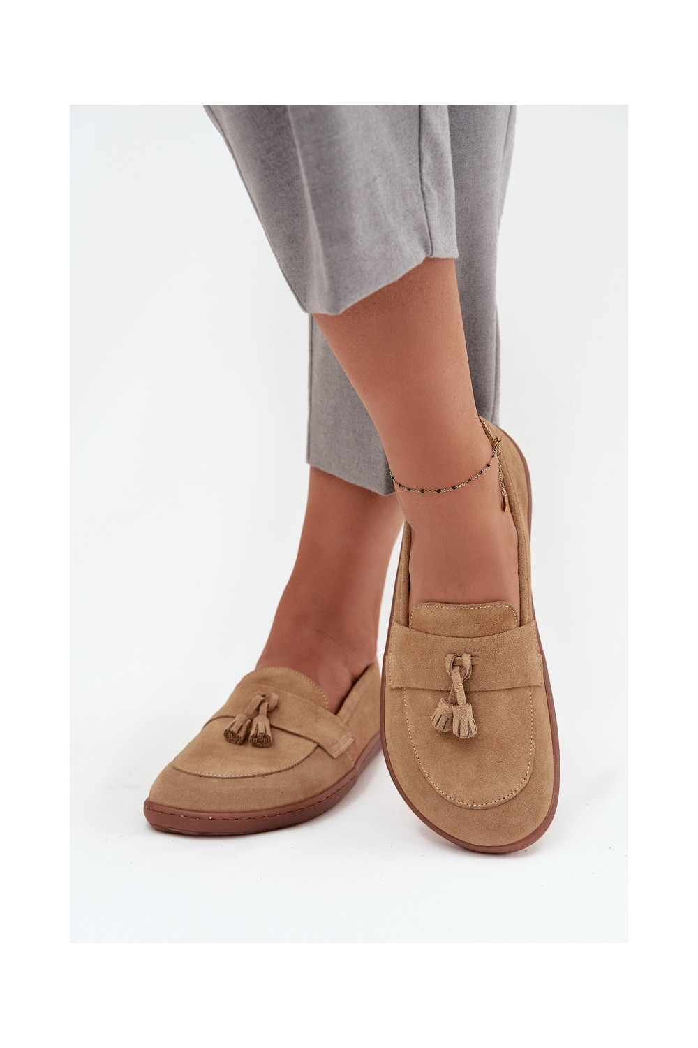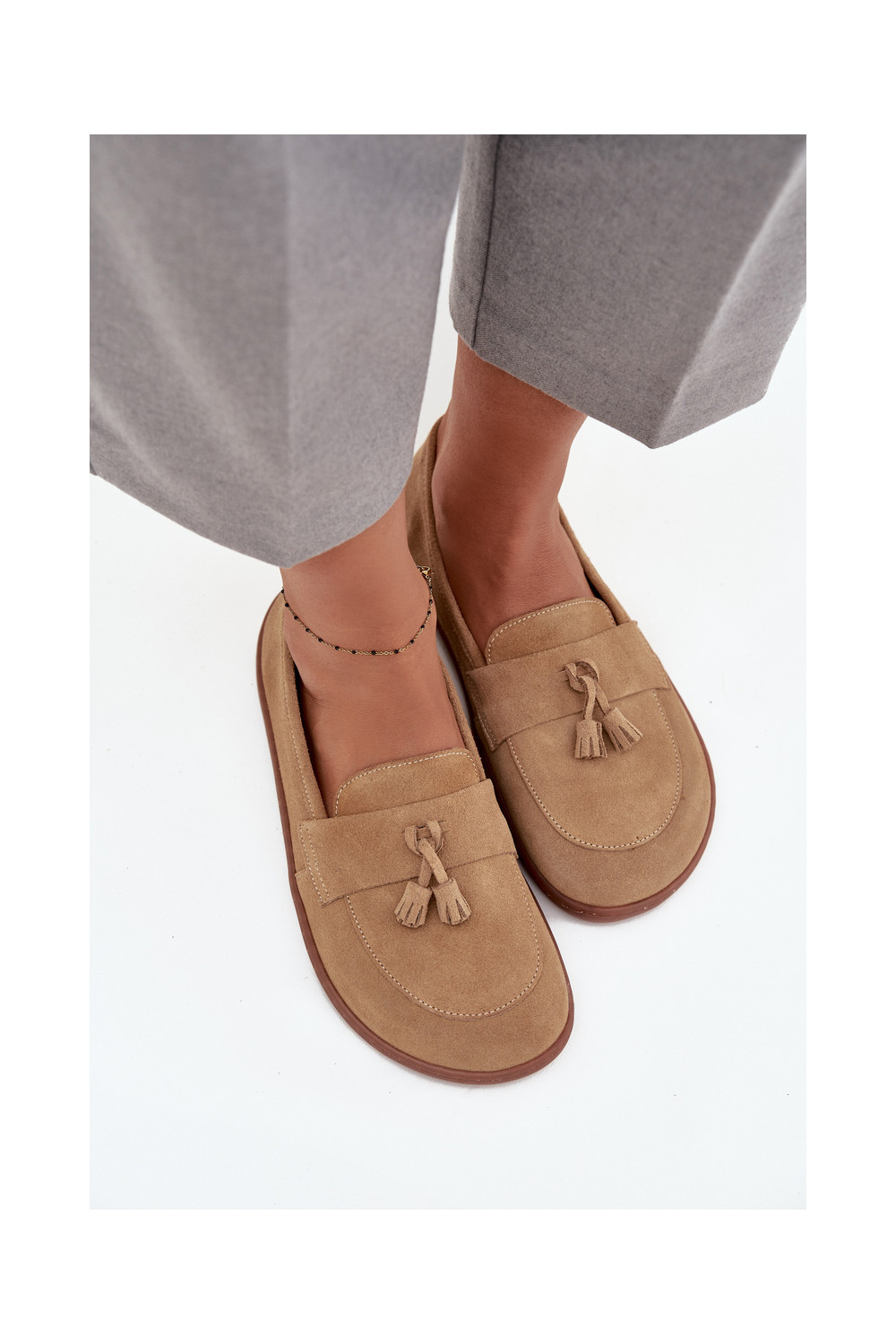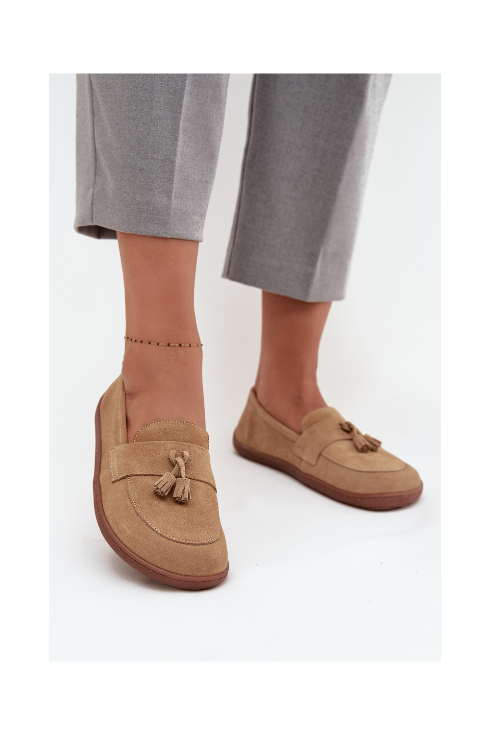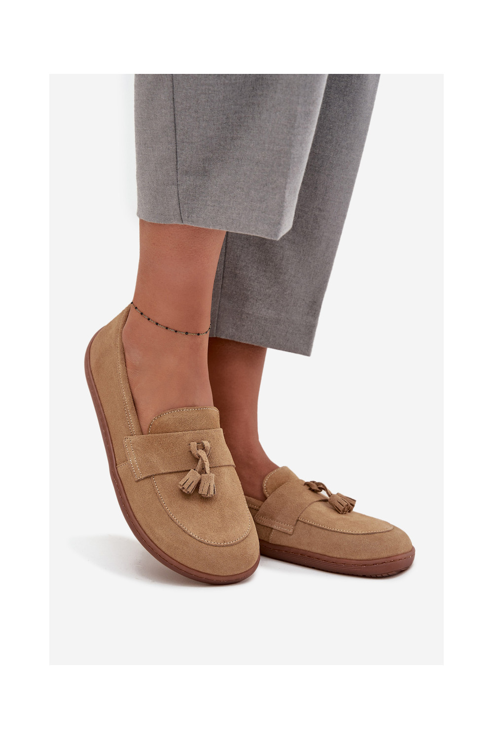 Odiniai zomšiniai mokasinai "Barefoot" tipo Zazoo 322 smėlio spalvos