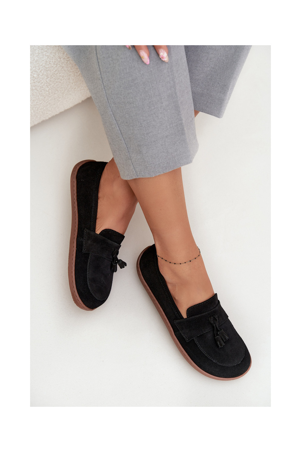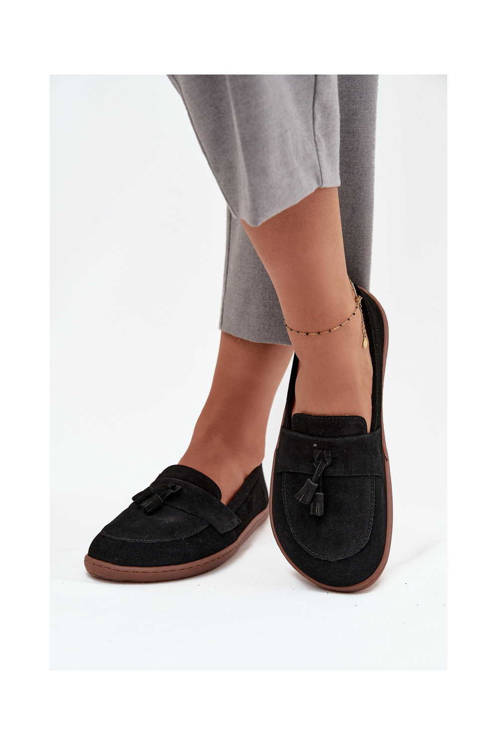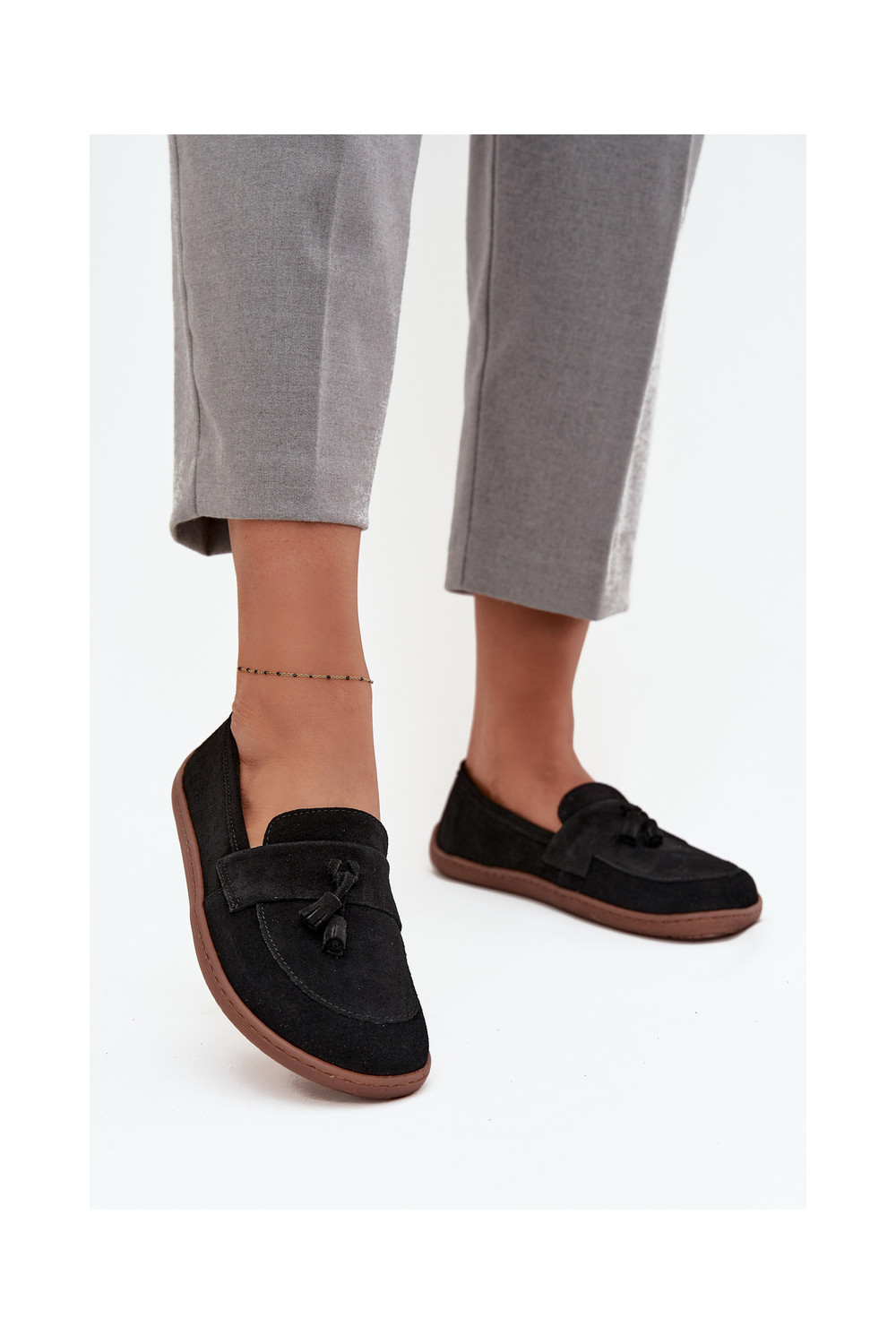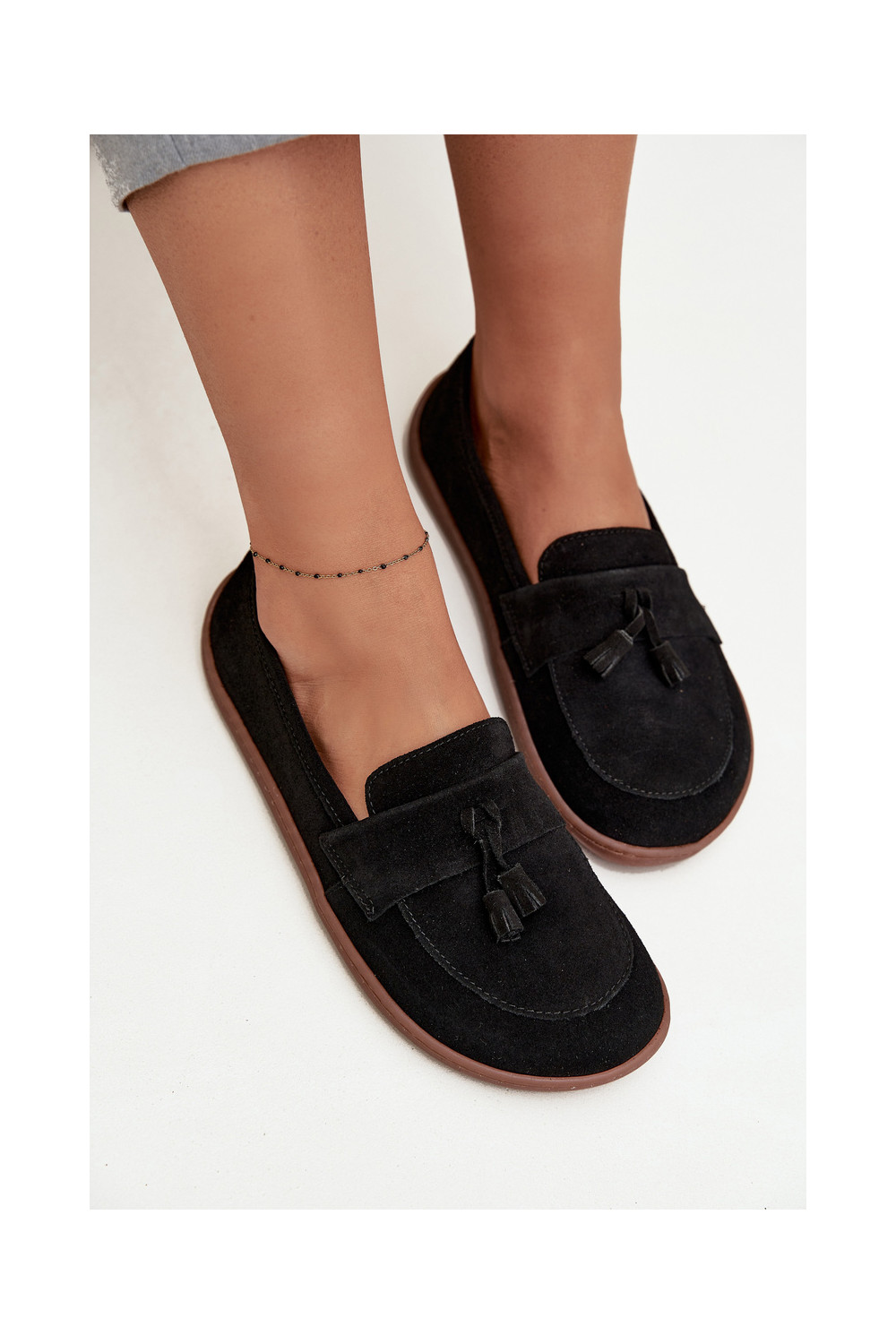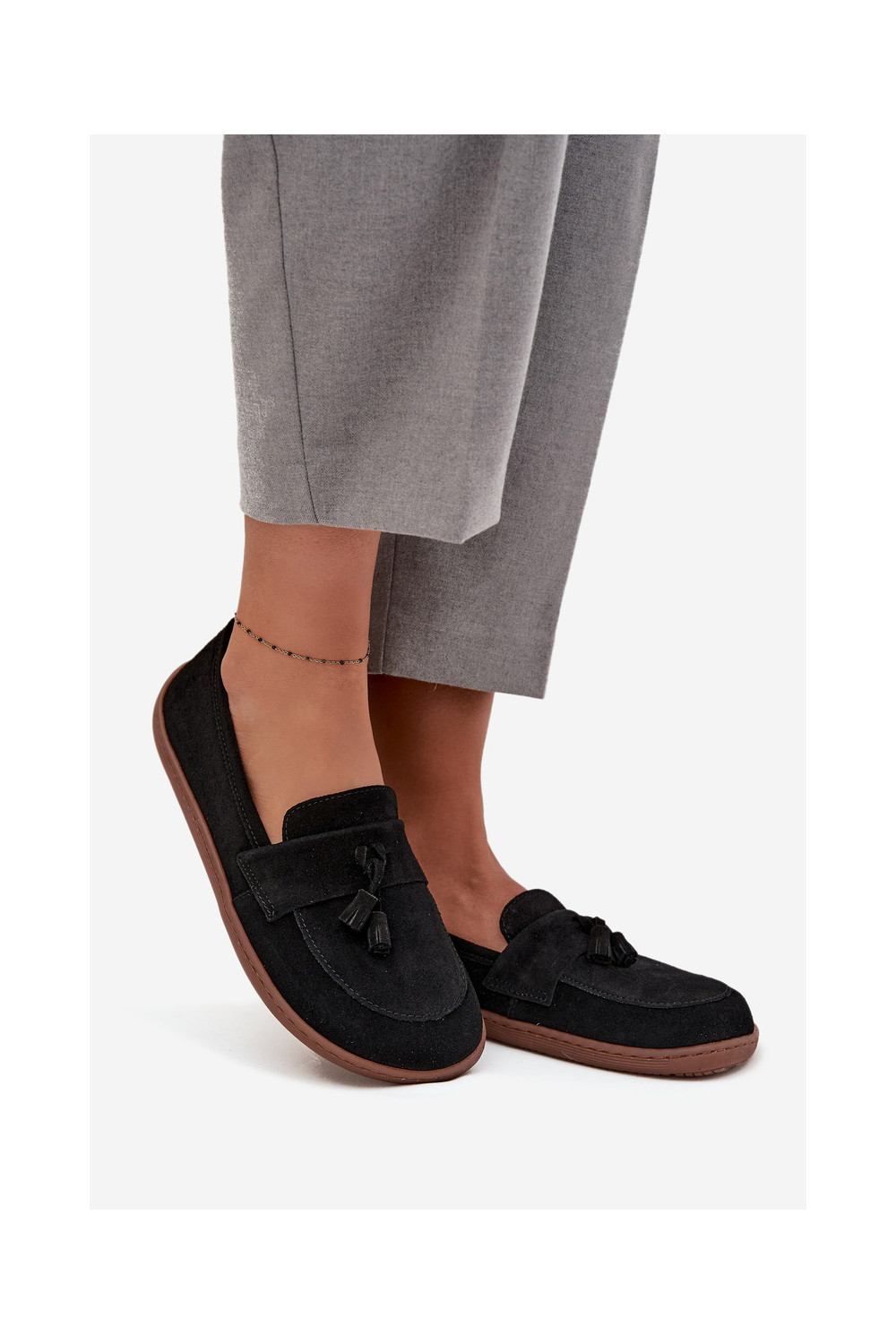 Odiniai zomšiniai mokasinai "Barefoot" tipo Zazoo 322 juodos spalvos