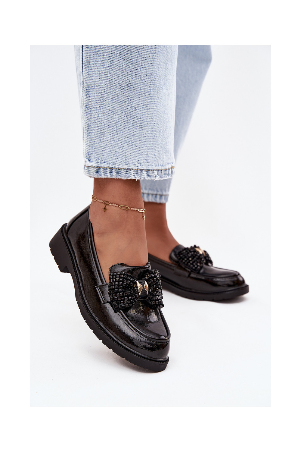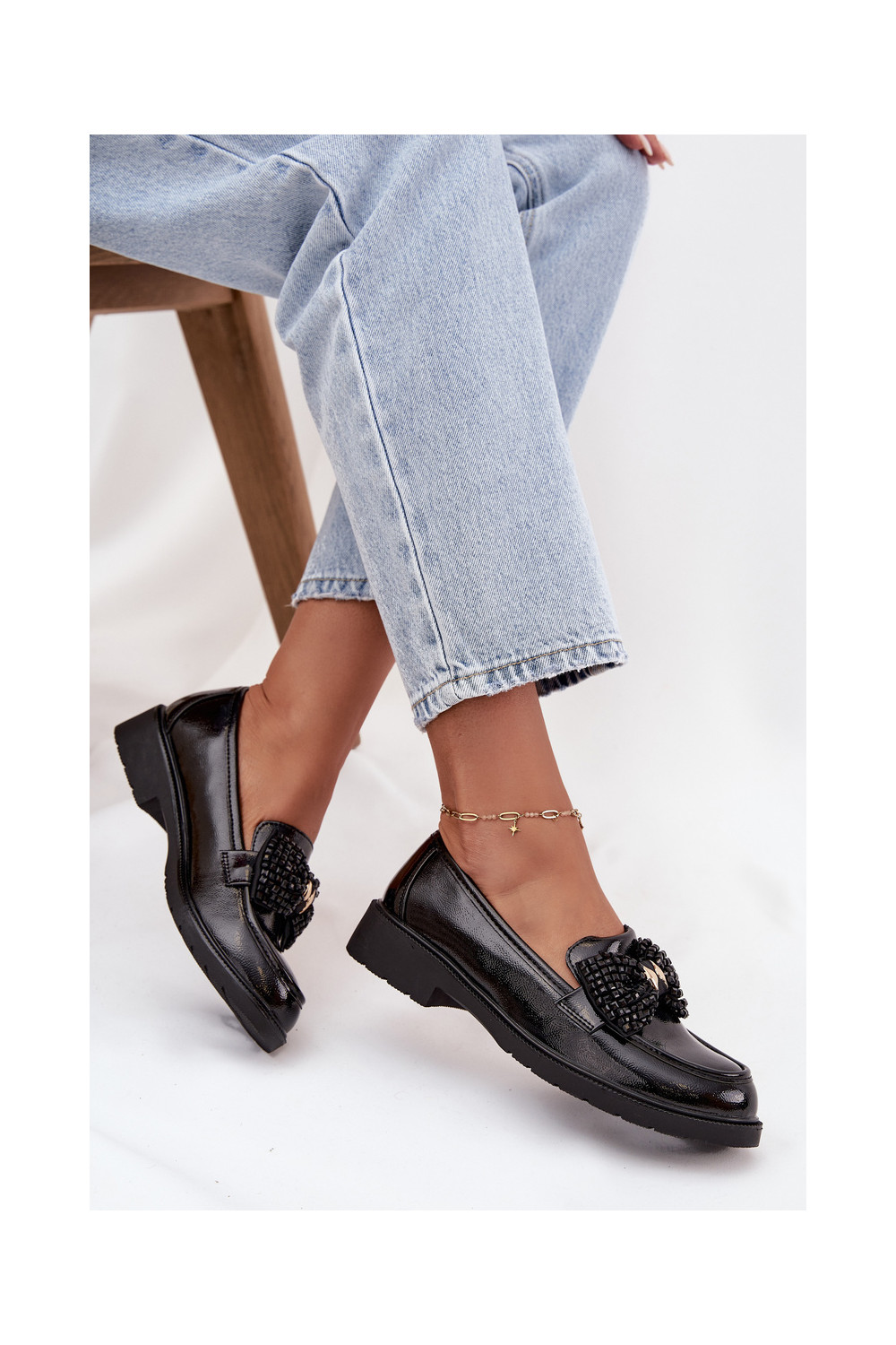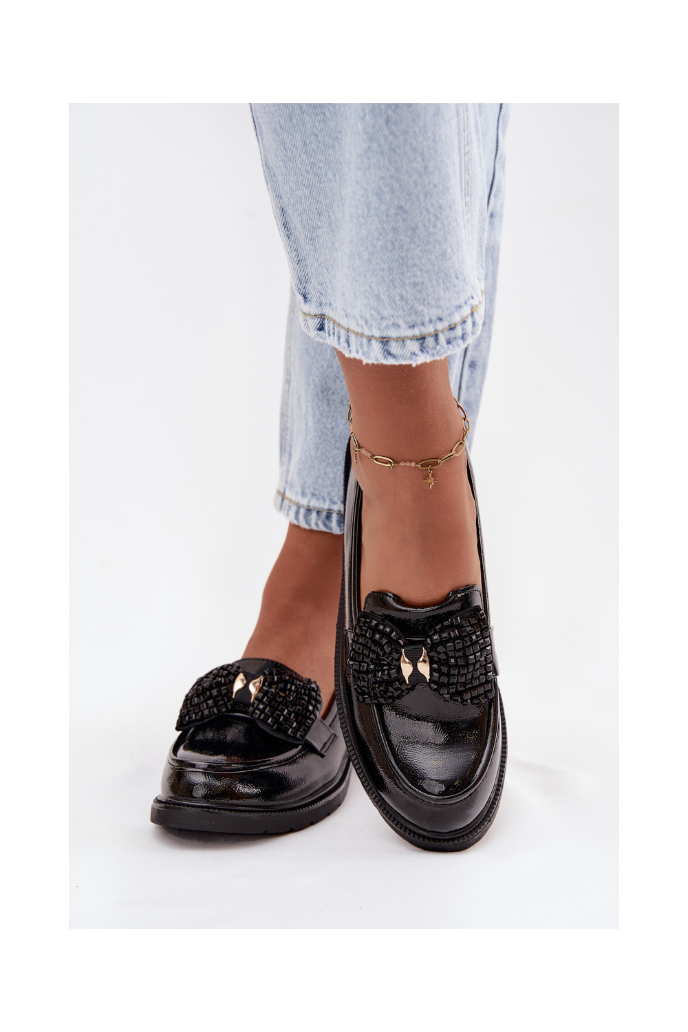 Lakuoti mokasinai Moteriškas su kaspinais S.Barski HY52-319A juodos spalvos