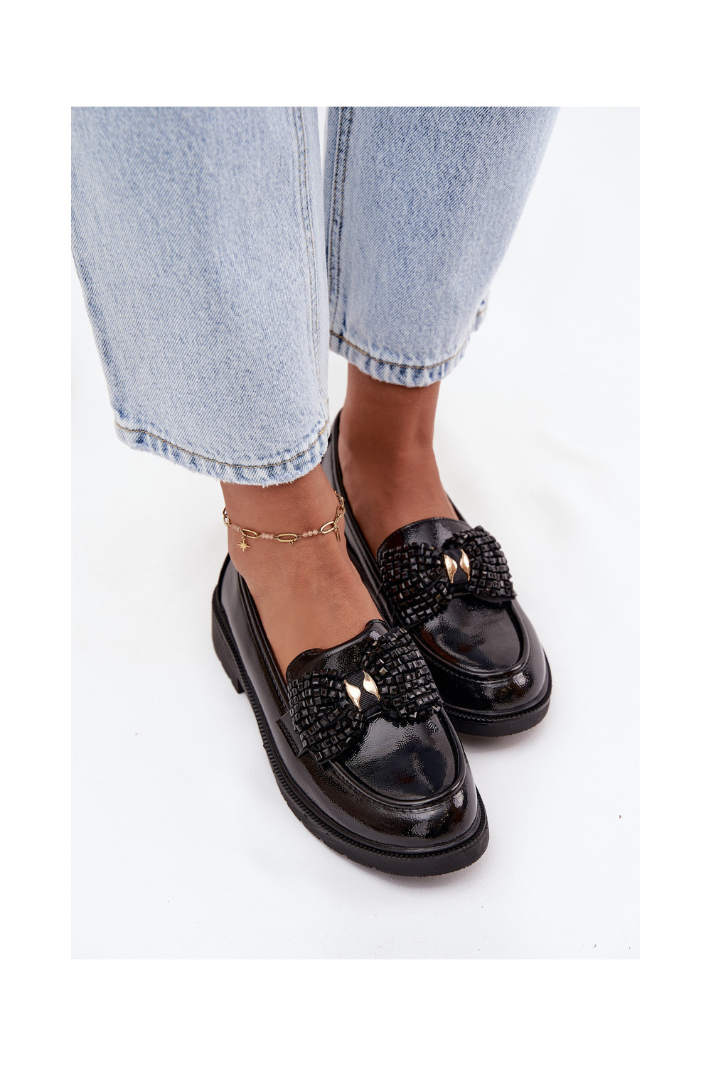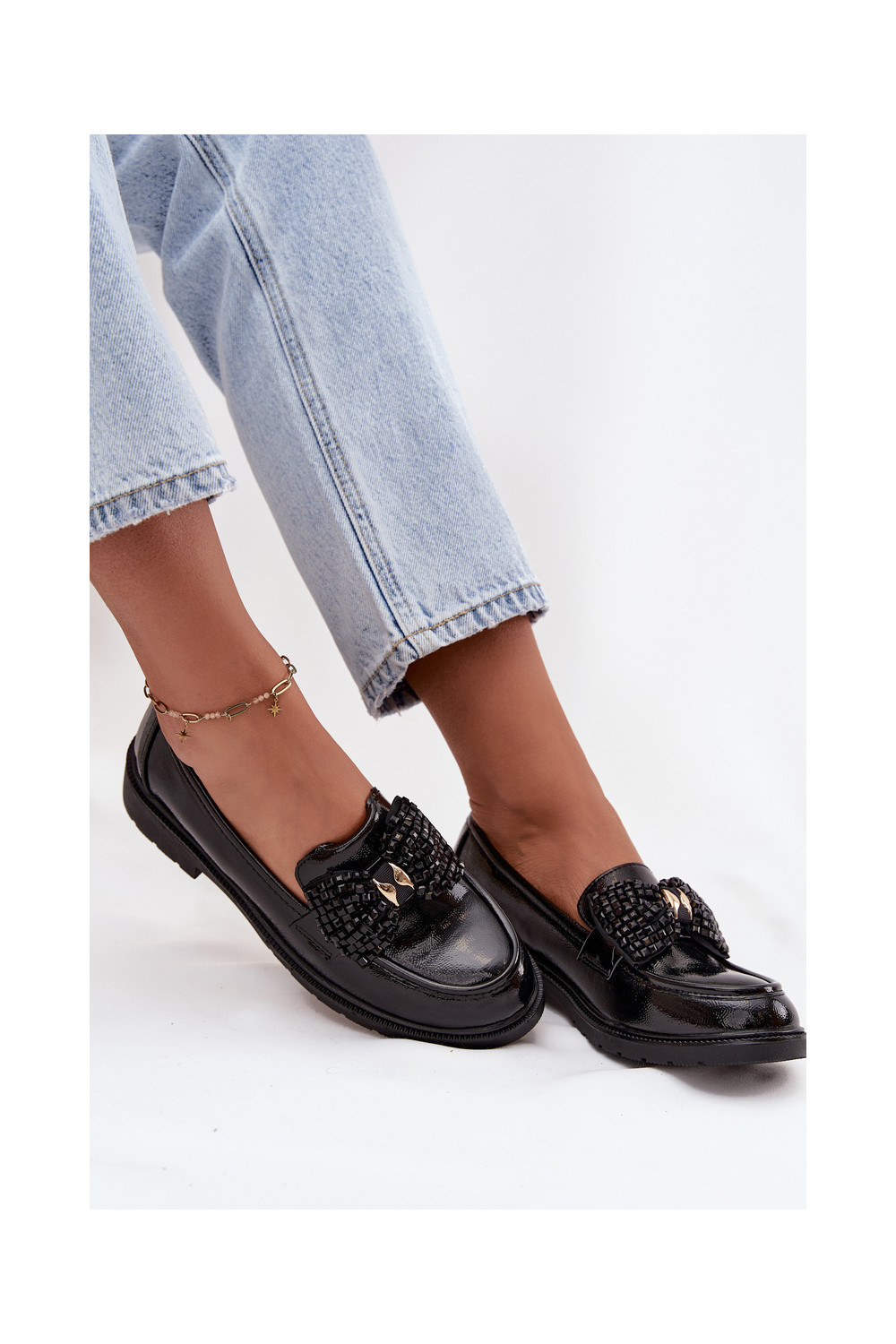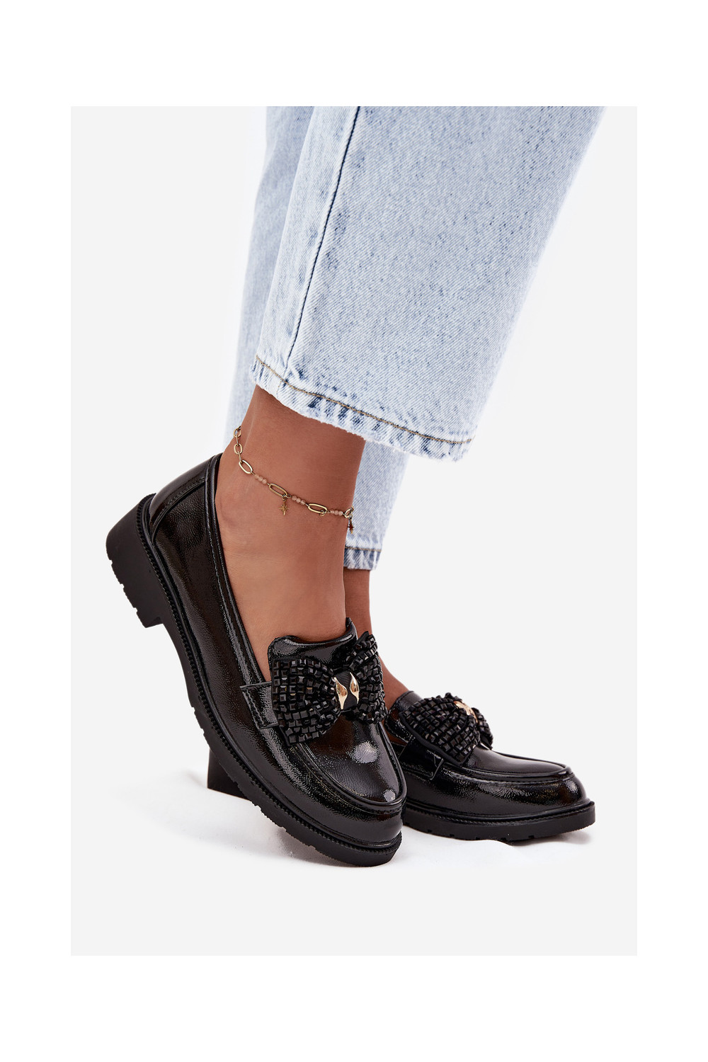 Lakuoti mokasinai Moteriškas su kaspinais S.Barski HY52-319A juodos spalvos