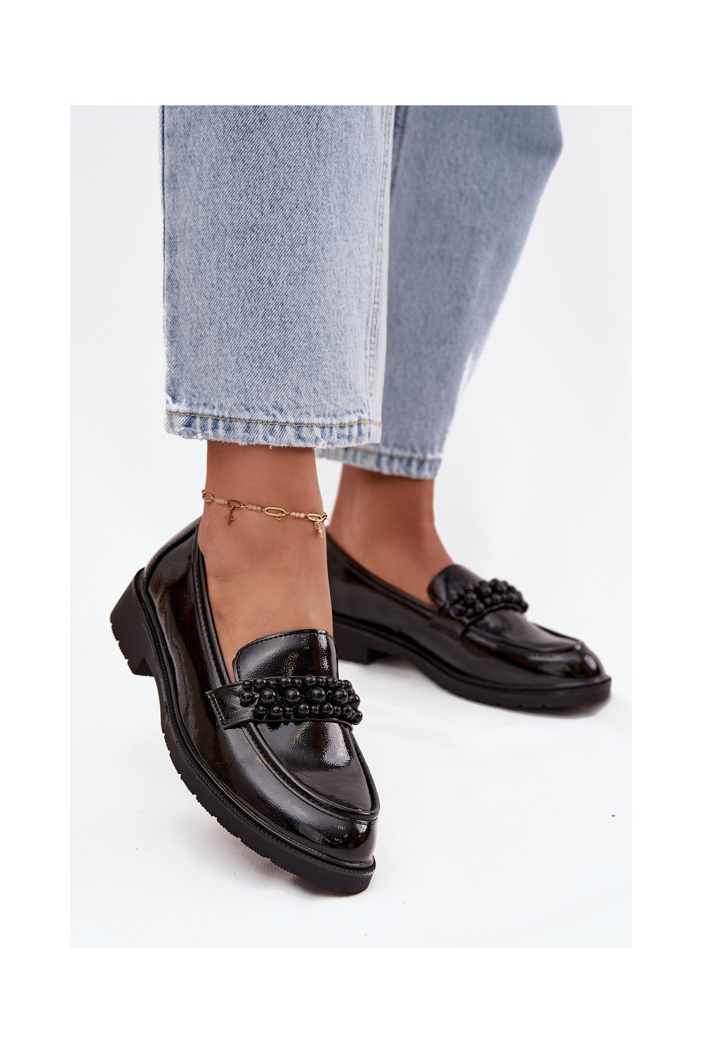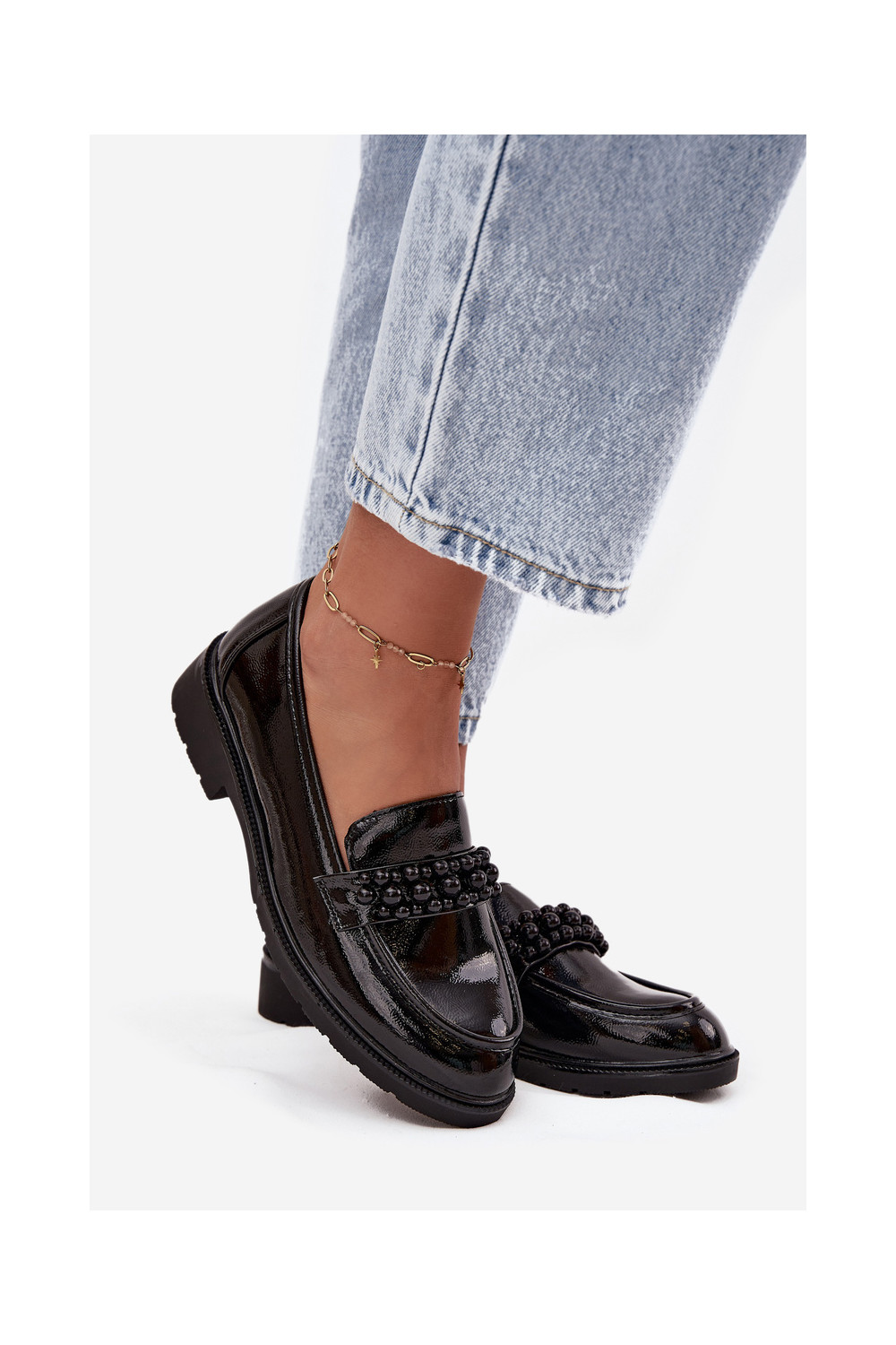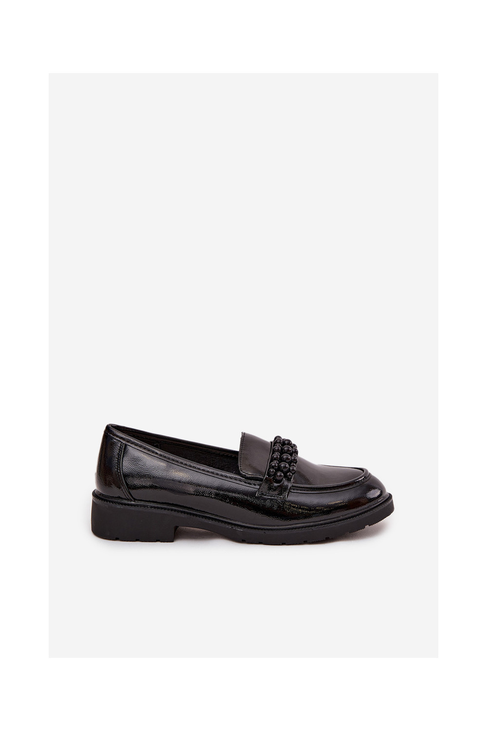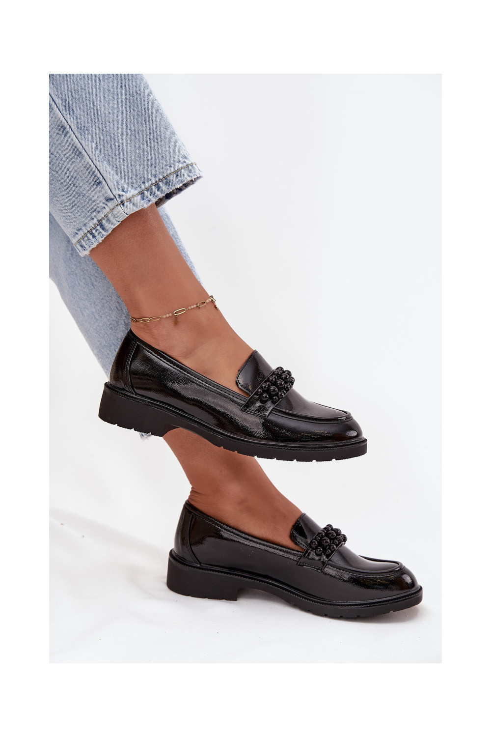 moteriški mokasinai su lako efektu su karoliukais S.Barski HY52-541 Juodos spalvos