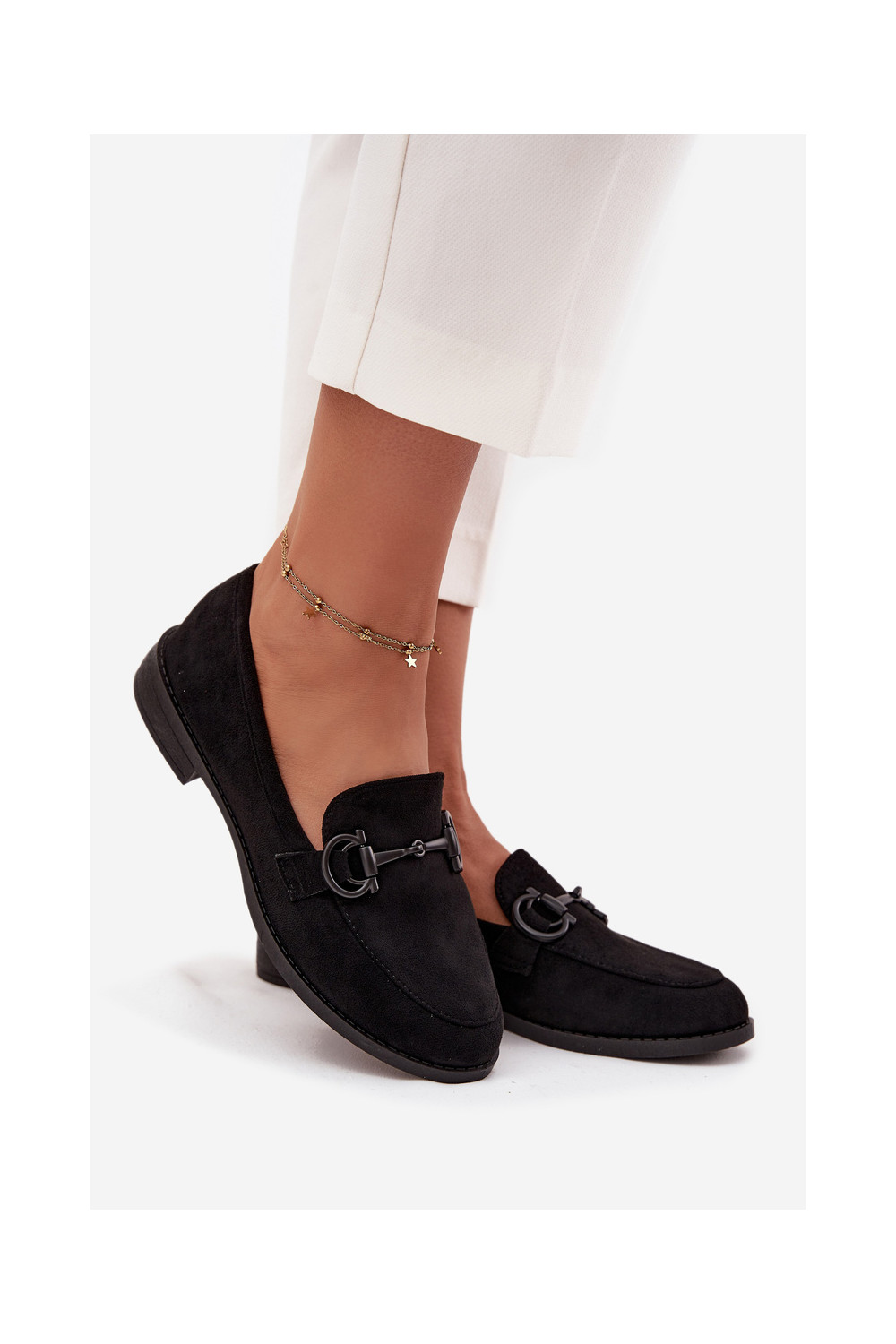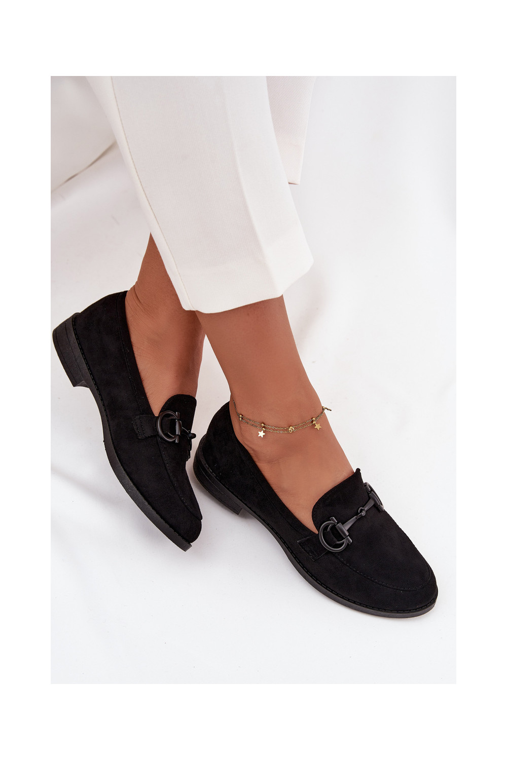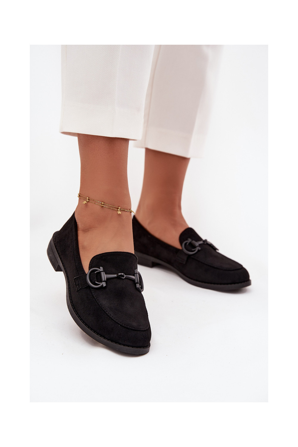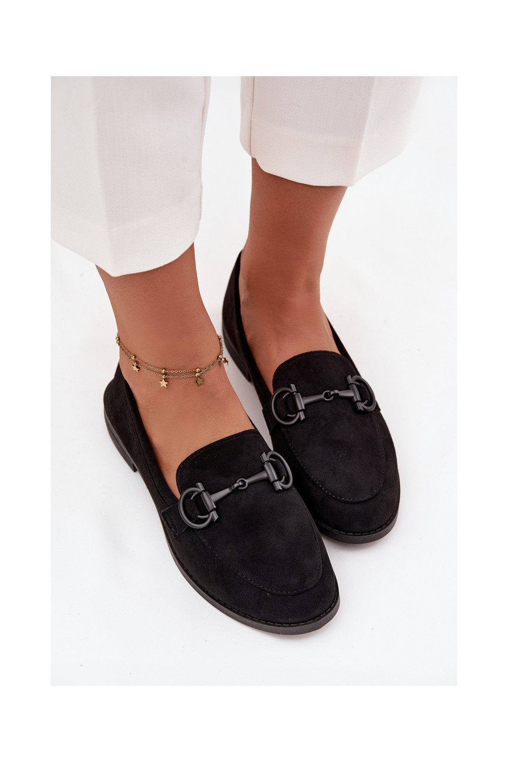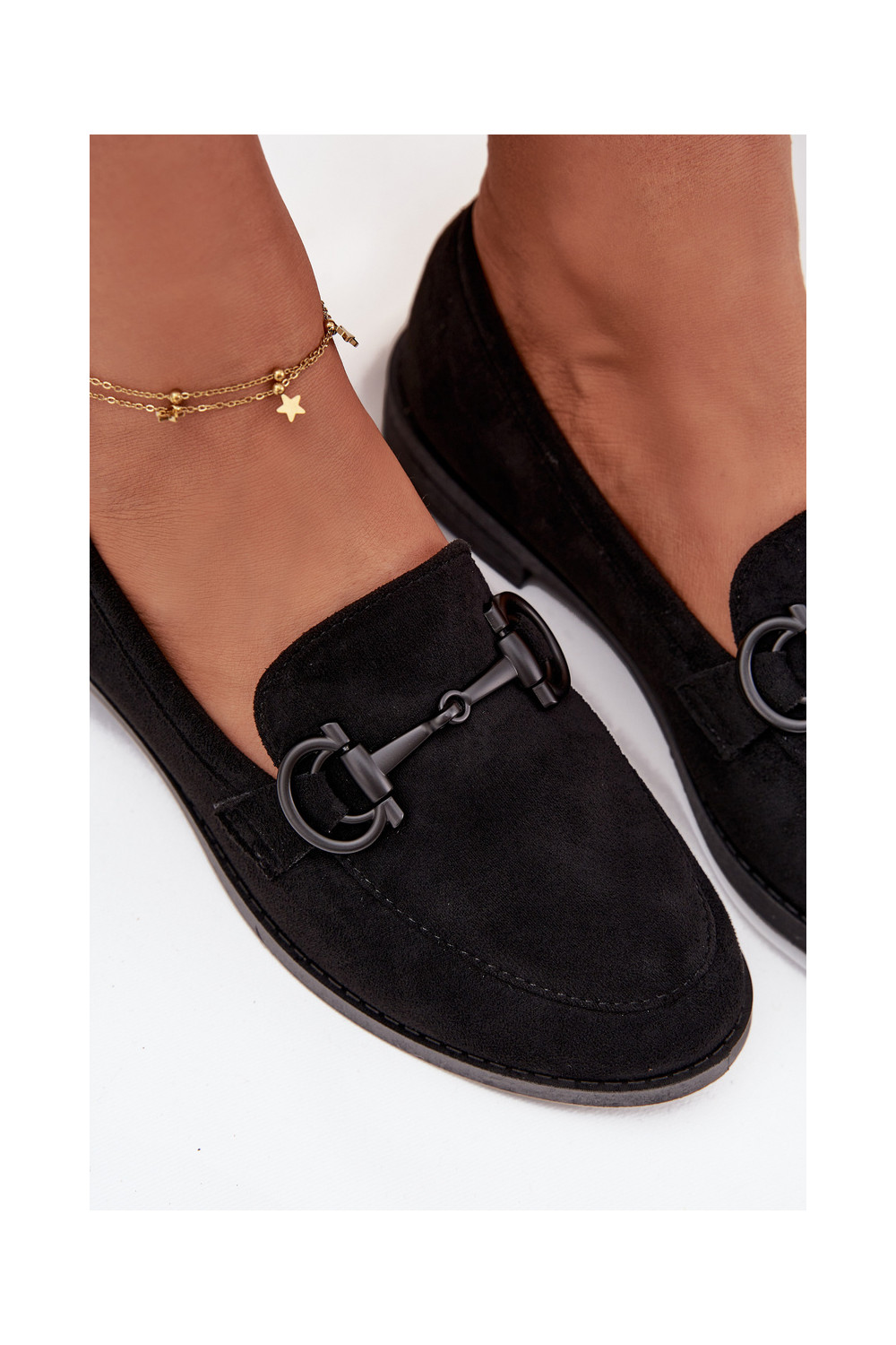 moteriški mokasinai Su puošniais Detalem iš eko zomšosoĮe juodos spalvos Ambria