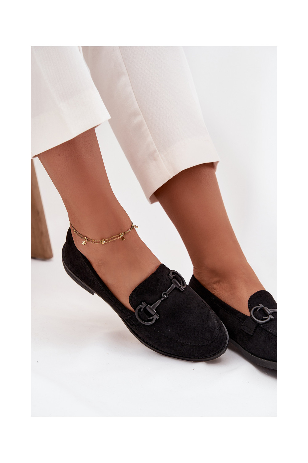 moteriški mokasinai  Detalem iš eko zomšosowe Juodos spalvos Ambria