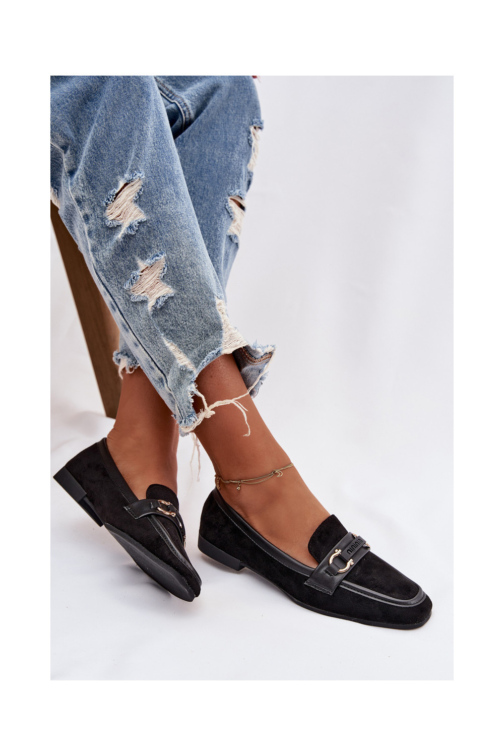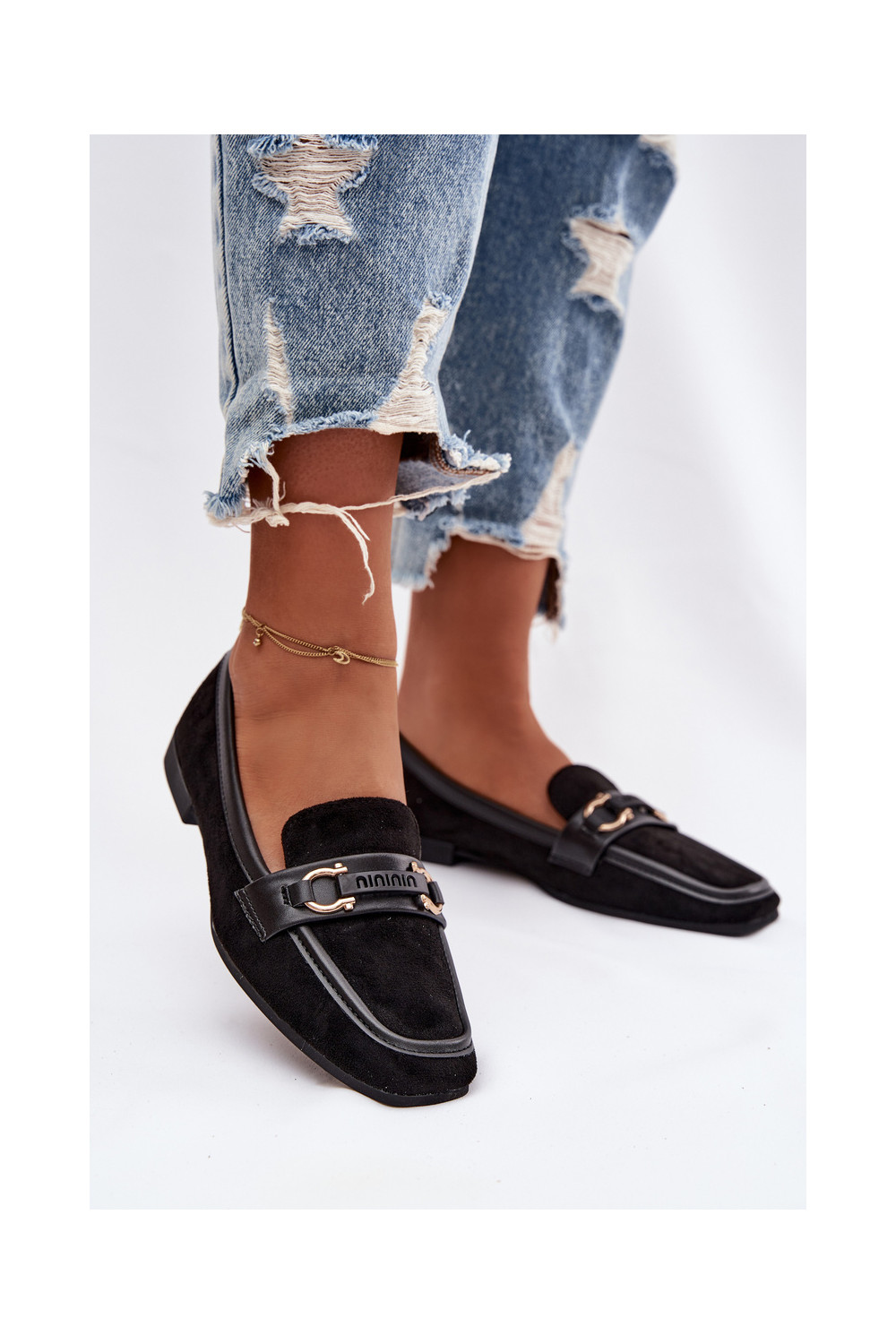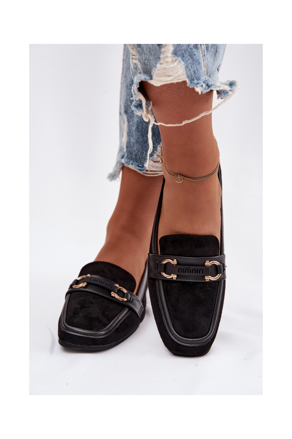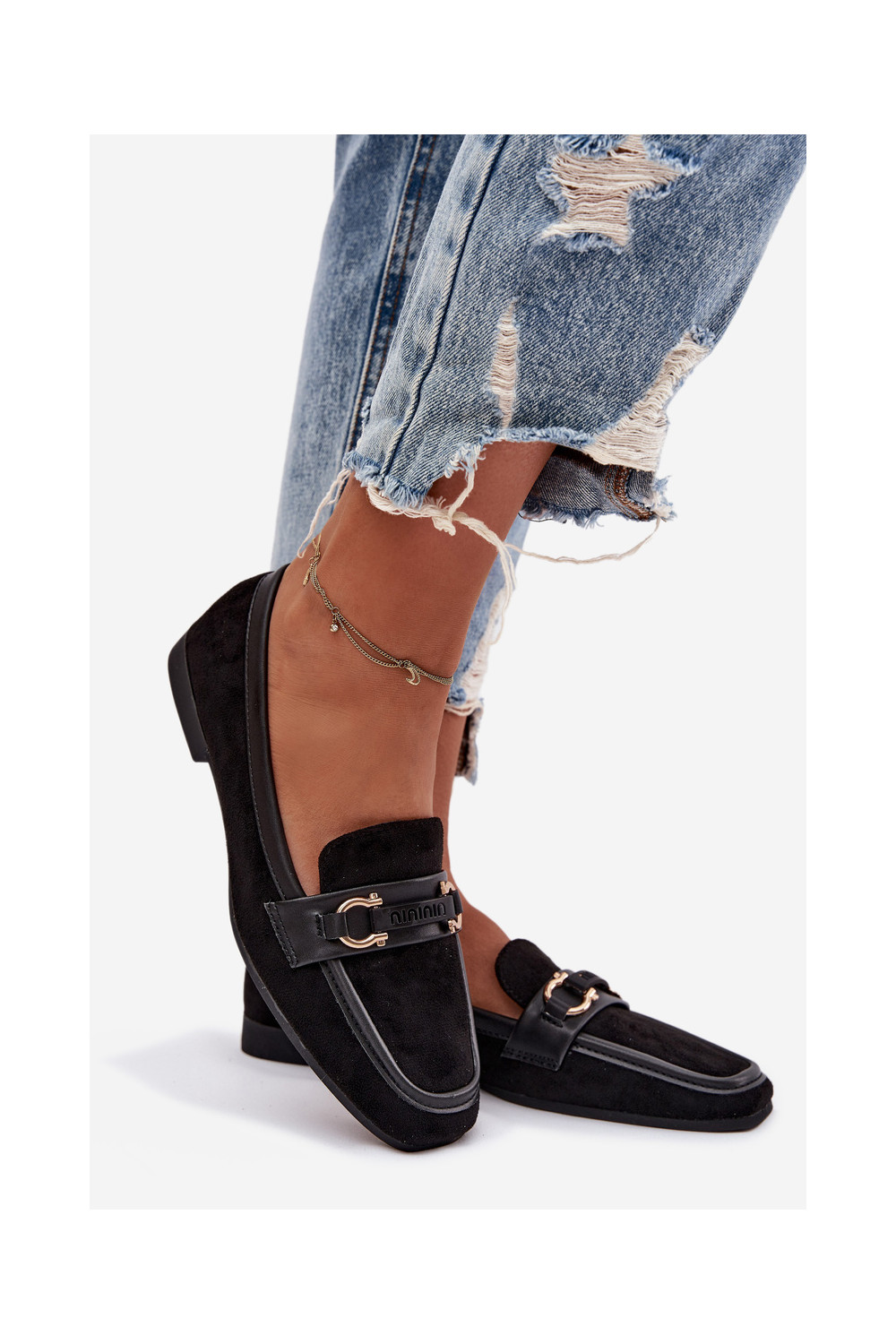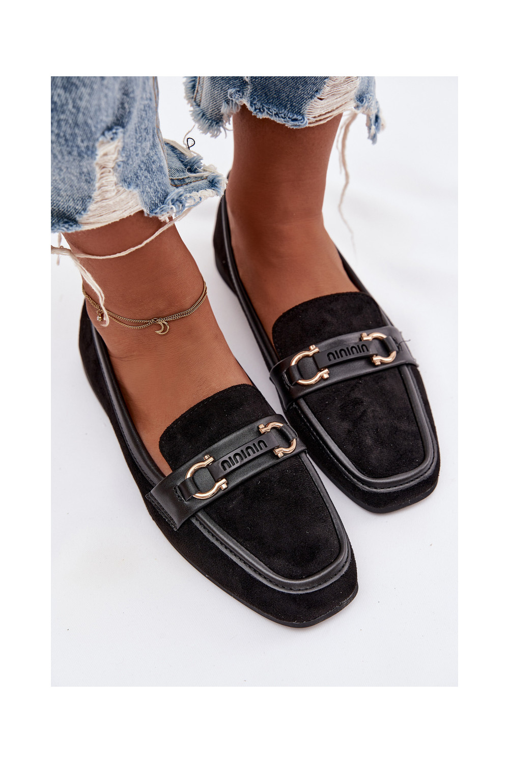 Mokasinai moteriški su puošniais elementais, juodos spalvos Evelora