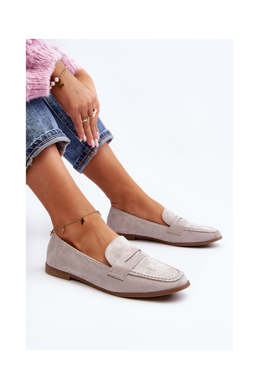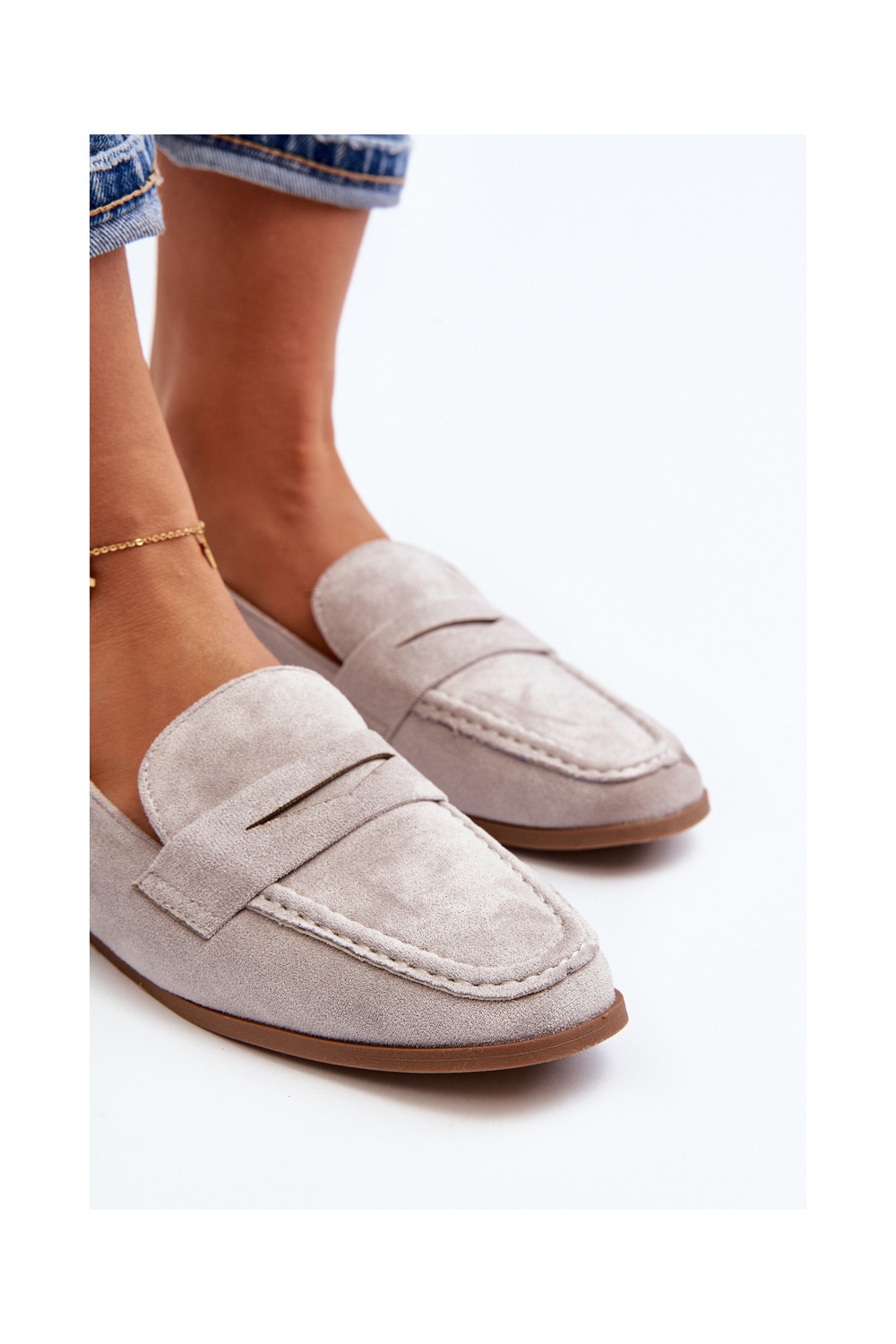 Pilkos spalvos moteriški klasikinio modelio mokasinai "Olevin"