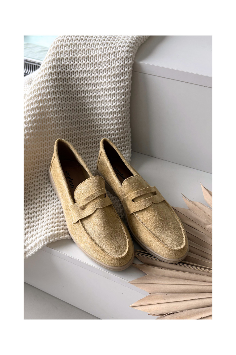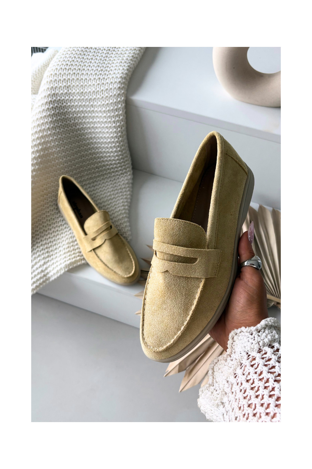 moteriški mokasinai Z iš eko zomšosu geltonos spalvos Renelia
