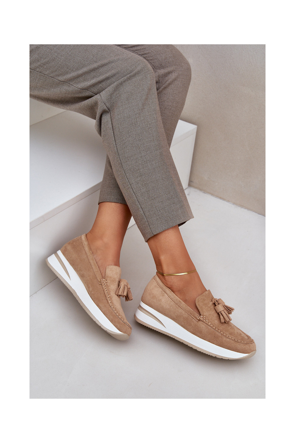 Mokasinai Įjungta Subtilusm Koturnie iš eko zomšosoĮe smėlio spalvos Challavia