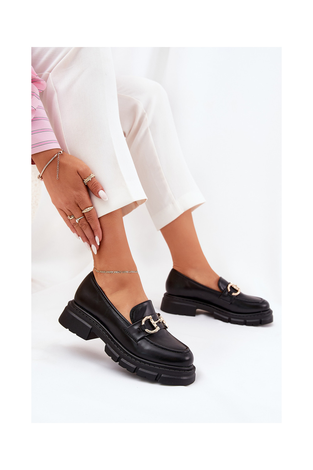 moteriški mokasinai Eko Oda Ze aukso spalvosm Detalem juodos spalvos Ravalissea