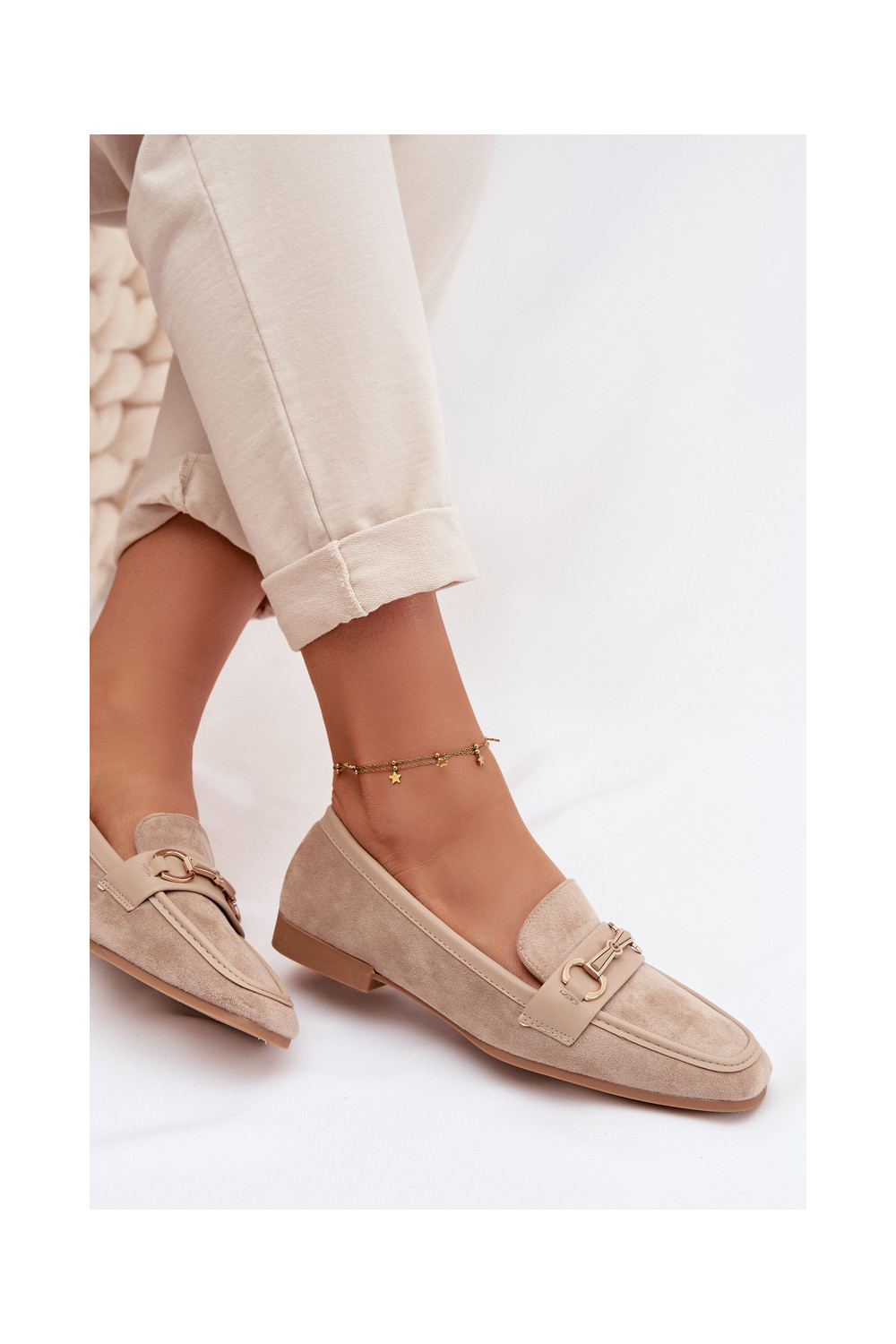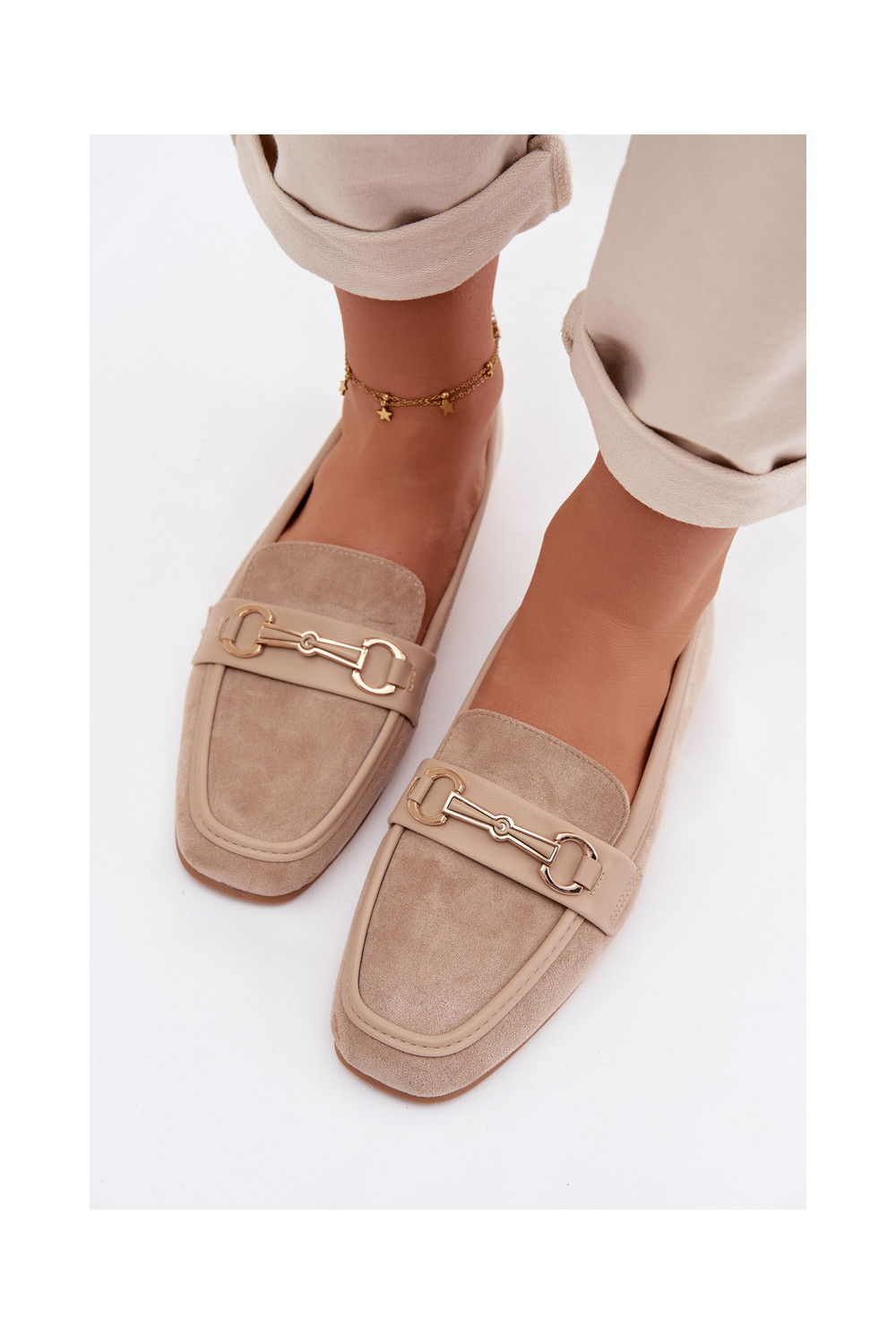 Mokasinai moteriški mokasinai su ornamentais smėlio spalvos Palerina