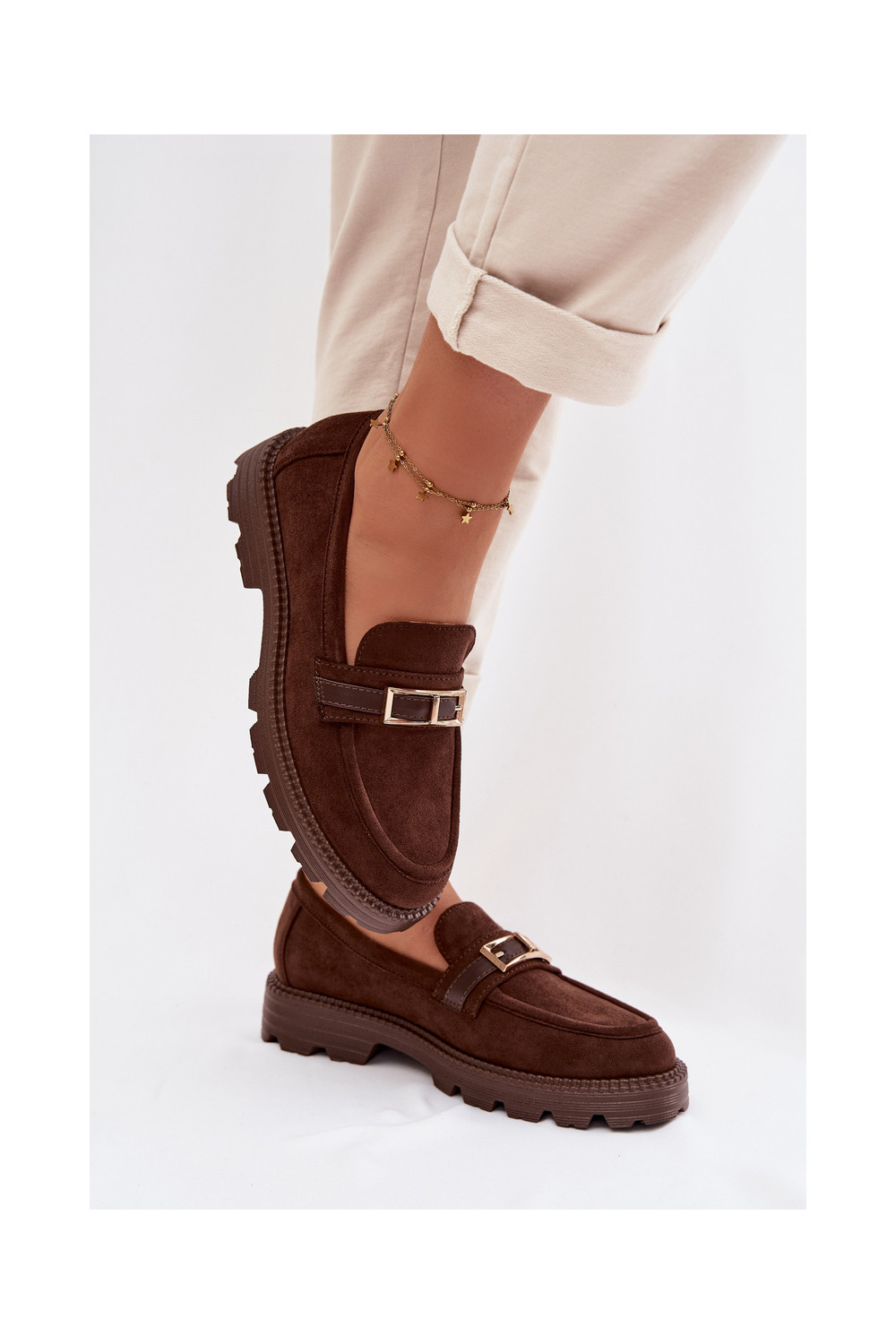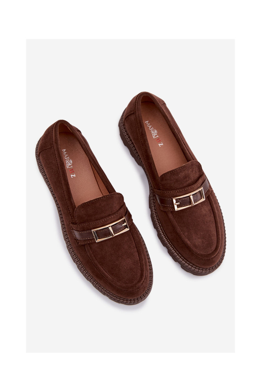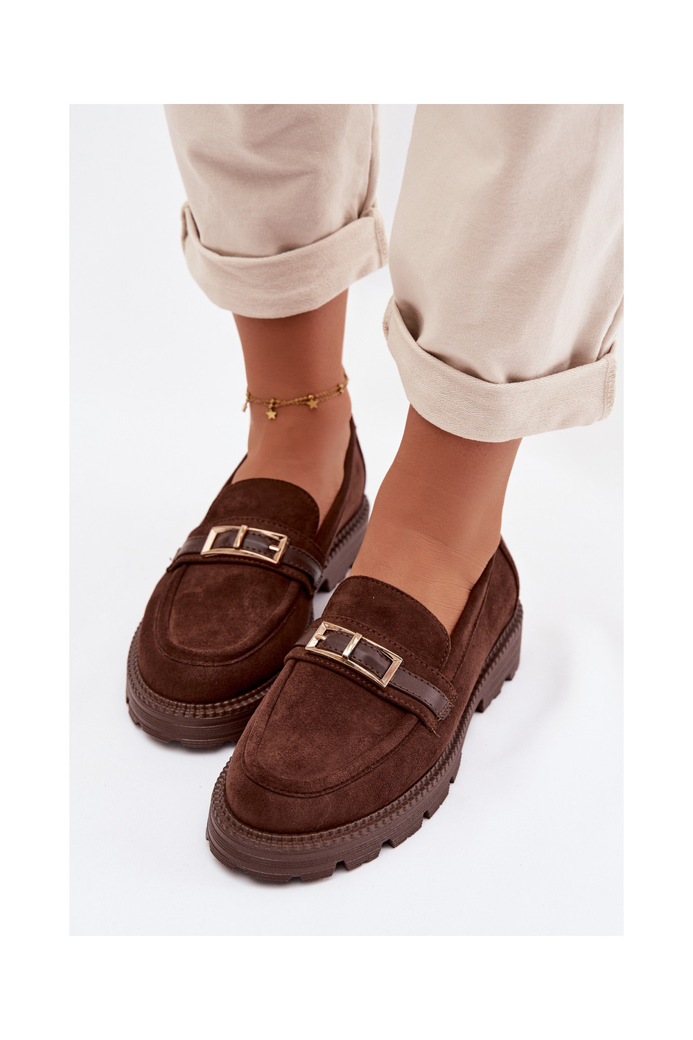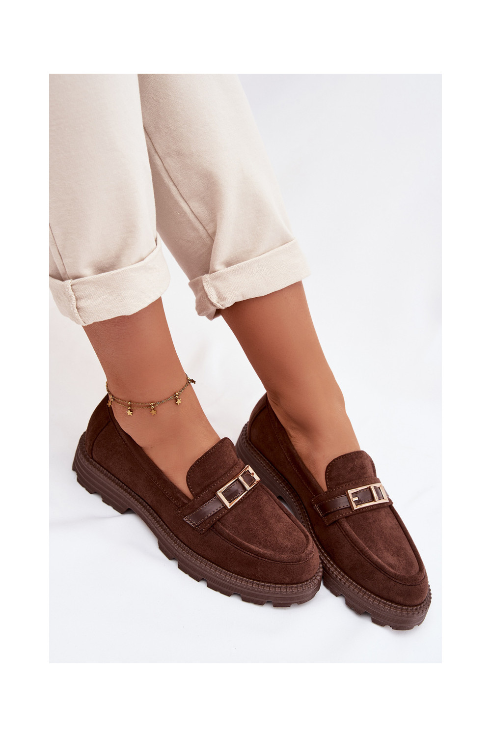moteriški mokasinai su aukso spalvos sagtimis Czekoladowe Mirelva