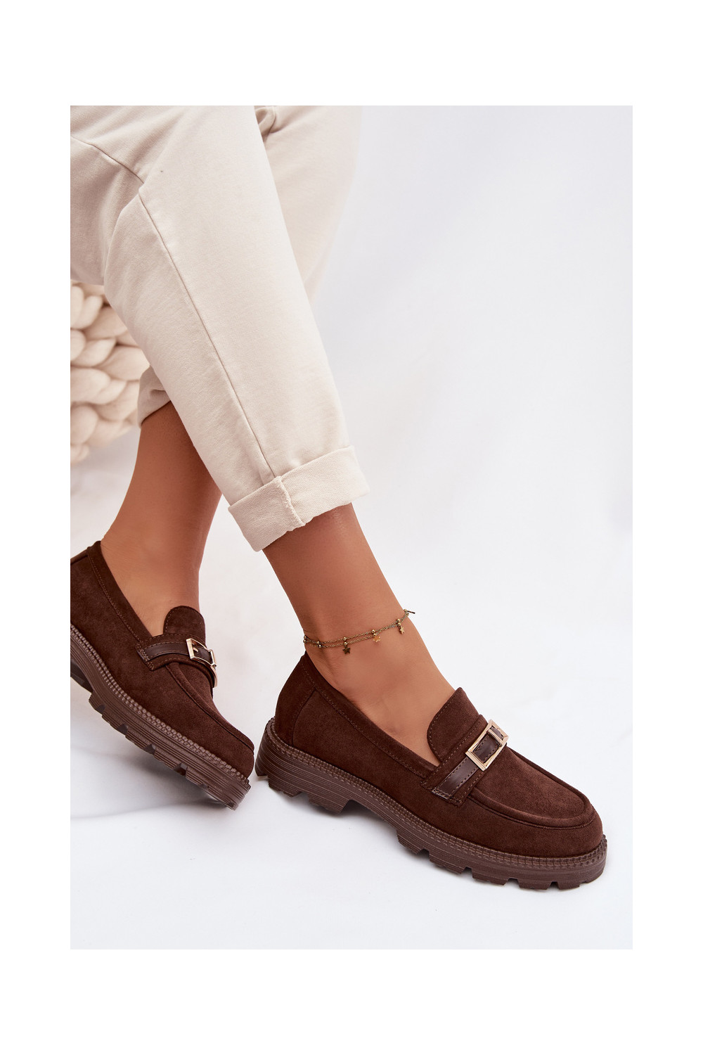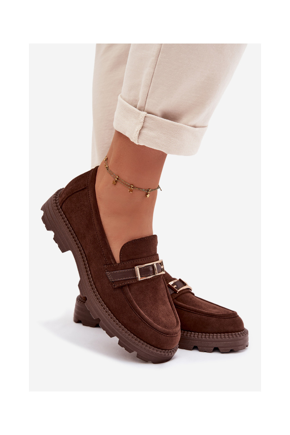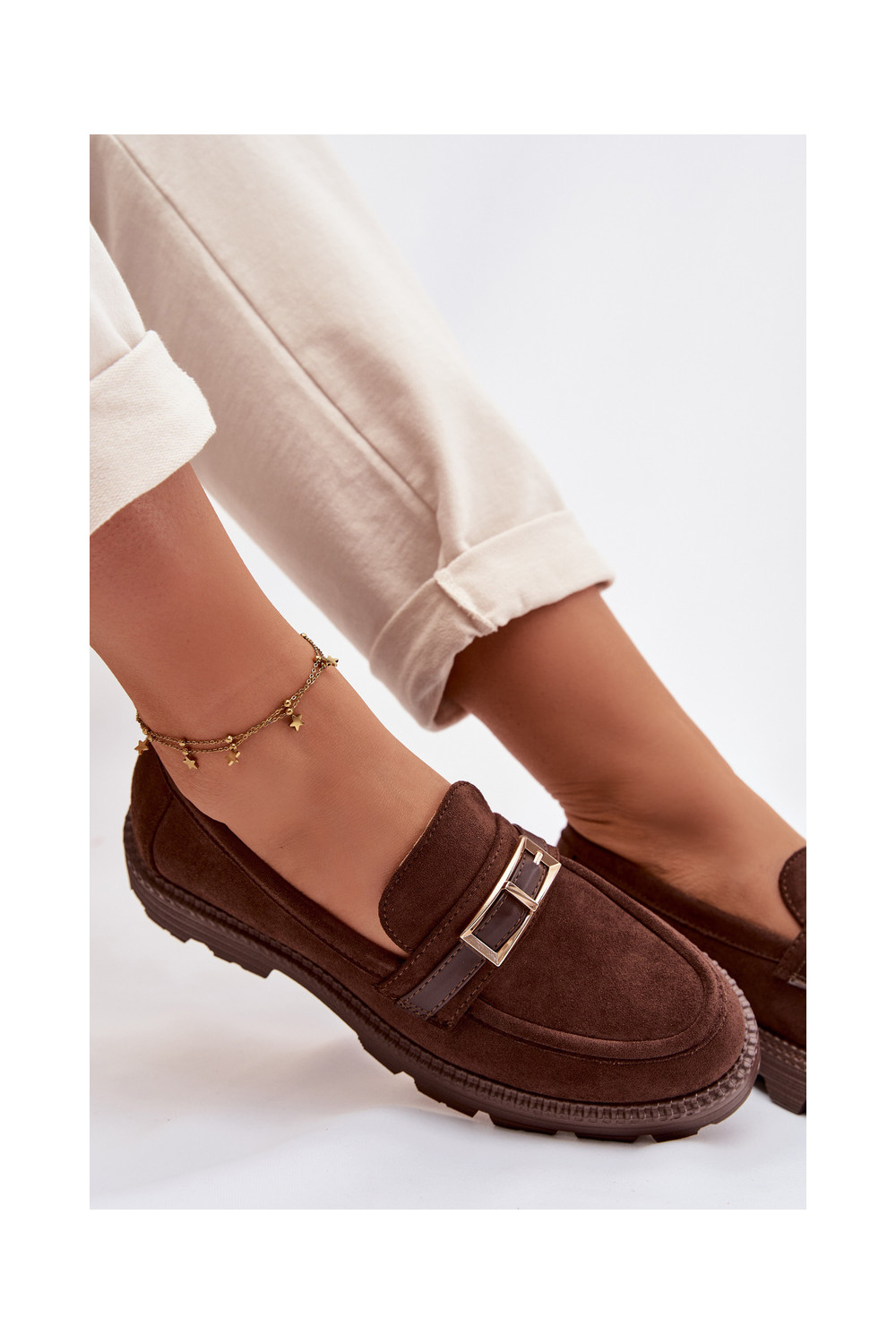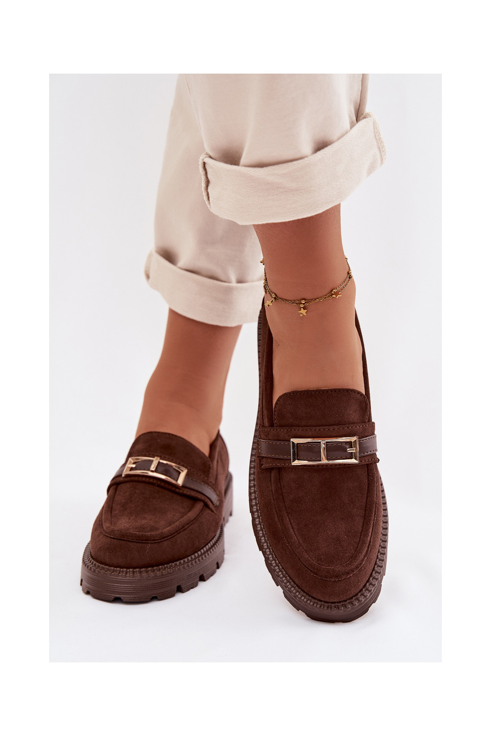 moteriški mokasinai su aukso spalvos sagtimis Czekoladowe Mirelva