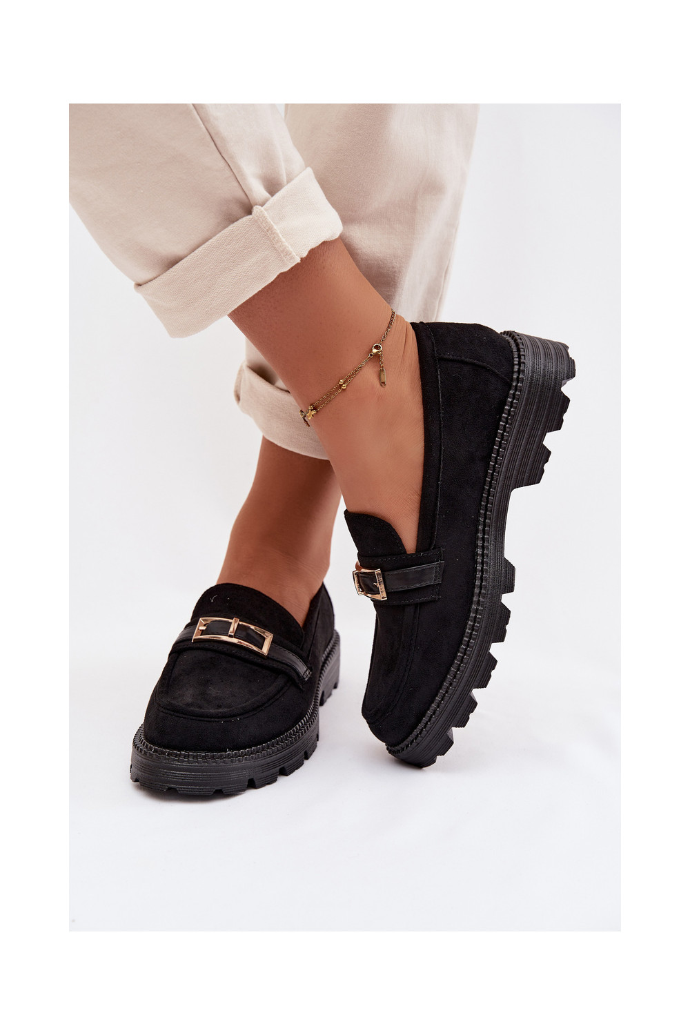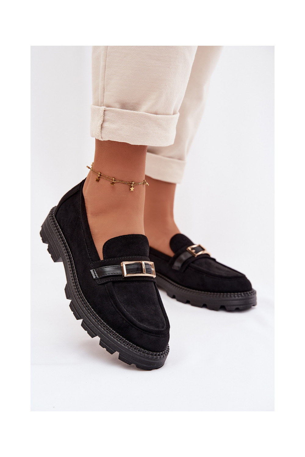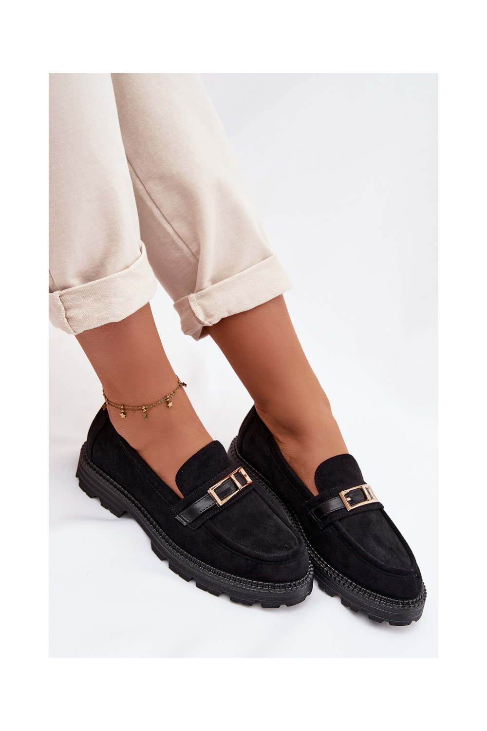 moteriški mokasinai su aukso spalvos sagtimis Juodos spalvos Mirelva