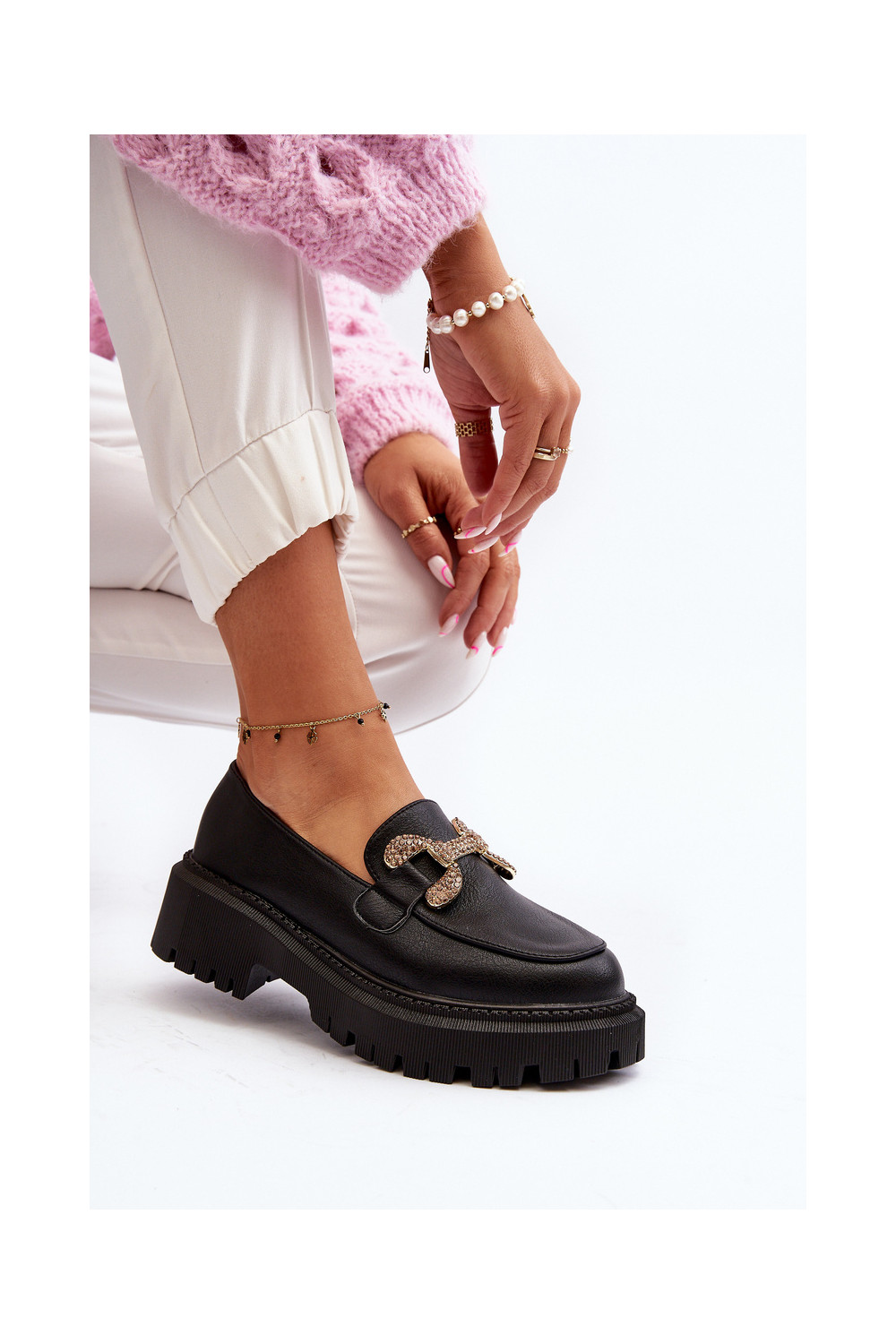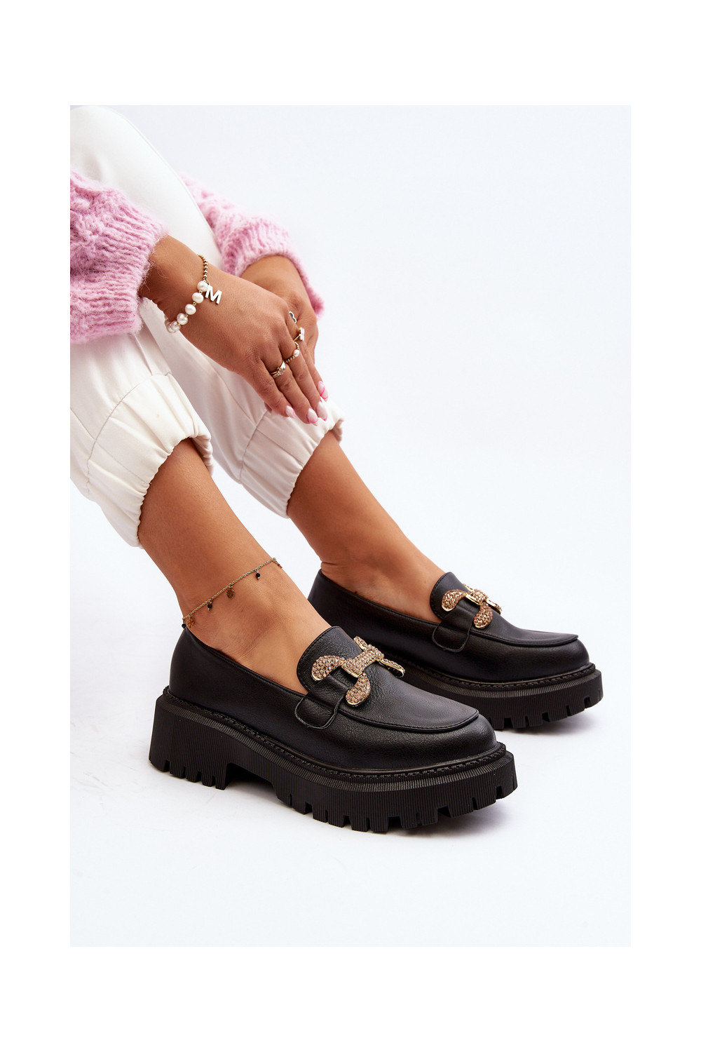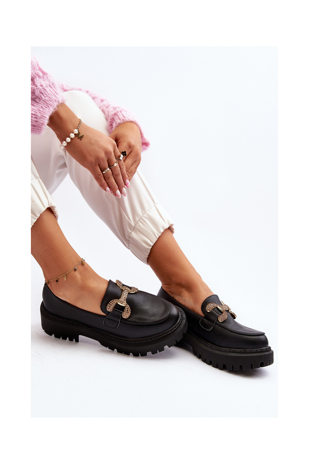 moteriški mokasinai su ornamentais juodos spalvos Gargi