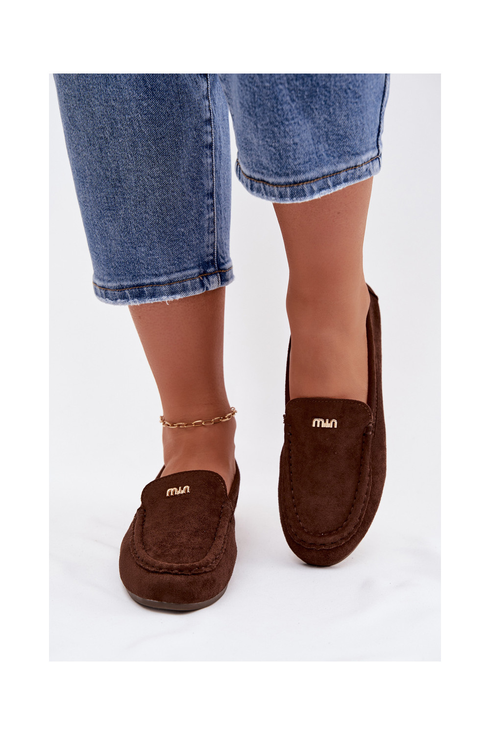moteriški mokasinaisuTai turižam aukso spalvosm Detalem CzekoladoĮe Sarivelle