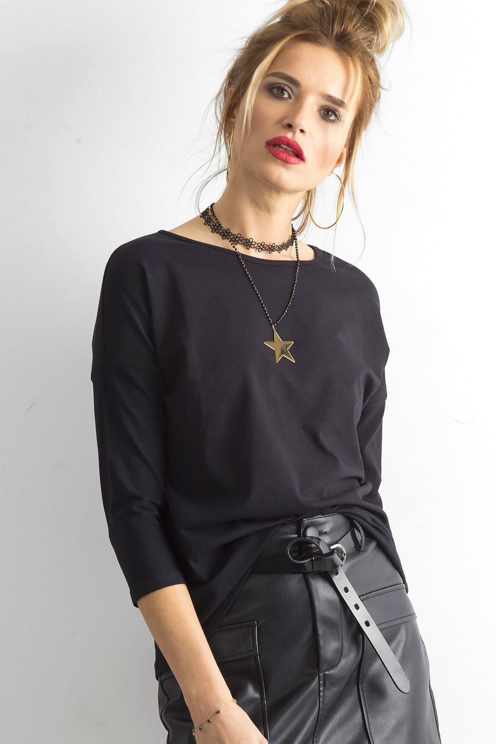Juoda balandžio mėnesio palaidinė . Lengvi drabužiai be raštų – puikus atspirties taškas kuriant daugelį kasdienių stilių. Žinoma, geidžiamiausi yra baltos ir juodos spalvos modeliai, kurie yra itin universalūs ir nesenstantys, nes yra susiję su klasika. Paprasta juoda medvilninė palaidinė yra tobulos išvaizdos receptas, nepaisant progos. Pristatomas modelis pasižymi moteriška iškirpte, laisvesniu kirpimu ir itin madingomis 3/4 rankovėmis, kurių dėka ant figūros atrodo itin prašmatniai ir yra itin patogus dėvėti. Jis puikiai dera su daugeliu kitų drabužių, todėl su juo galite sukurti įprastai laisvalaikio komplektus, taip pat šiek tiek moteriškesnius drabužius. Mūsų juoda moteriška palaidinė pagaminta iš patvarių ir tvirtų medžiagų, kurios yra orios ir malonios liesti. Dėvėkite su madingomis kelnėmis, šortais ir moteriškais sijonais.